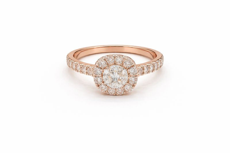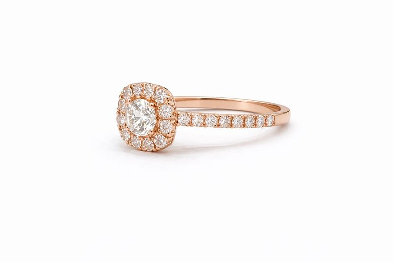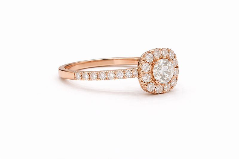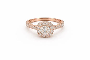 Lab-Grown Round Cut Diamond Cushion Halo Gold Ring