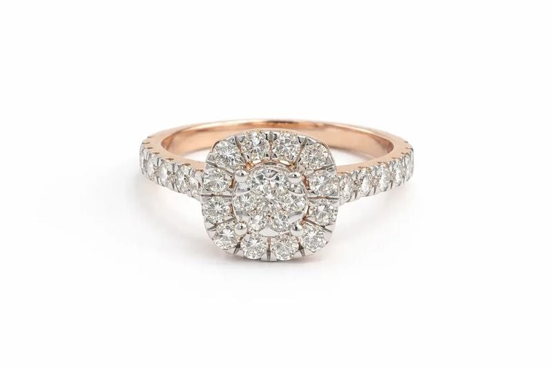 Lab-Grown Round Cut Diamond Halo Rose Gold Ring