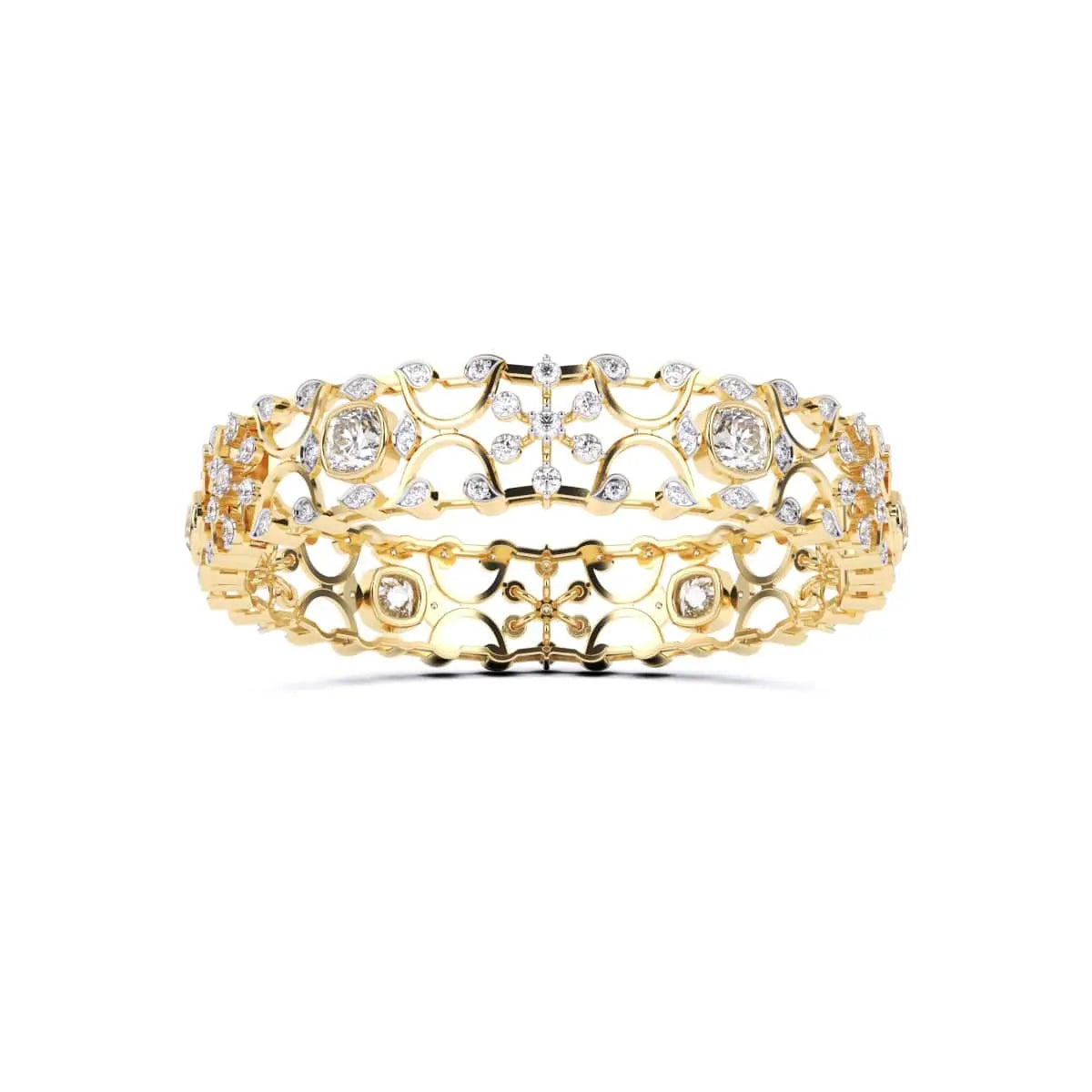 The Solitaire Cushion Diamond Bangle showcases the brilliance of lab grown diamonds in a sophisticated cushion-cut design. This elegant piece combines ethical craftsmanship with timeless style, offering a refined sparkle that enhances any ensemble with subtle luxury. Perfect for those who appreciate sustainable beauty and enduring elegance.