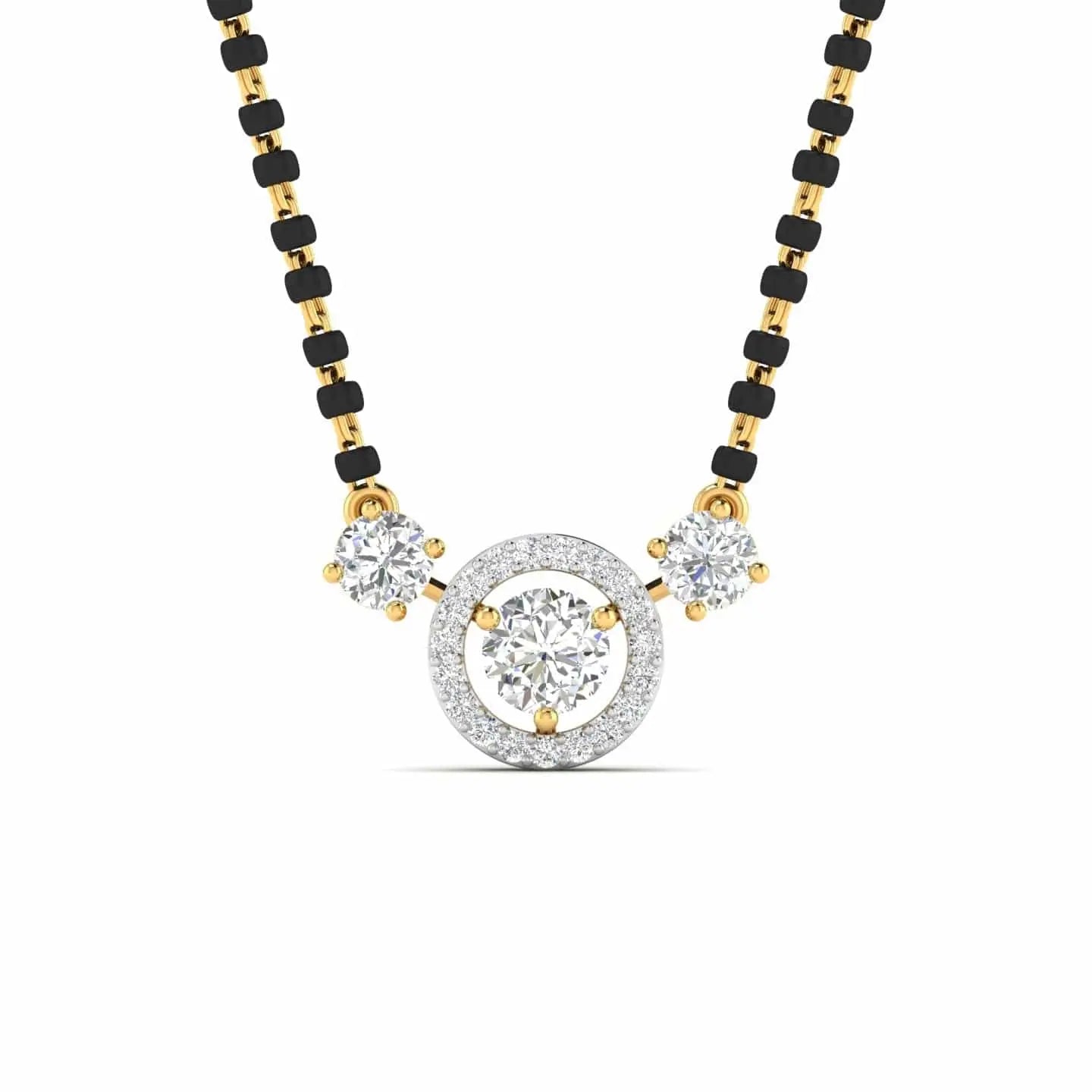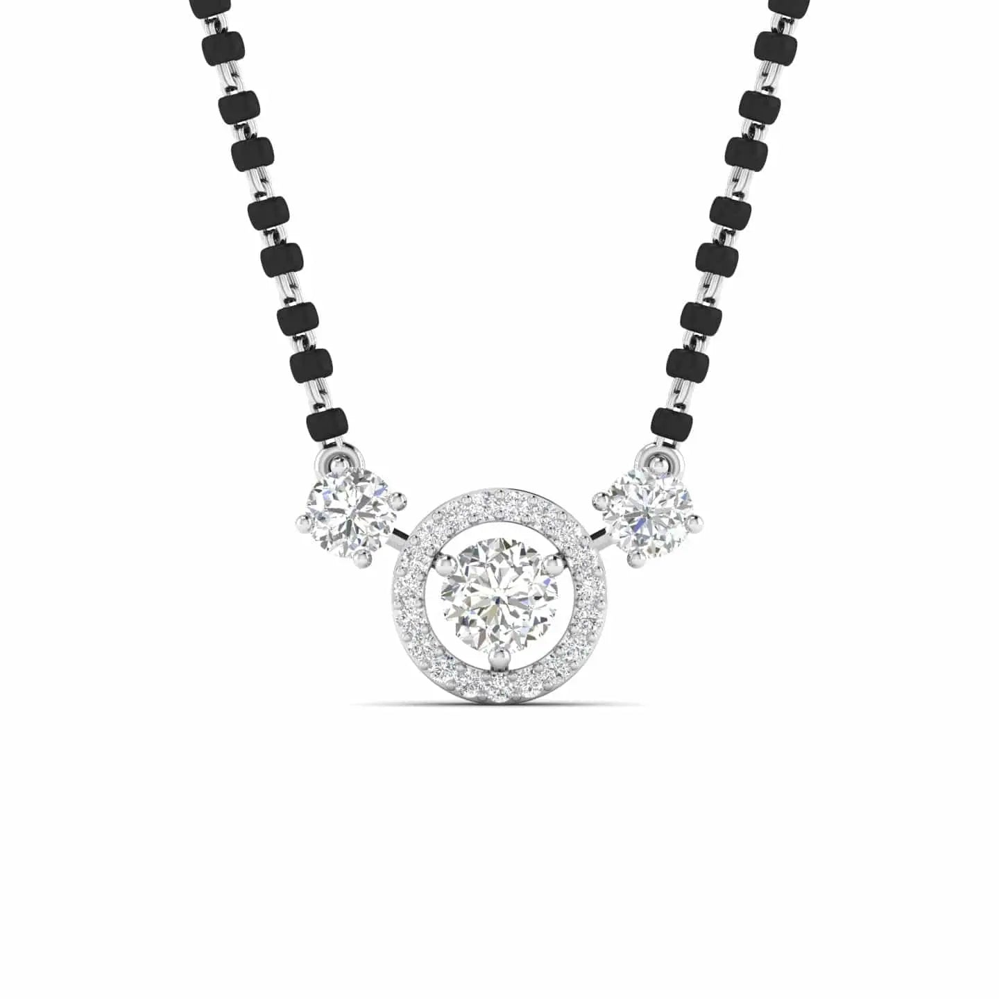 This elegant black bead mangalsutra features a triple pendant adorned with sparkling lab grown diamonds, blending tradition with modern sophistication. Designed to symbolize enduring love, it offers a refined and sustainable choice for those who appreciate timeless beauty and ethical craftsmanship. Perfect for enhancing your everyday look or special moments with subtle brilliance.