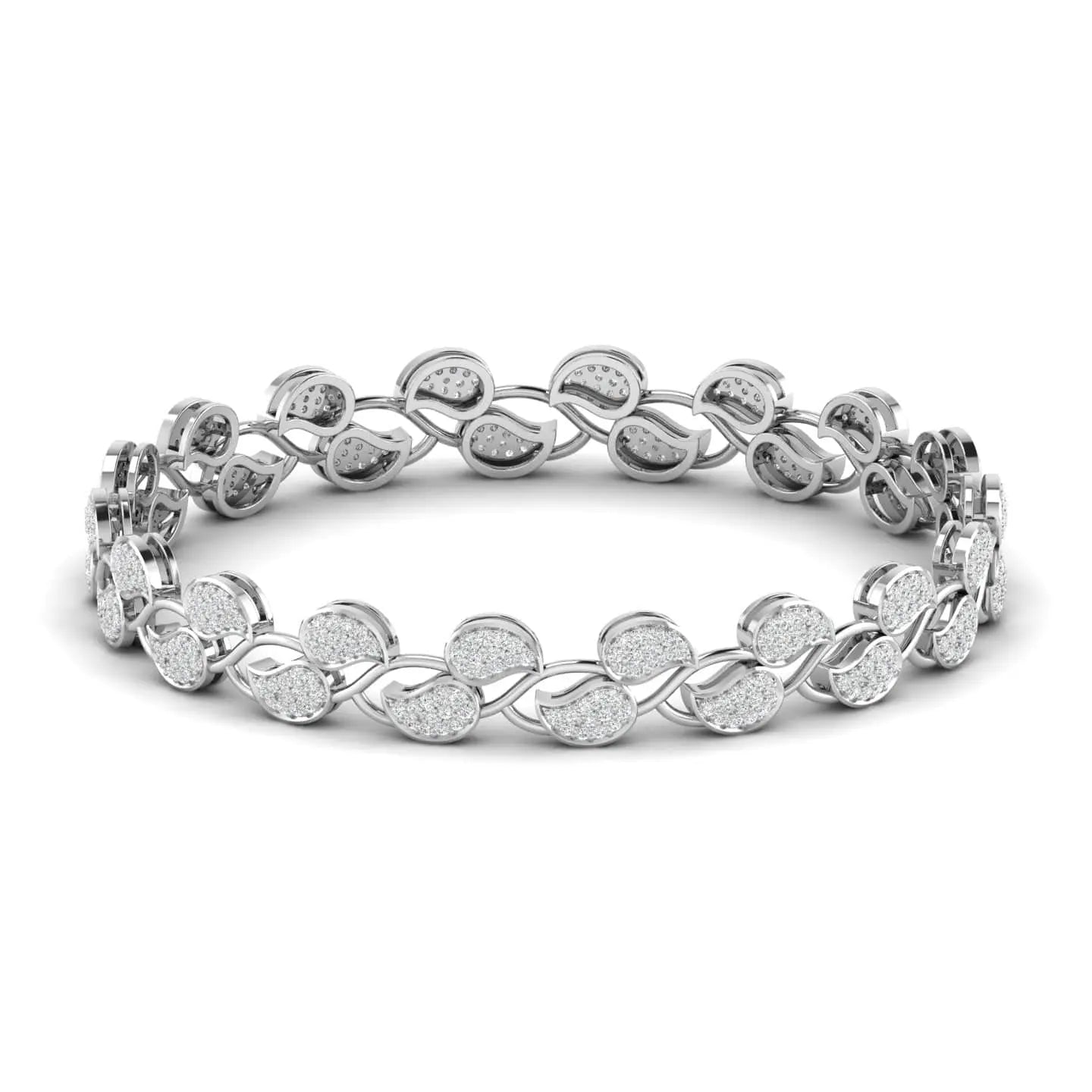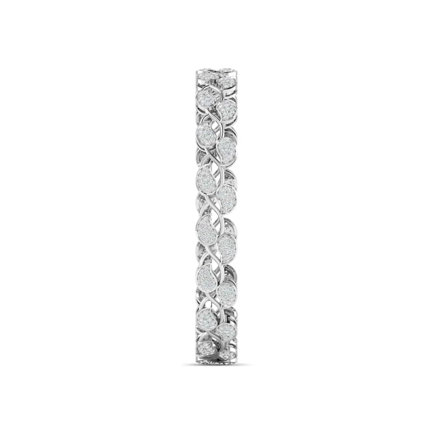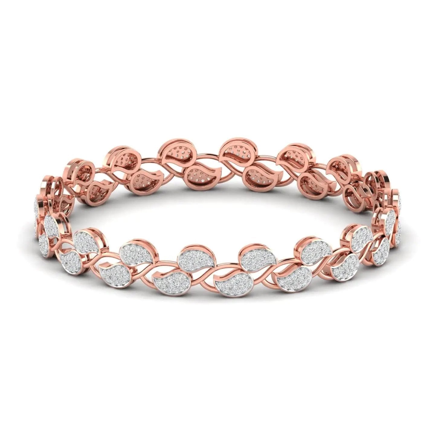 This Leaf Design Round Diamond Bangle showcases the brilliance of lab grown diamonds set in an elegant leaf-inspired pattern. Combining ethical craftsmanship with refined style, it offers a sophisticated accessory that enhances any ensemble with subtle sparkle and timeless charm. Perfect for those who appreciate beauty with a conscious touch.