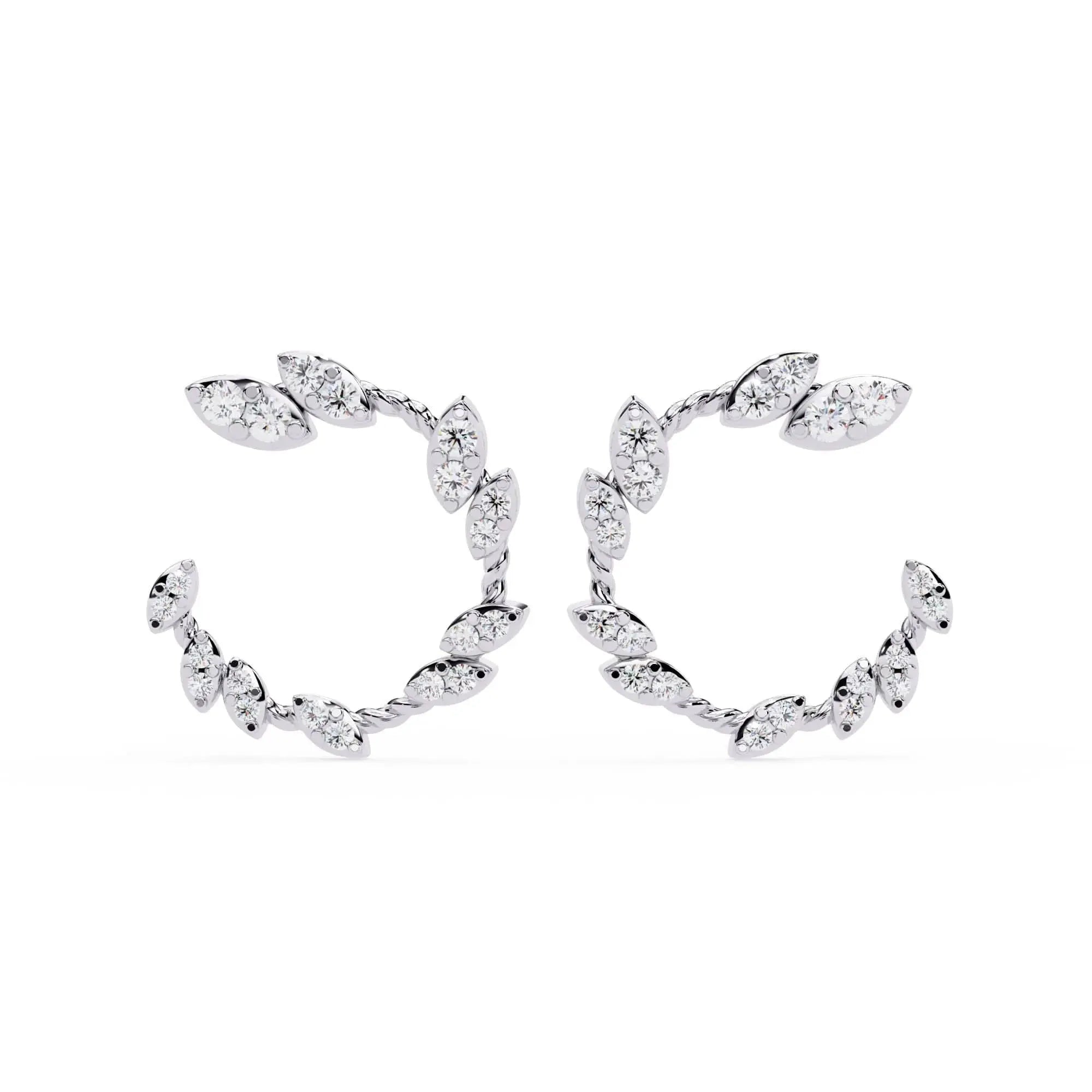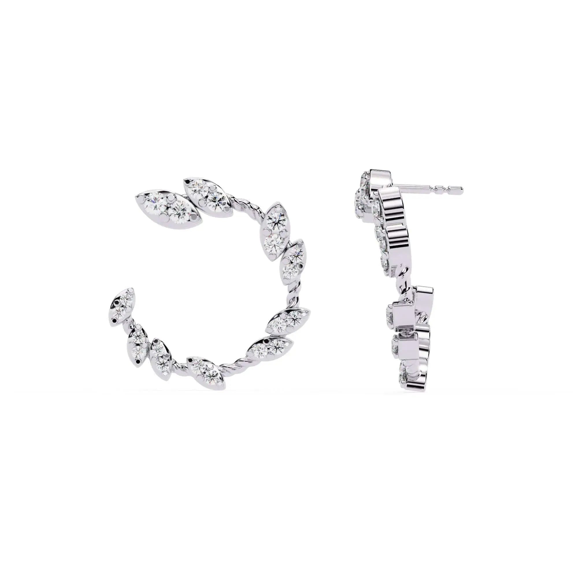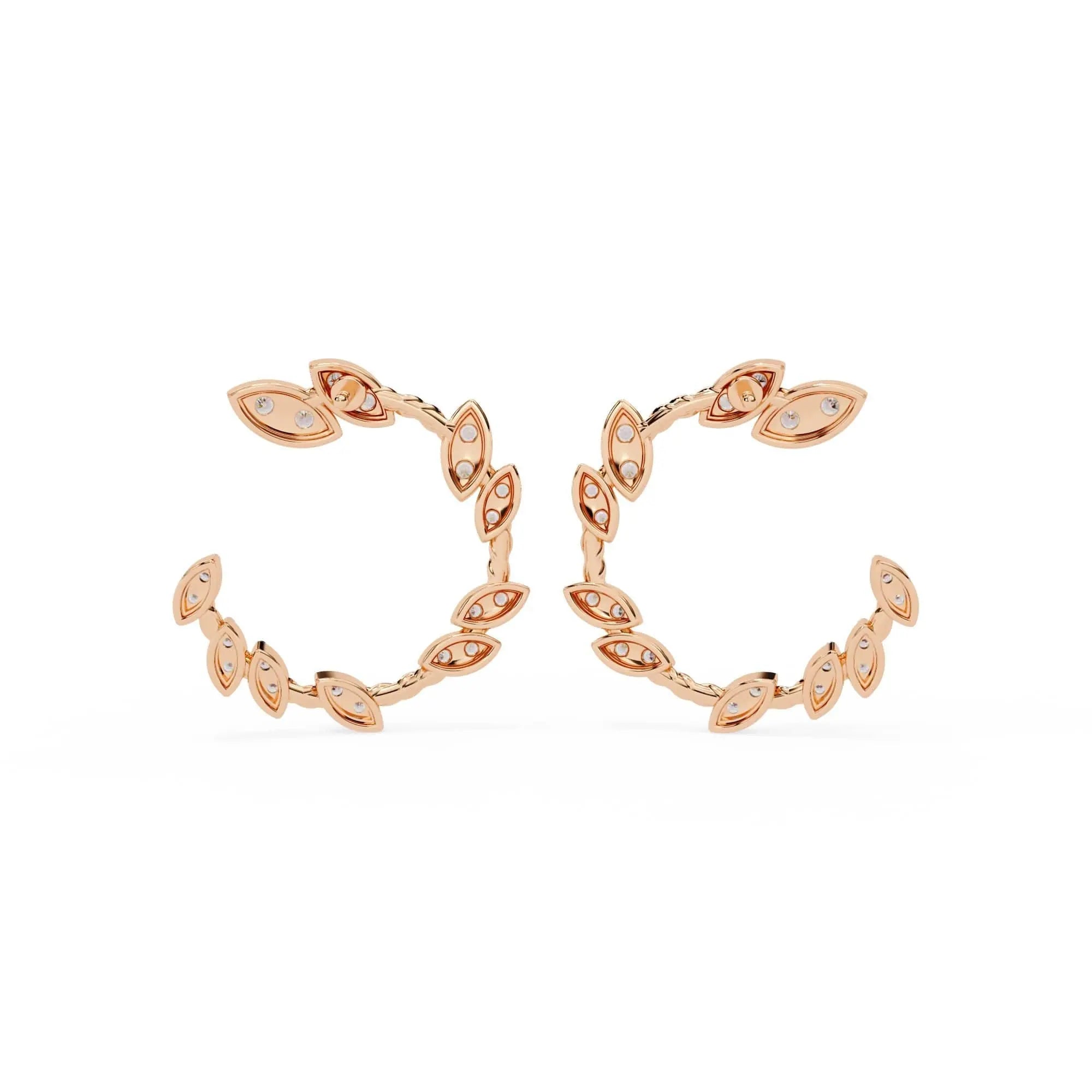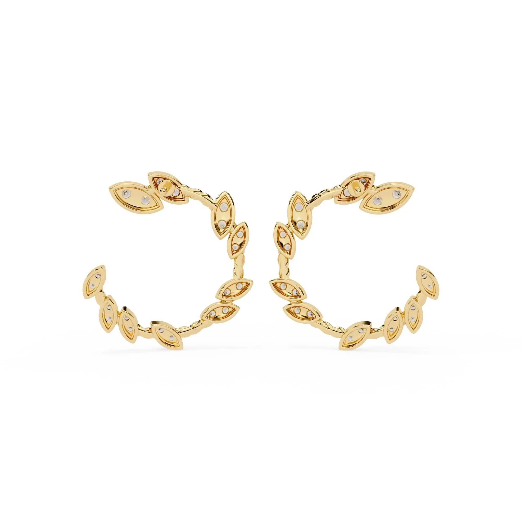 Elegant leaf lab grown diamond hoops earrings blend earthy charm with timeless style, perfect for adding a touch of nature-inspired beauty to any modern look.