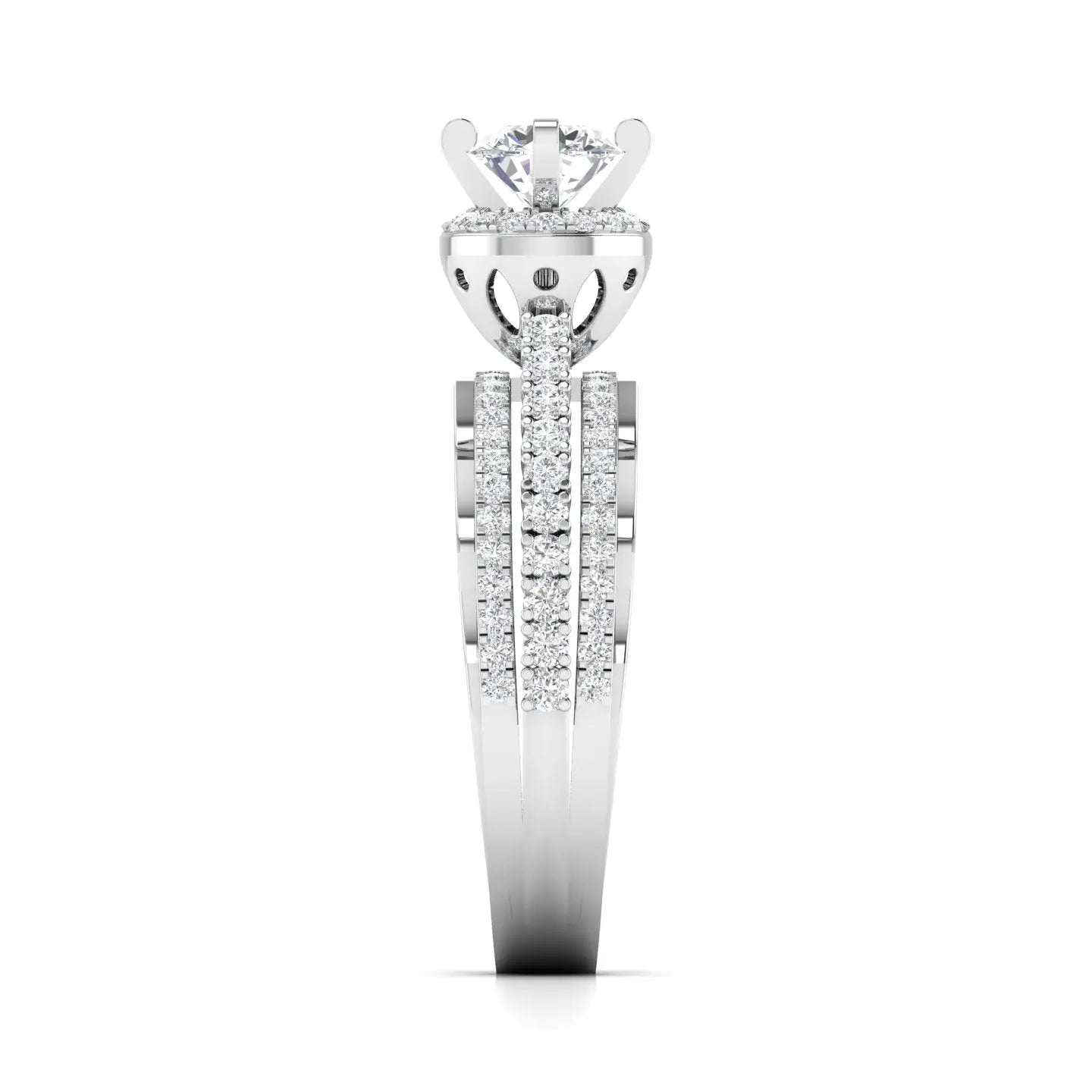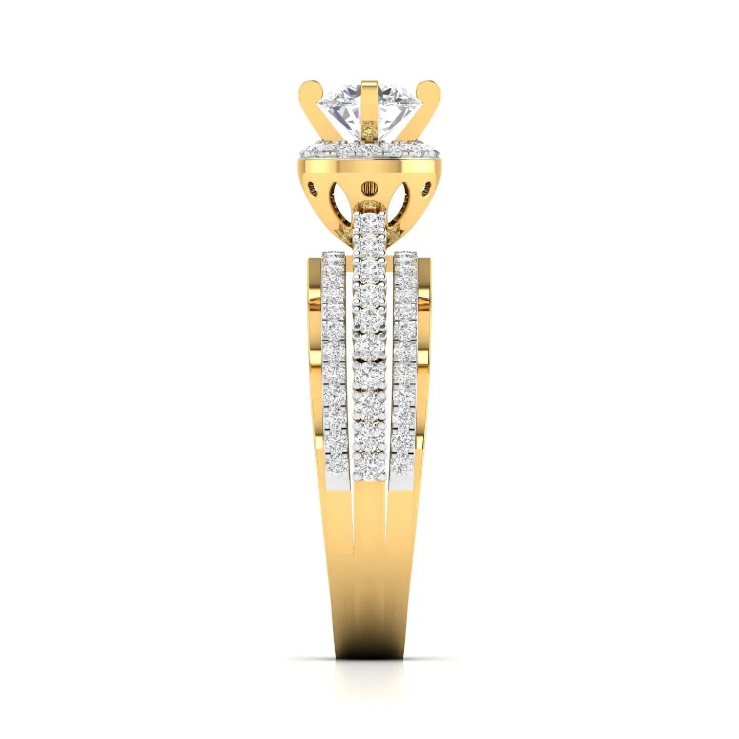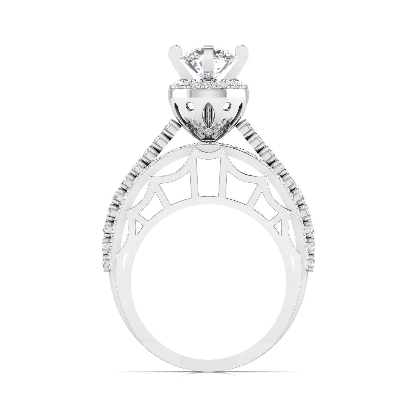 1.25 Carat Halo Diamond Engagement Ring features a masterfully crafted cluster setting that highlights a delicate floral motif. Set on a polished gold band with a split shank design, it blends the classic allure of a solitaire with the intricate brilliance of a halo setting. Expertly designed for both elegance and durability, this ring reflects refined craftsmanship ideal for marking a lifelong commitment.