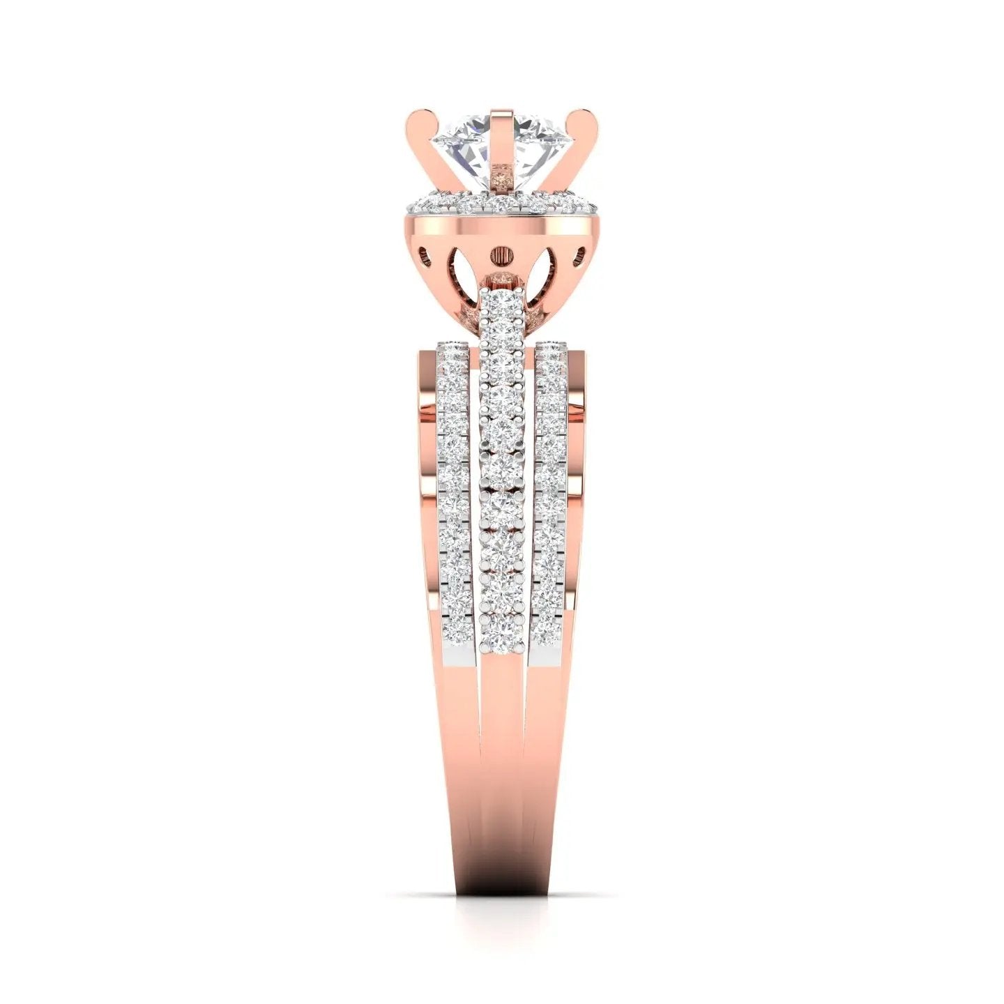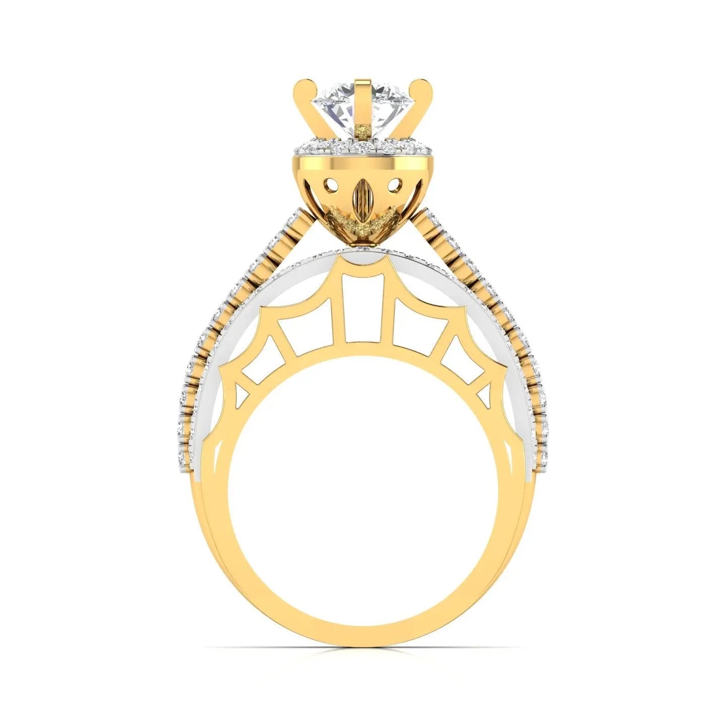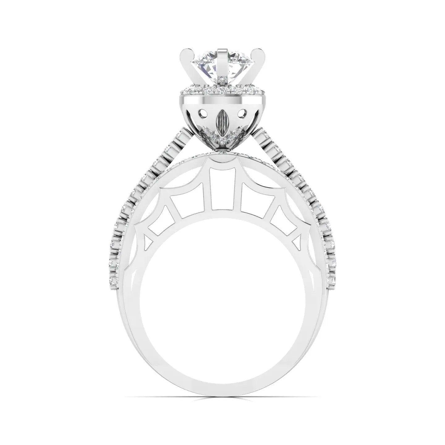1.25 Carat Halo Diamond Engagement Ring features a masterfully crafted cluster setting that highlights a delicate floral motif. Set on a polished gold band with a split shank design, it blends the classic allure of a solitaire with the intricate brilliance of a halo setting. Expertly designed for both elegance and durability, this ring reflects refined craftsmanship ideal for marking a lifelong commitment.