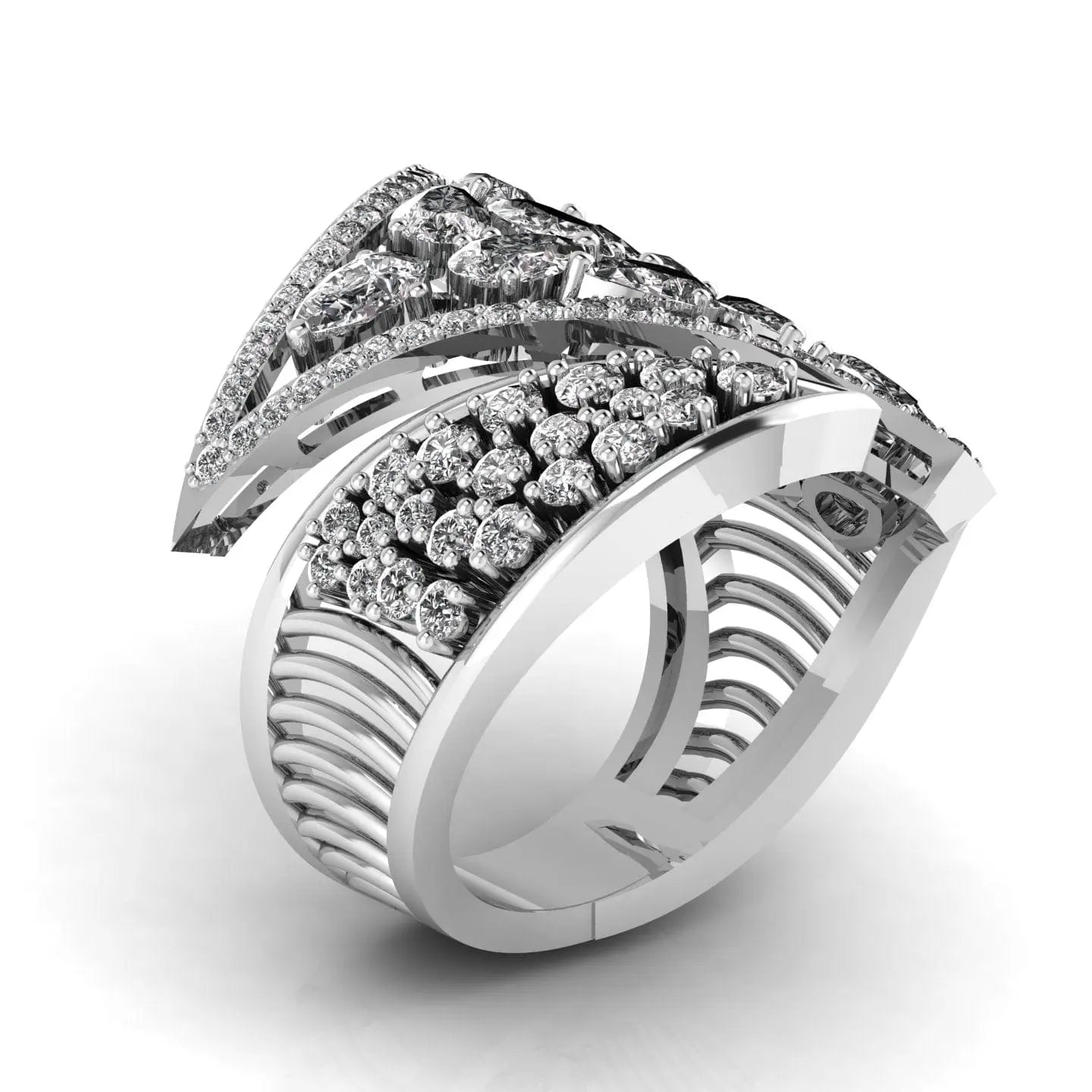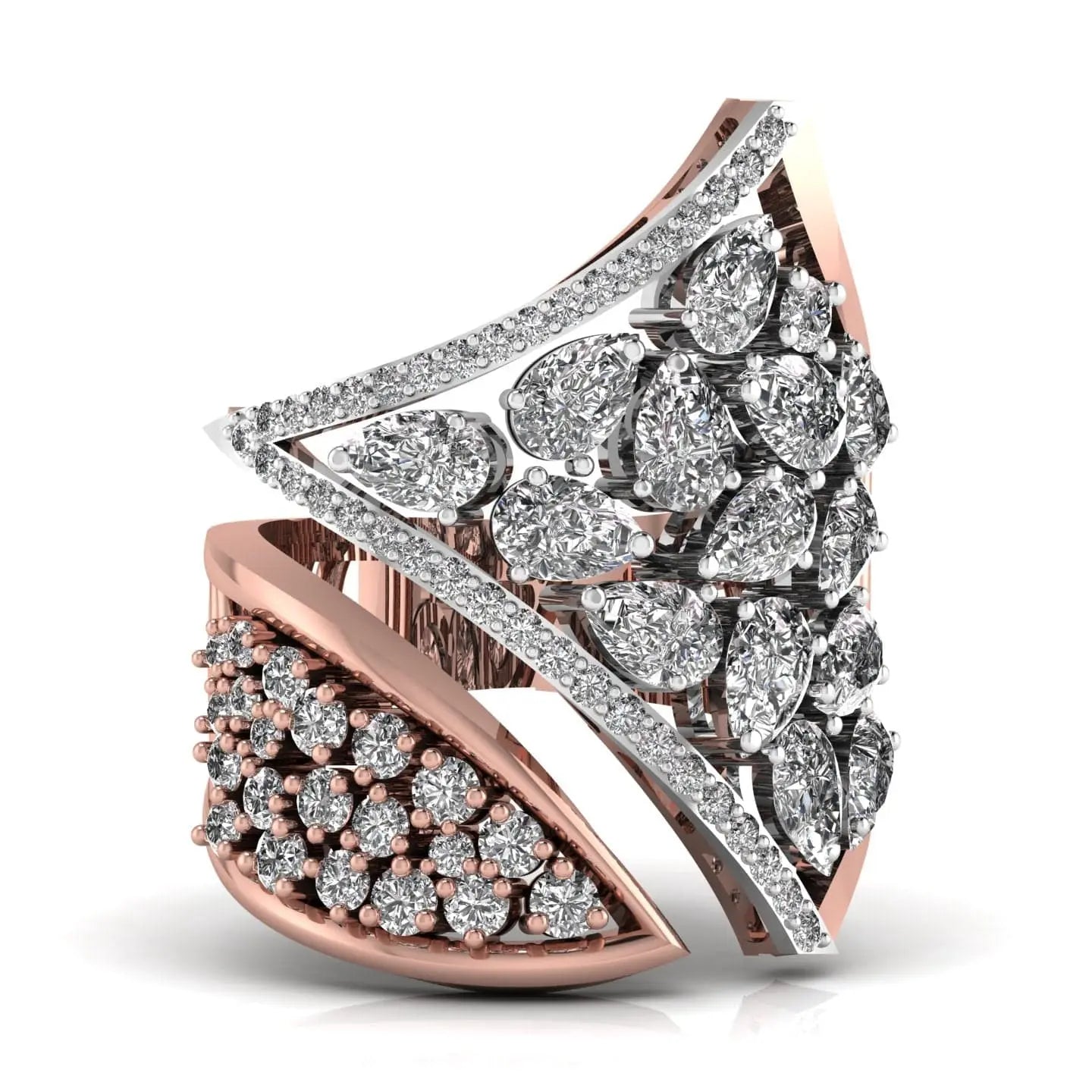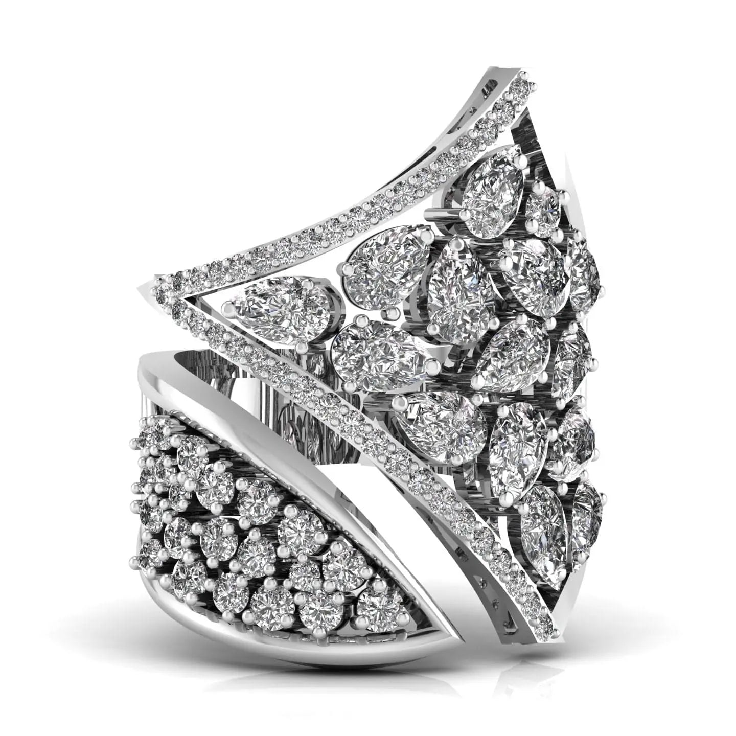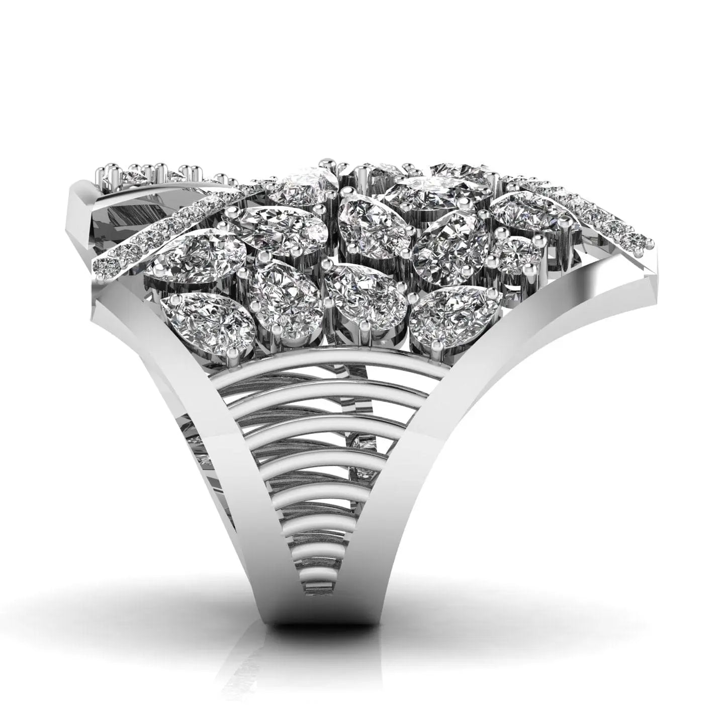 The Cascade Cocktail Diamond Ring showcases a brilliant lab grown diamond, offering a refined blend of elegance and sustainability. Its sophisticated design highlights the diamond’s radiant sparkle, making it an exquisite choice for those who appreciate timeless beauty with a modern, ethical touch. Perfect for special occasions or everyday luxury.