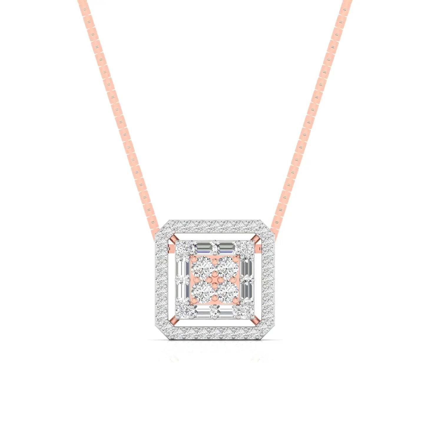 The Luxe Square Diamond Pendant showcases a brilliant lab grown diamond in a contemporary square design. Its clean lines and radiant sparkle offer a sophisticated statement piece that complements both casual and formal attire. Crafted with sustainability in mind, this pendant embodies modern elegance and conscious luxury.