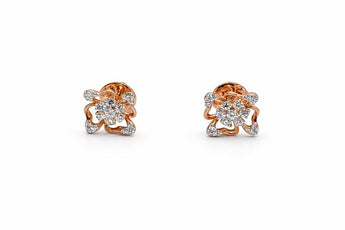 Luxury Floral Diamond Cluster Stud Earrings in 14K Gold