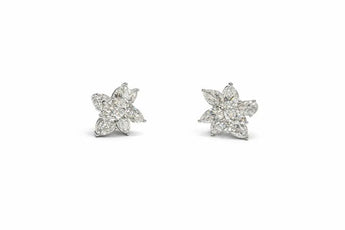Luxury White Gold Pear-Cut Diamond Cluster Floral Stud Earrings