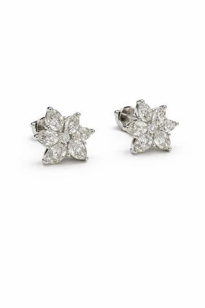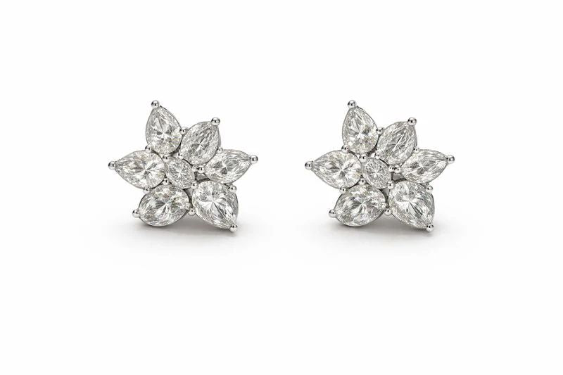 Luxury White Gold Pear-Cut Diamond Cluster Floral Stud Earrings