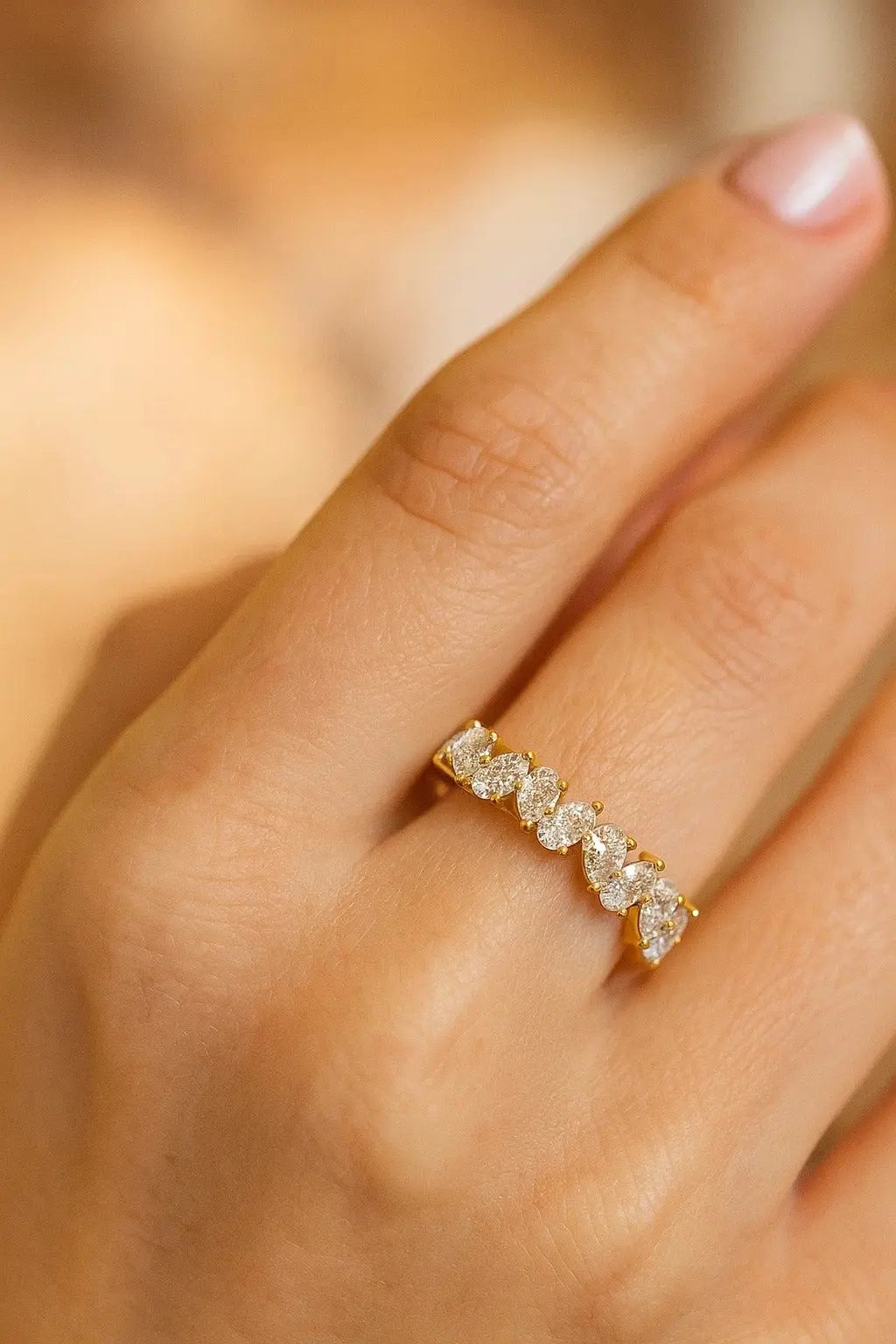 The Marquise Accent Wedding Ring showcases a stunning lab grown diamond centerpiece, expertly set to enhance its unique marquise shape. This elegant ring combines ethical sourcing with exquisite design, offering lasting brilliance and sophistication—an ideal symbol of timeless commitment.