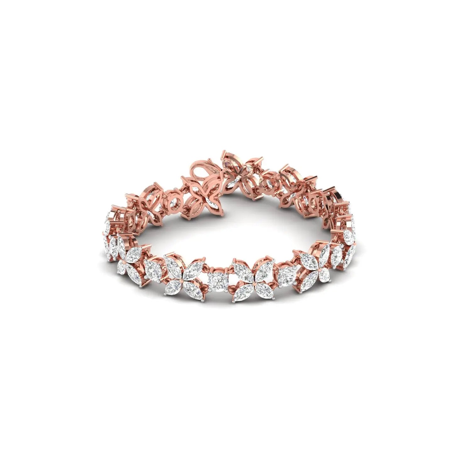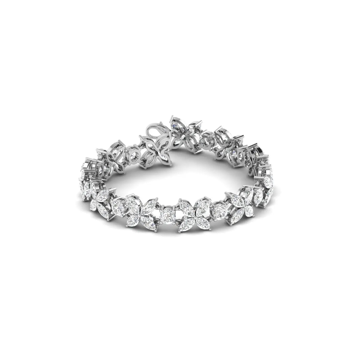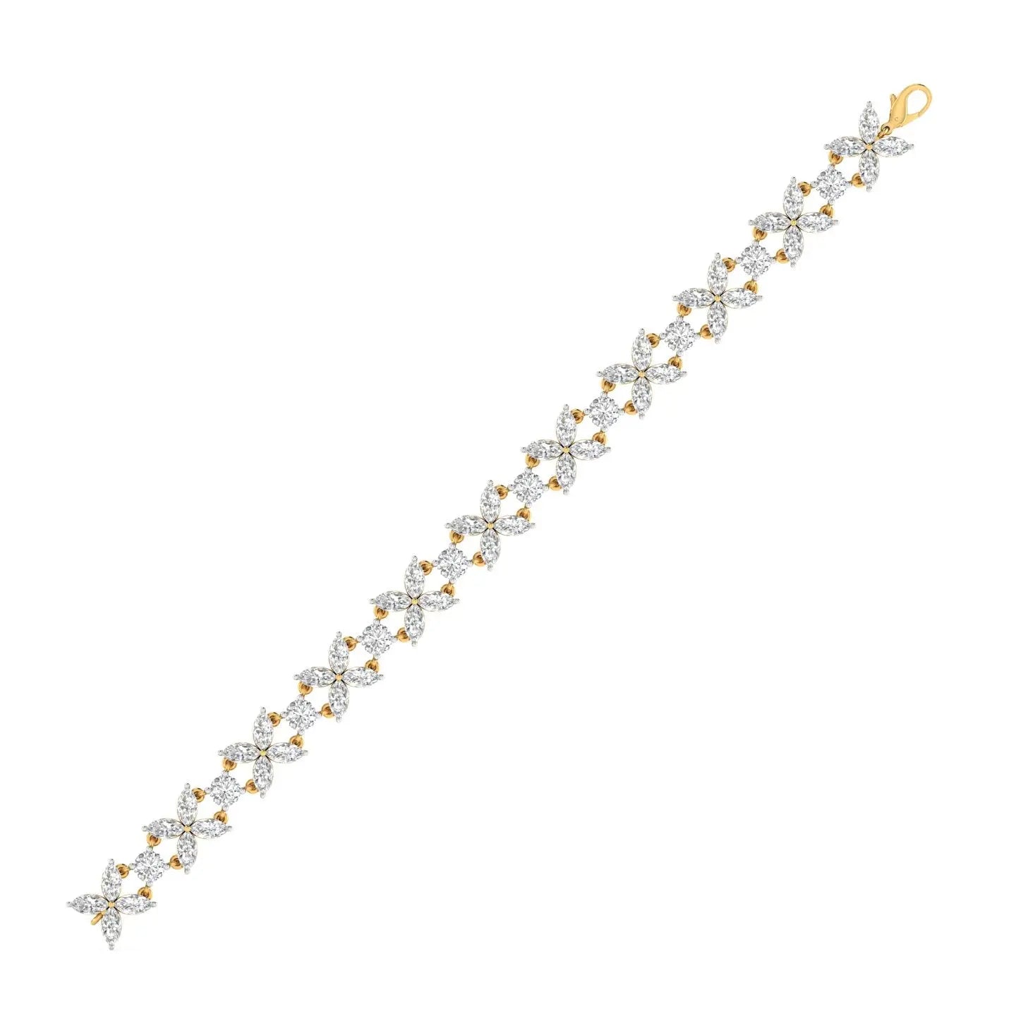 Elevate your wrist with the timeless elegance of our Marquise Cluster Diamond Bracelet. This sophisticated piece features exquisitely arranged marquise-cut diamonds that catch light from every angle, creating a mesmerizing sparkle. The clustered design offers a luxurious aesthetic while maintaining refined grace, making it perfect for both special occasions and elevated everyday wear. Crafted with precision and attention to detail, this bracelet is a statement of understated opulence that complements any wardrobe.