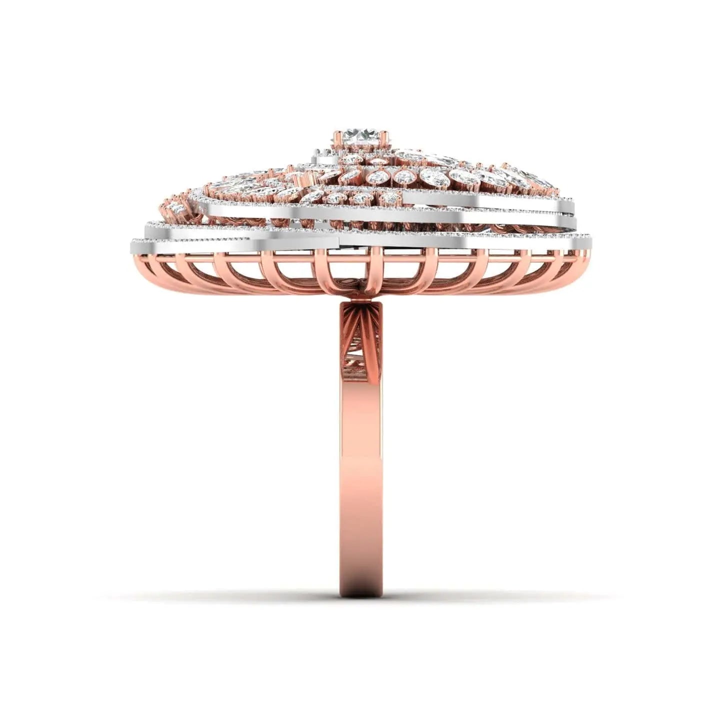 The Swirl Cocktail Lab Grown Diamond Ring features an exquisite lab grown diamond set in a graceful swirling design. This lab grown diamond cocktail ring adds a touch of sustainable elegance and brilliant sparkle, making it the perfect choice for sophisticated style statements at any event.