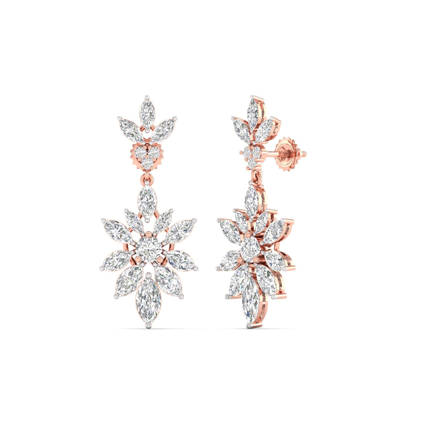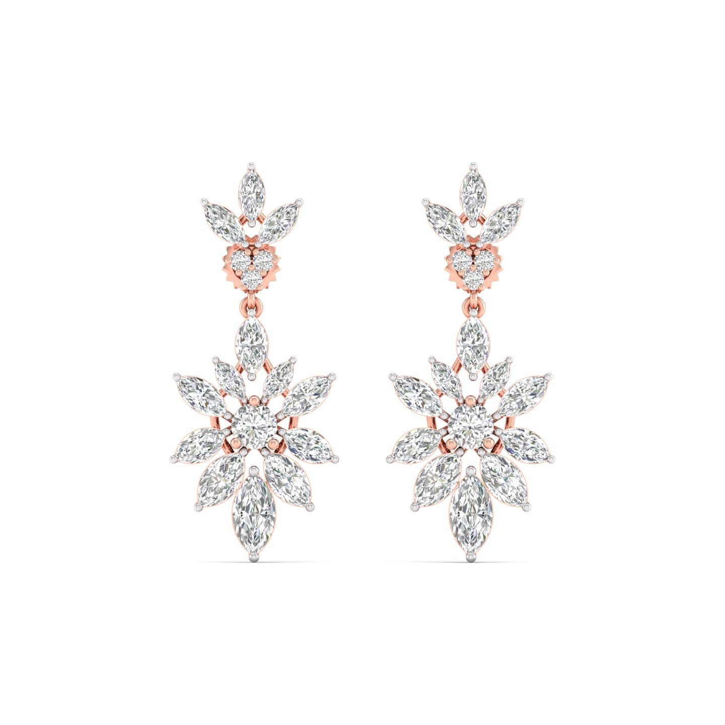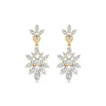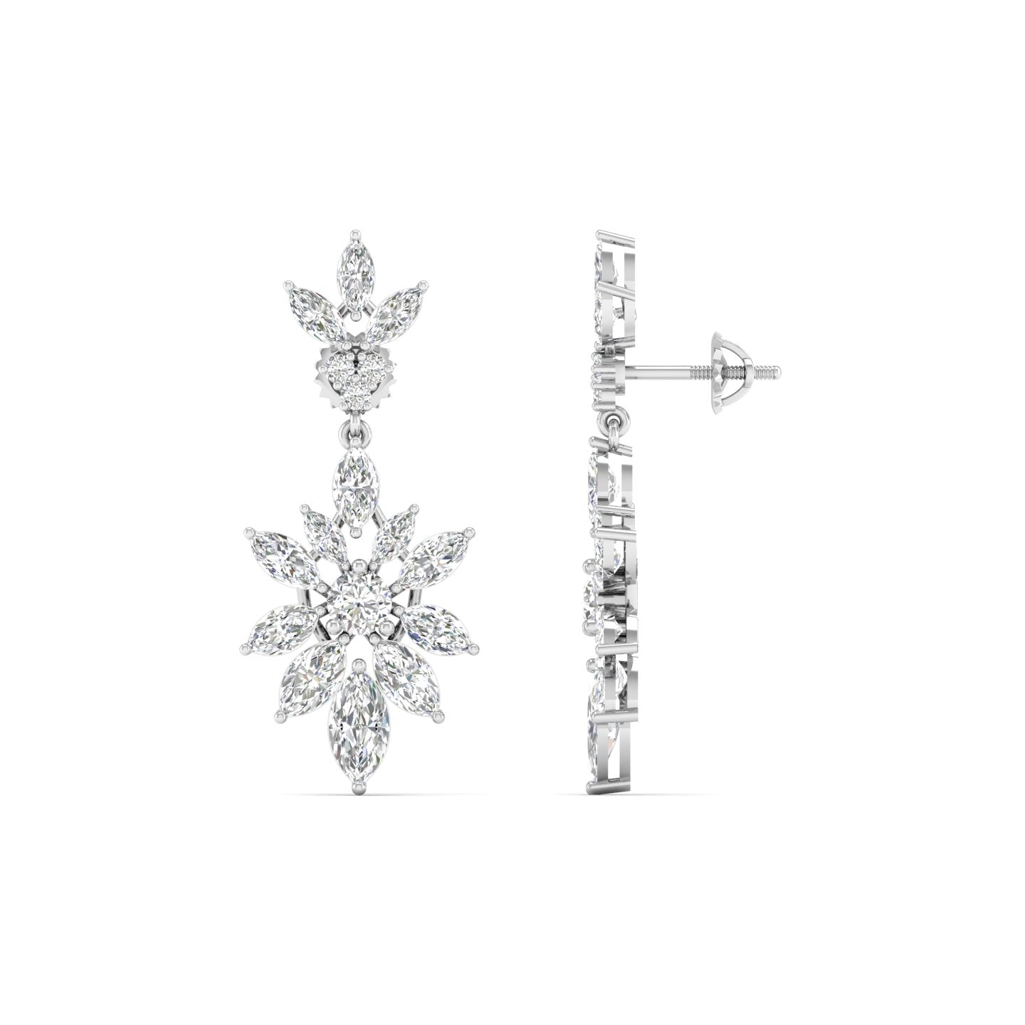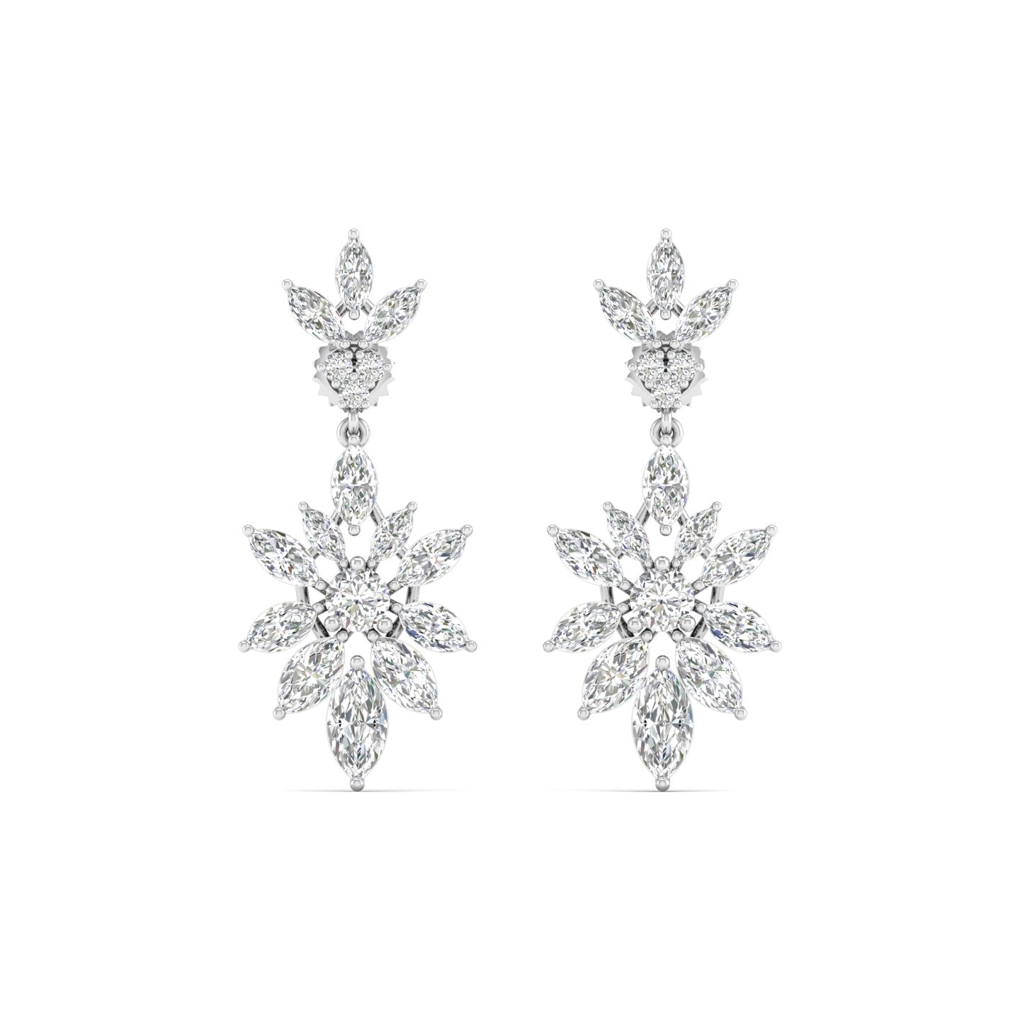 Celebrate timeless elegance with these stunning Marquise Diamond Cluster Floral Drop Earrings. Featuring a graceful floral design adorned with marquise-cut diamonds arranged in a captivating cluster, these earrings radiate sophistication and charm. The marquise diamonds catch light beautifully, creating a mesmerizing sparkle that complements both everyday wear and special occasions. Perfect for those who appreciate refined craftsmanship and classic beauty, these drop earrings add a touch of luxury to any ensemble.