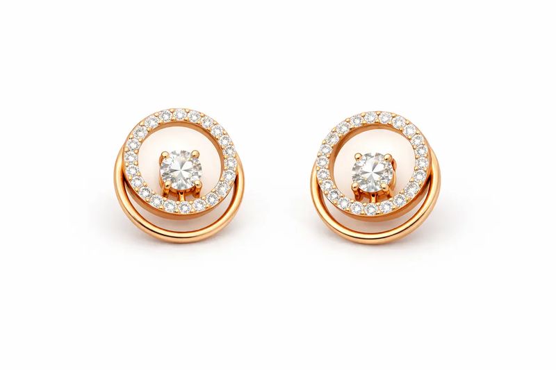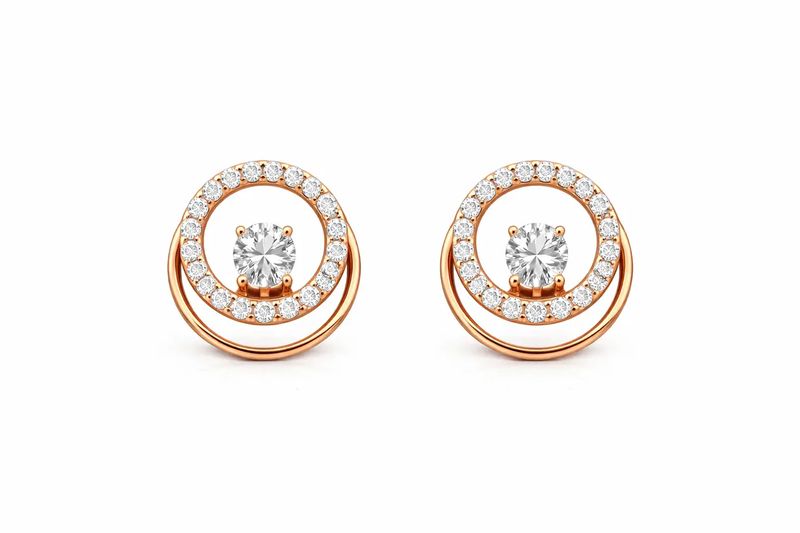 Minimalist 14KT Rose Gold Dual-Circle Diamond Pendant & Earring Set