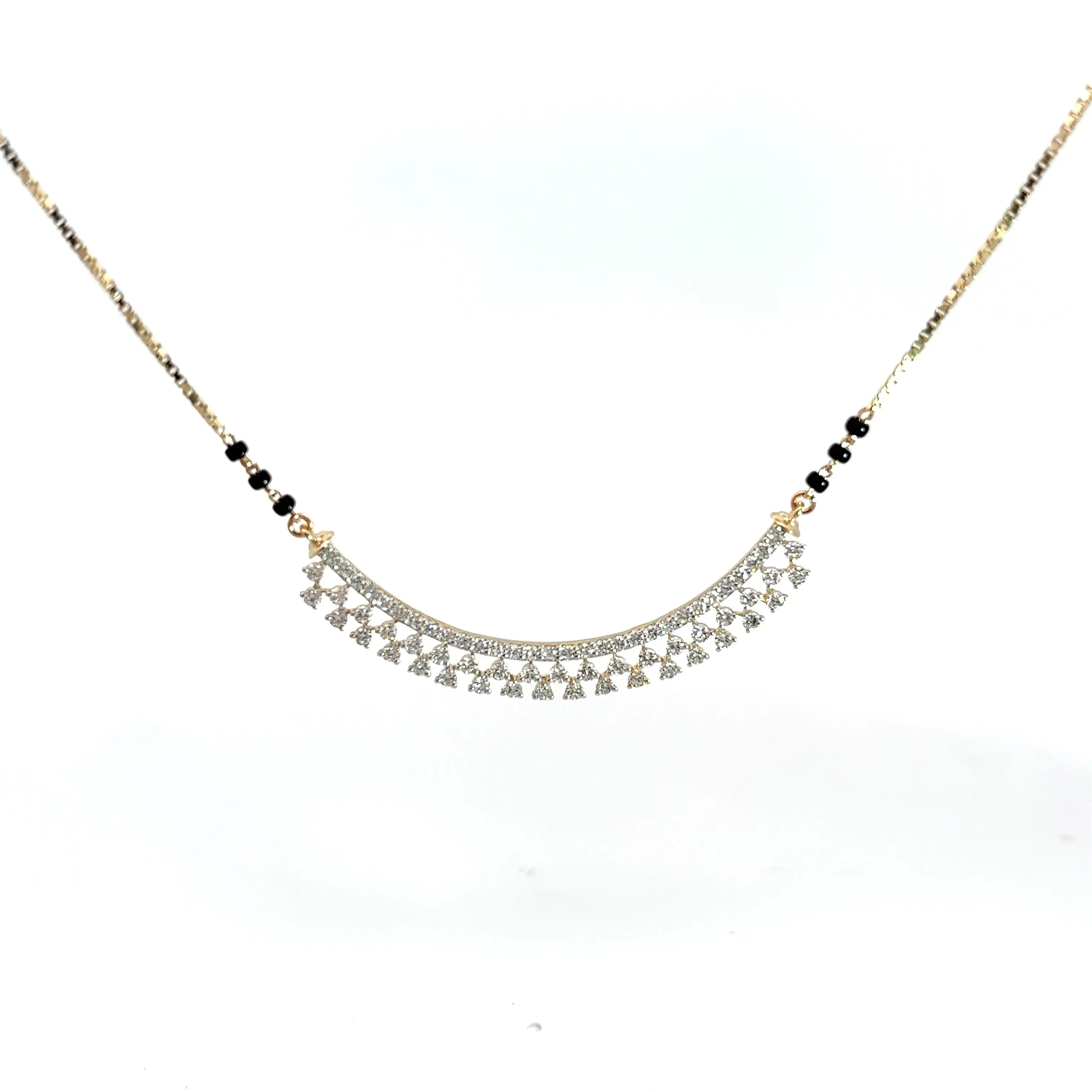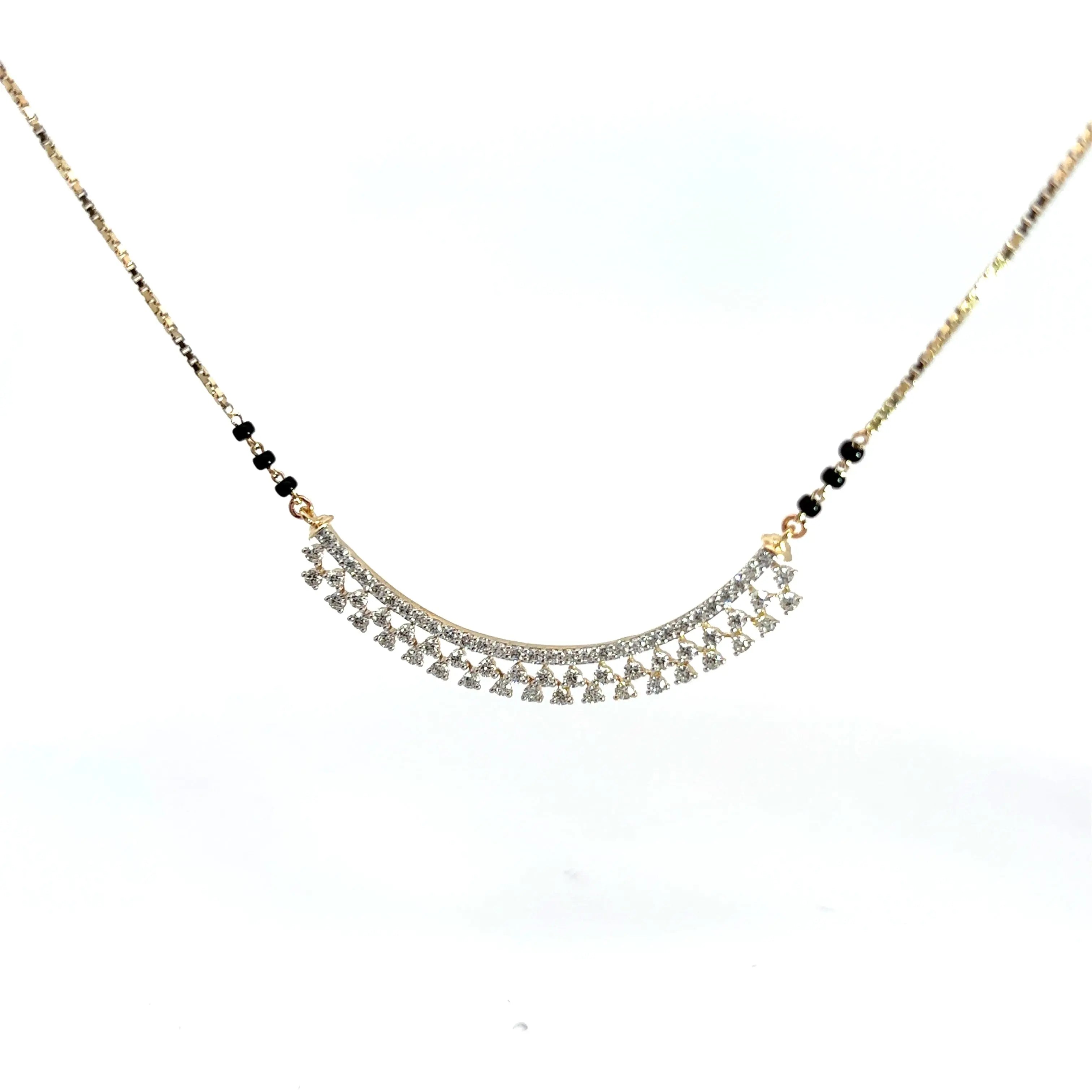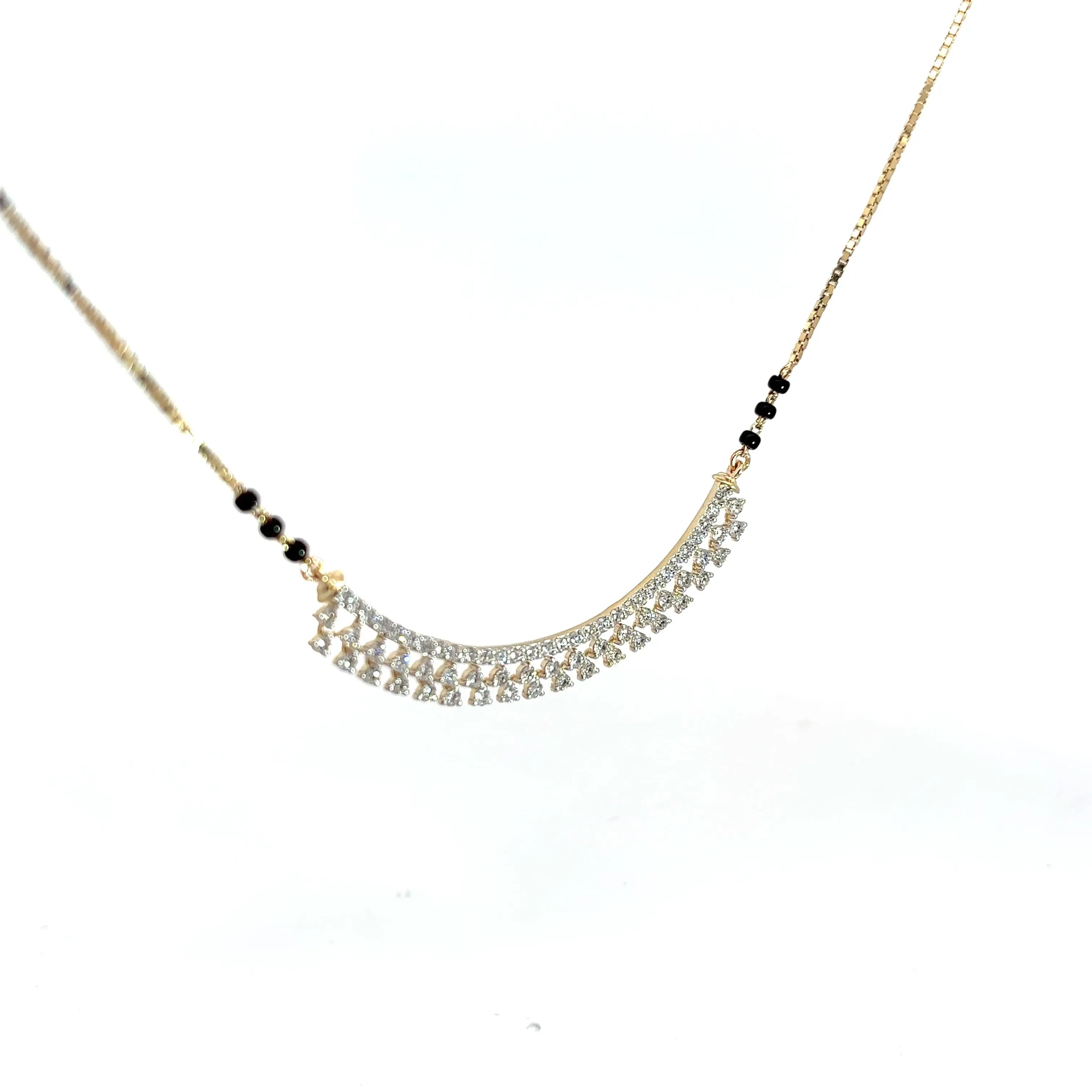 This Round Cut Diamonds Minimalist Stylish Mangalsutra features exquisite lab grown diamonds, combining ethical craftsmanship with elegant design. Its refined simplicity enhances any outfit, offering a modern take on a cherished tradition. Perfect for those who appreciate sustainable luxury and timeless sophistication.