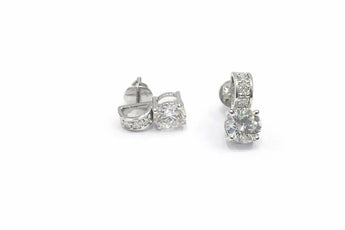 Minimalist White Gold Round Solitaire Diamond Studs with Pave Accents