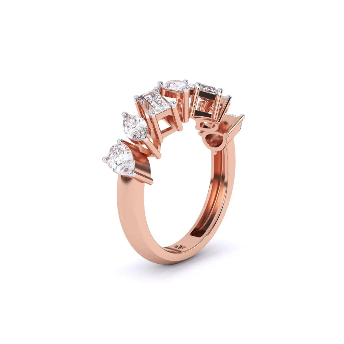 This Mixed Fancy Diamonds Ring for her showcases the brilliance of lab grown diamonds, combining various cuts to create a refined and elegant design. Ethically crafted, it offers a sophisticated sparkle that enhances any ensemble, making it an ideal choice for those who appreciate timeless beauty with a modern conscience.