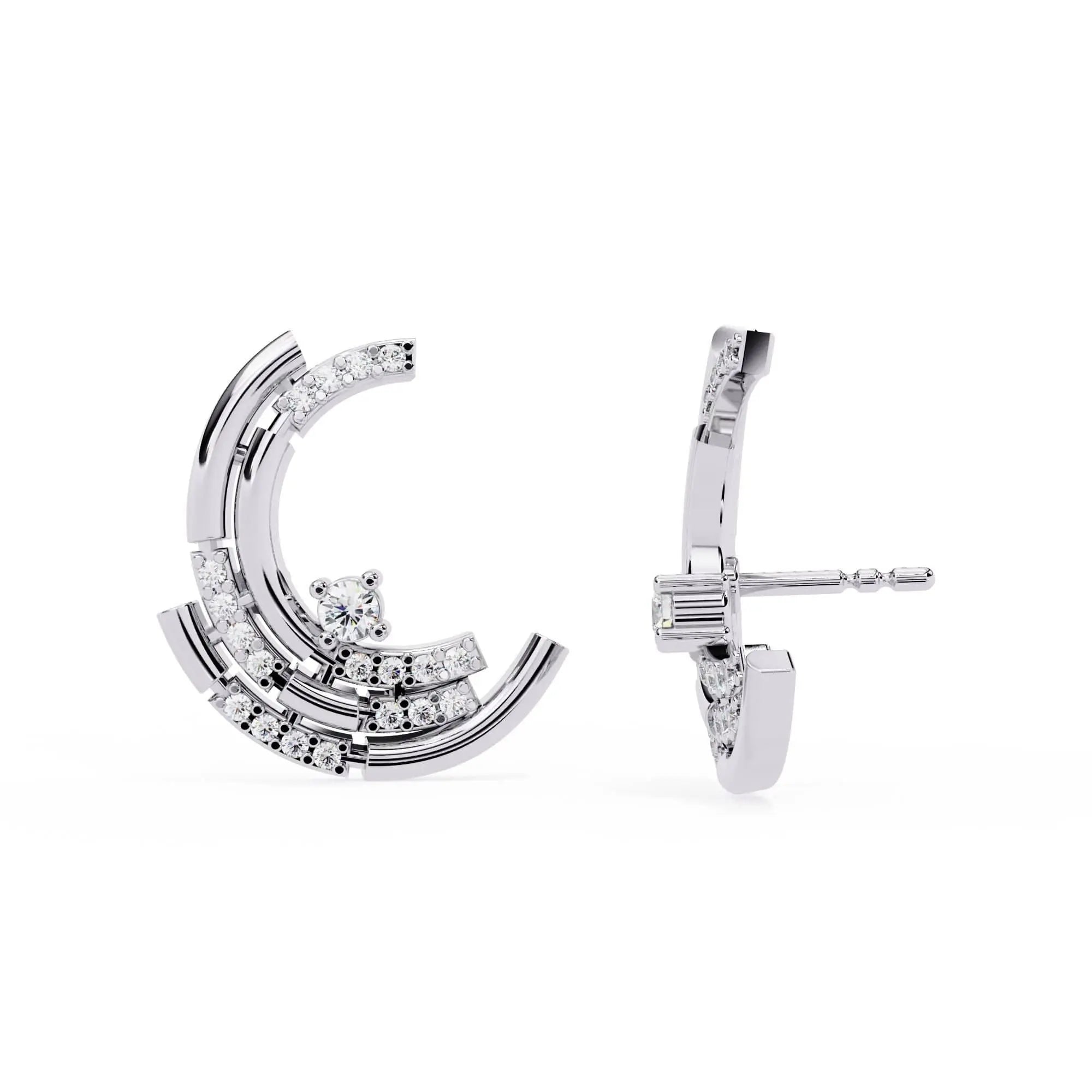 These modern hoop lab grown diamond earrings feature exquisite stones in a sleek, contemporary design. Combining sustainable craftsmanship with timeless elegance, they add subtle sparkle to everyday looks and special occasions, showcasing ethical luxury with unmatched brilliance.