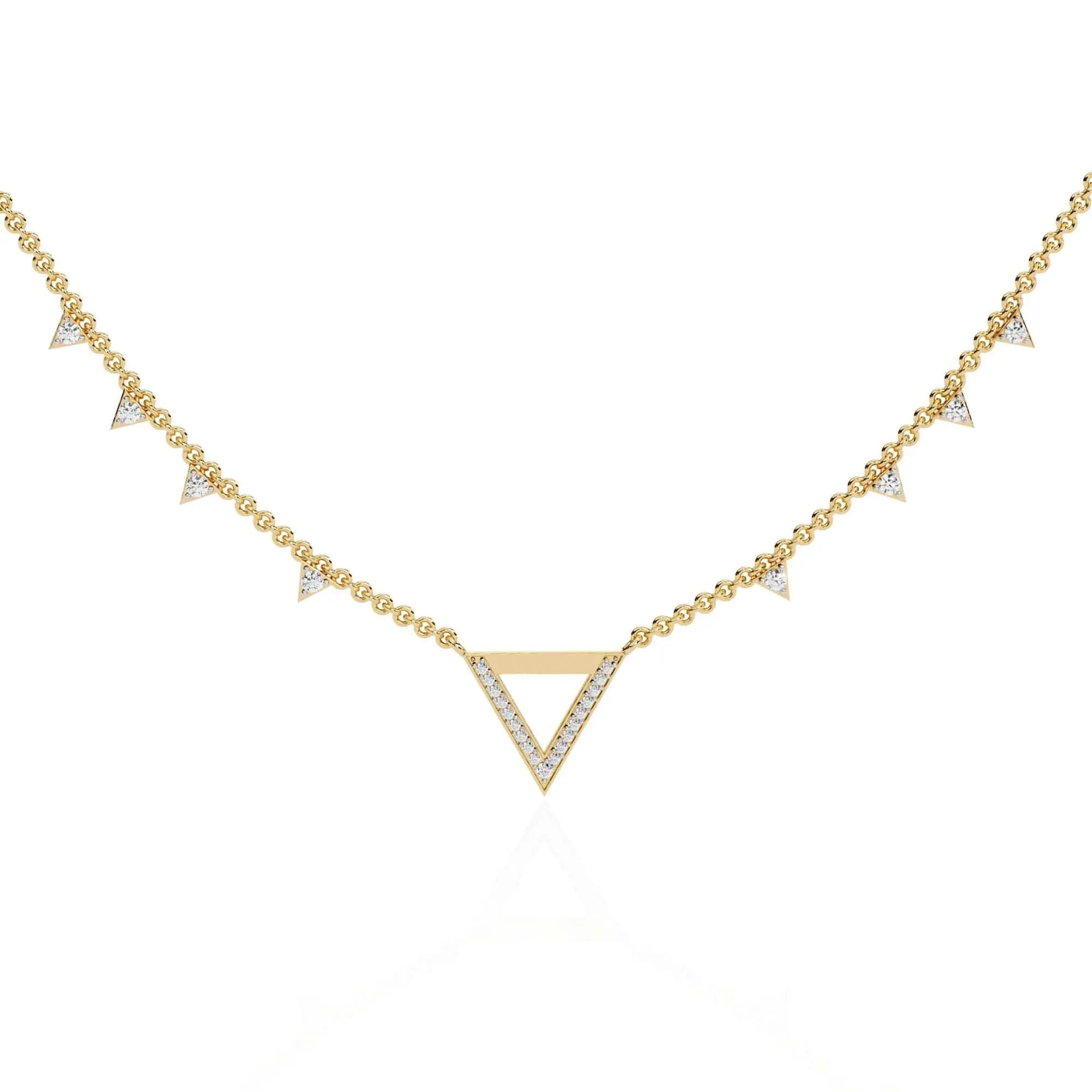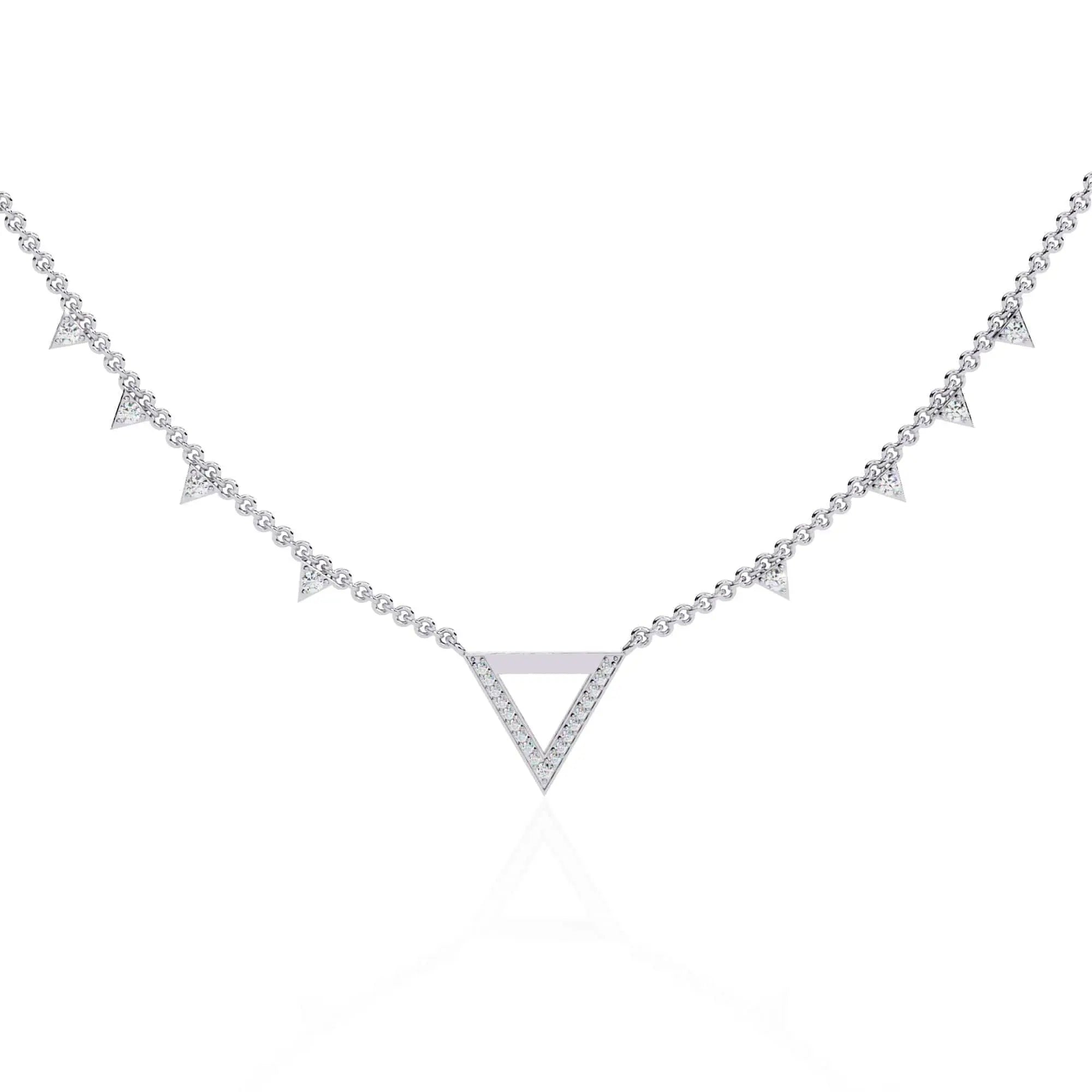 This Modern Triangle Diamond Necklace showcases a beautifully crafted lab grown diamond set in a sleek, geometric design. Combining ethical craftsmanship with contemporary elegance, it offers a sophisticated accessory that enhances any ensemble with subtle brilliance and modern charm.