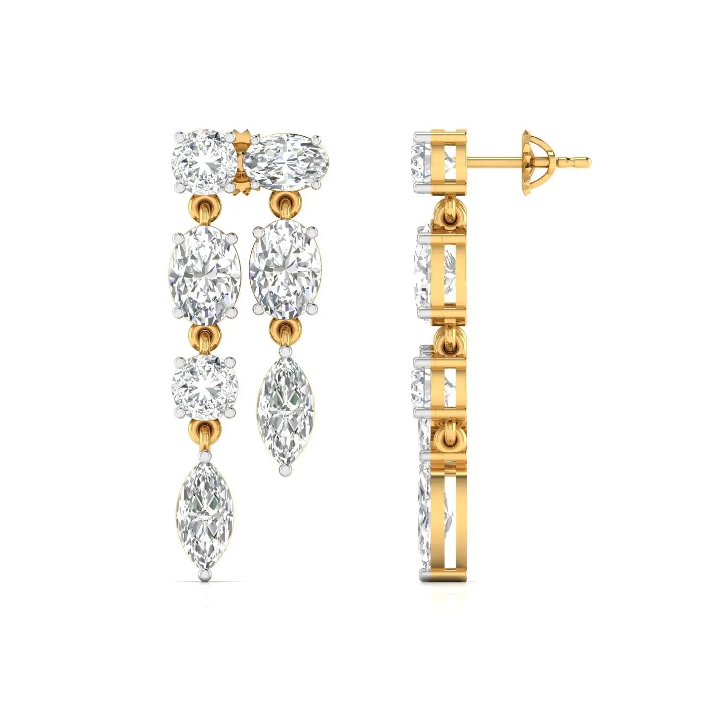 Elevate your elegance with these Multi-Shape Diamond Drop Earrings. Featuring a refined arrangement of diamonds in varied shapes, they offer a sophisticated sparkle for both everyday wear and special occasions. Their delicate dangler design adds graceful movement, making them a timeless addition to any jewelry collection.