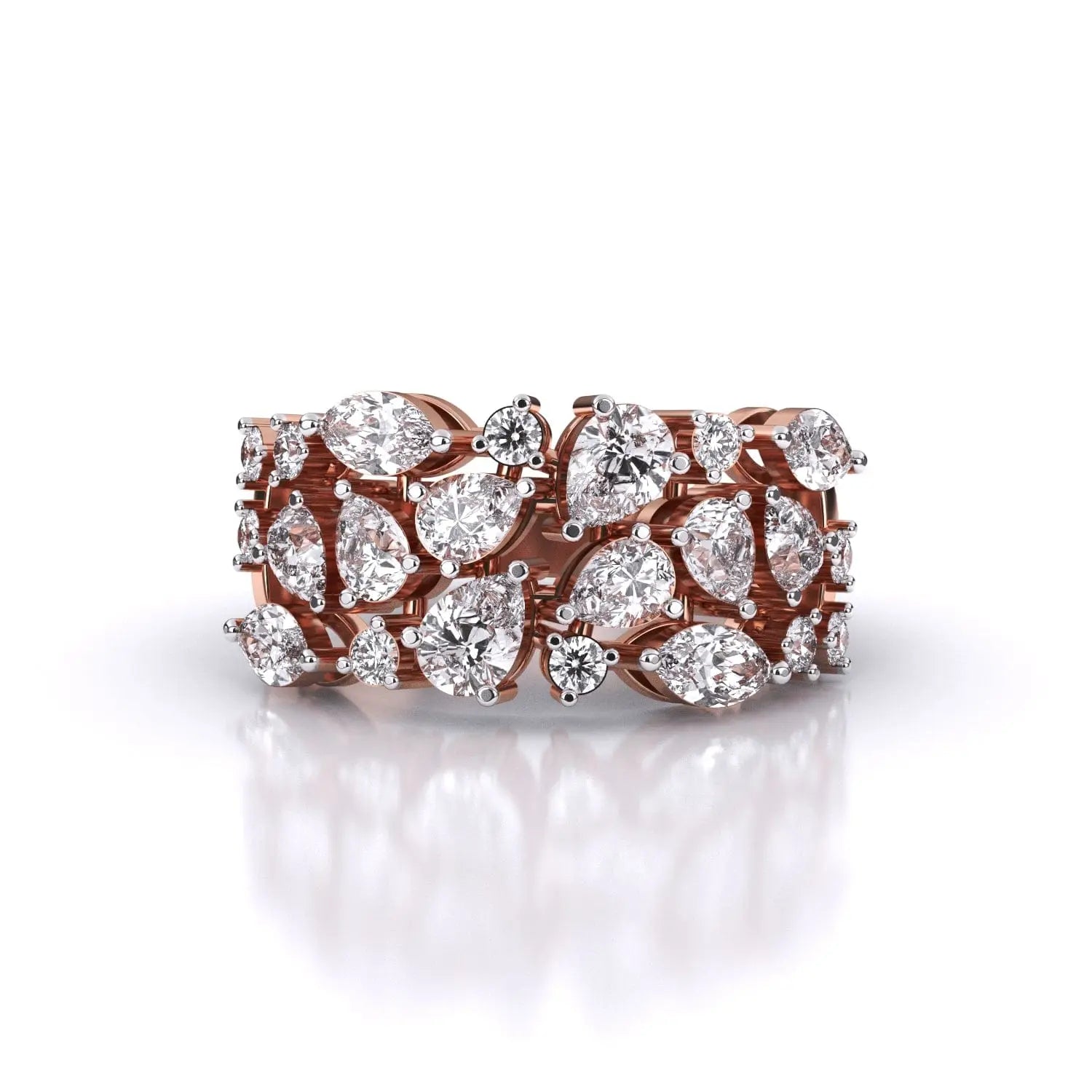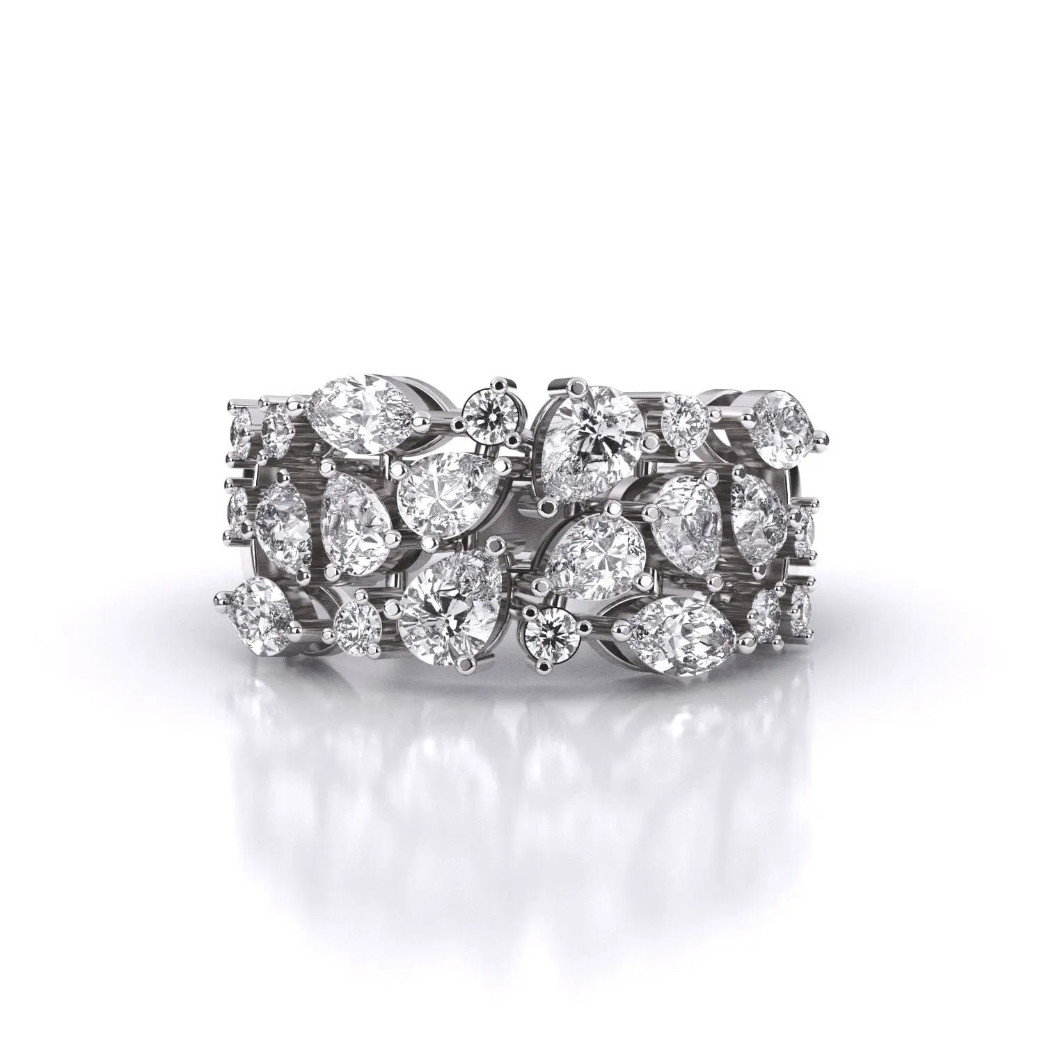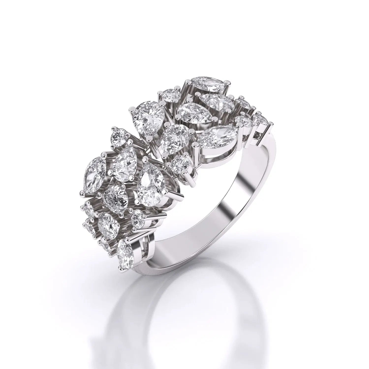 The Lab Grown Diamond Cascade Ring features a refined mix of diamond cuts, beautifully arranged to form a flowing cascade of brilliance. This elegant lab grown diamond cascade ring combines ethical luxury with timeless sparkle, making it a perfect choice for those who appreciate sustainable sophistication.