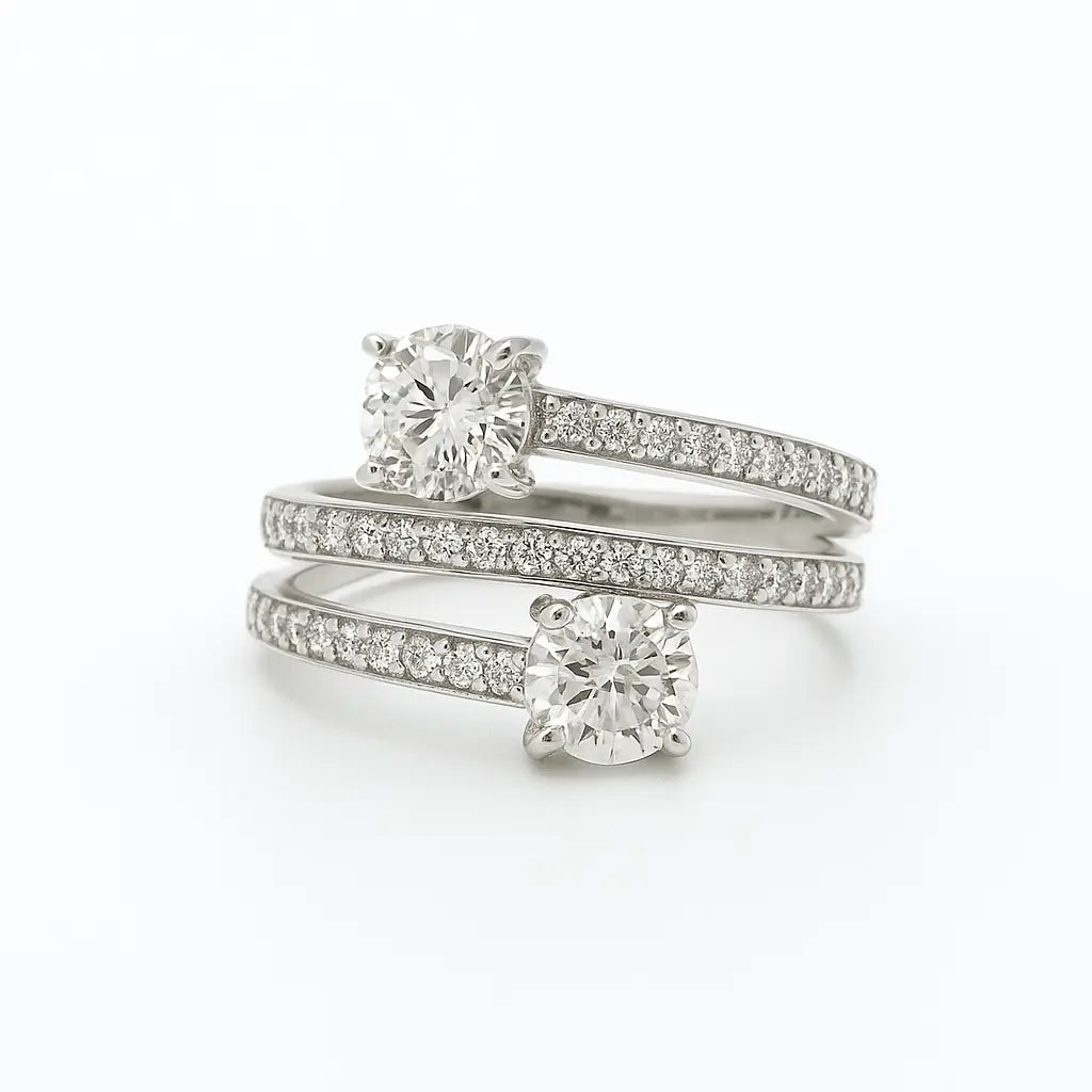 The Open Two-Layer Diamond Ring showcases the brilliance of lab grown diamonds in a refined, contemporary design. Its elegant layered structure enhances the sparkle, offering a sophisticated statement piece that combines ethical craftsmanship with timeless style. Perfect for those who appreciate luxury with a conscious touch.