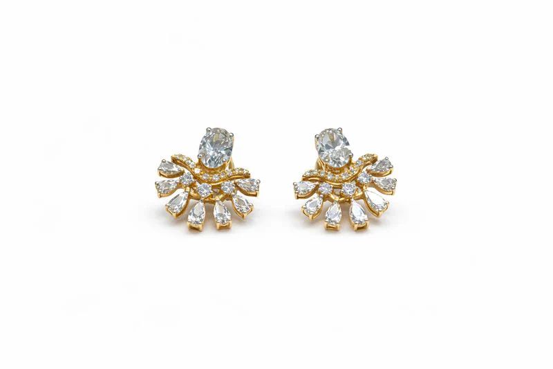 Ornate Floral Diamond Fan Earrings - Pear & Oval Cut Diamond Clusters