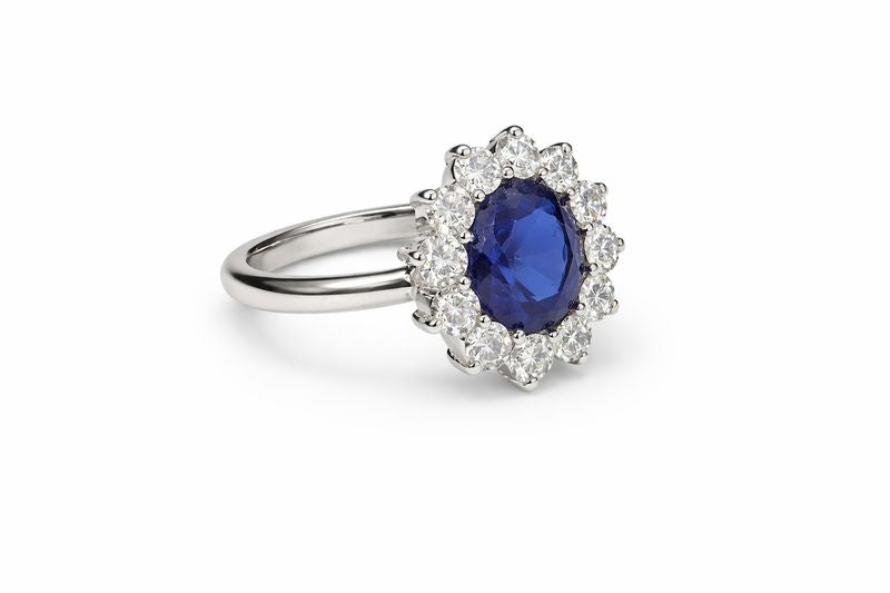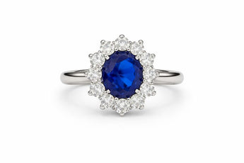 Oval Blue Sapphire Ring with Diamond Halo