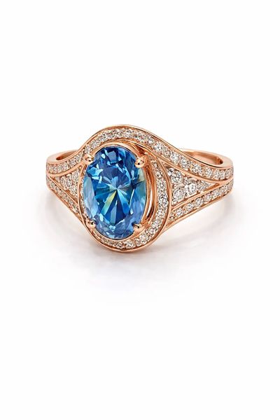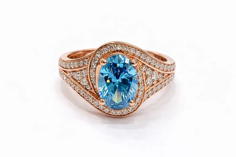 Oval Cut Blue Diamond Ring in Rose Gold 2.86 Carat
