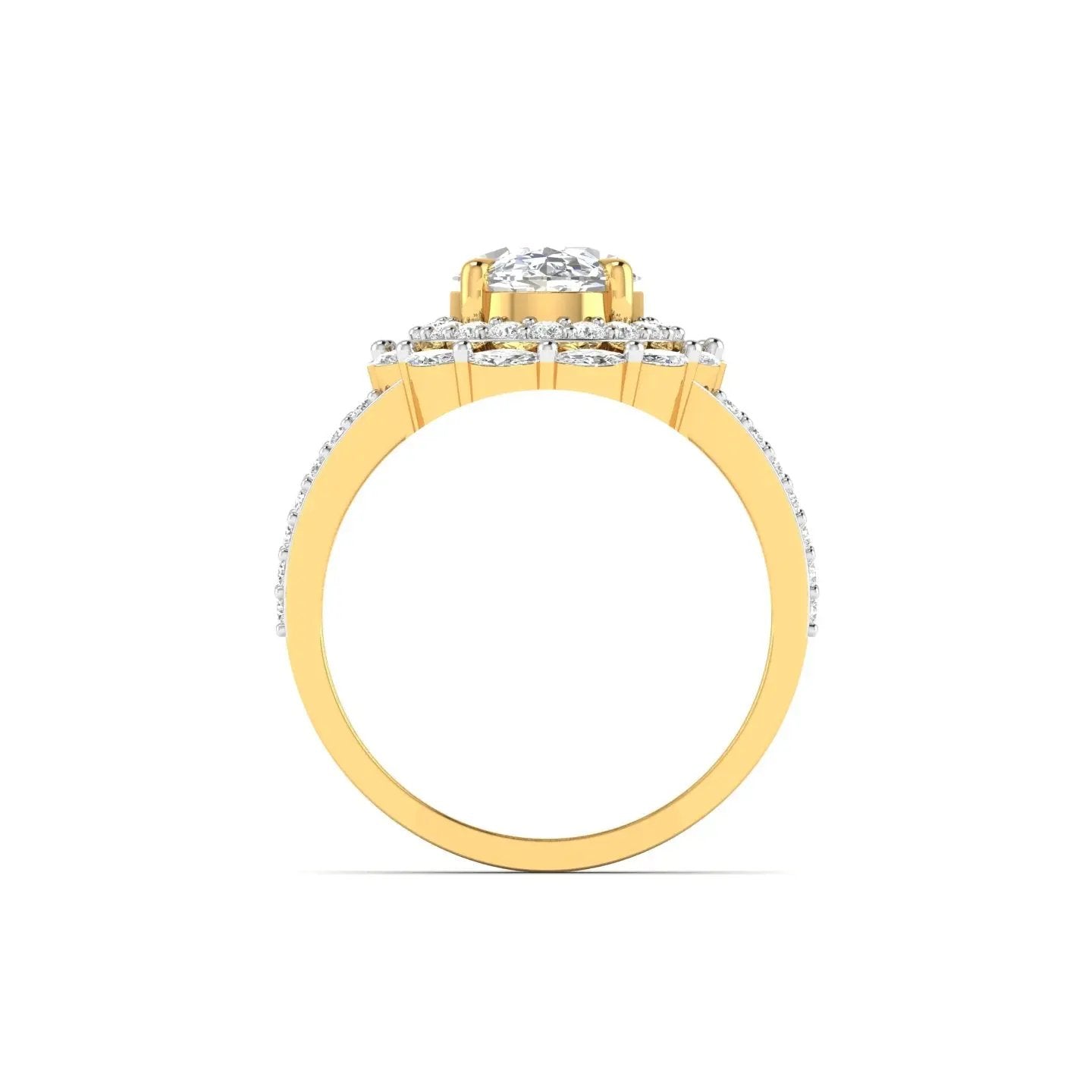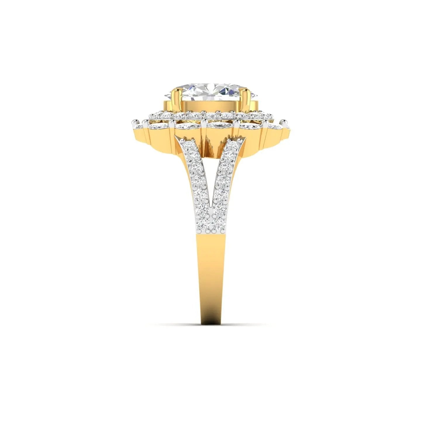 Celebrate your love story with this stunning oval cut diamond halo engagement ring. The elongated oval diamond takes center stage, surrounded by a sparkling halo of smaller diamonds that amplify its brilliance and create a timeless, romantic look. Crafted with precision and care, this ring combines classic elegance with contemporary design, making it a meaningful symbol of your commitment. Perfect for those who appreciate sophisticated style and enduring beauty, this piece is designed to be treasured for a lifetime.