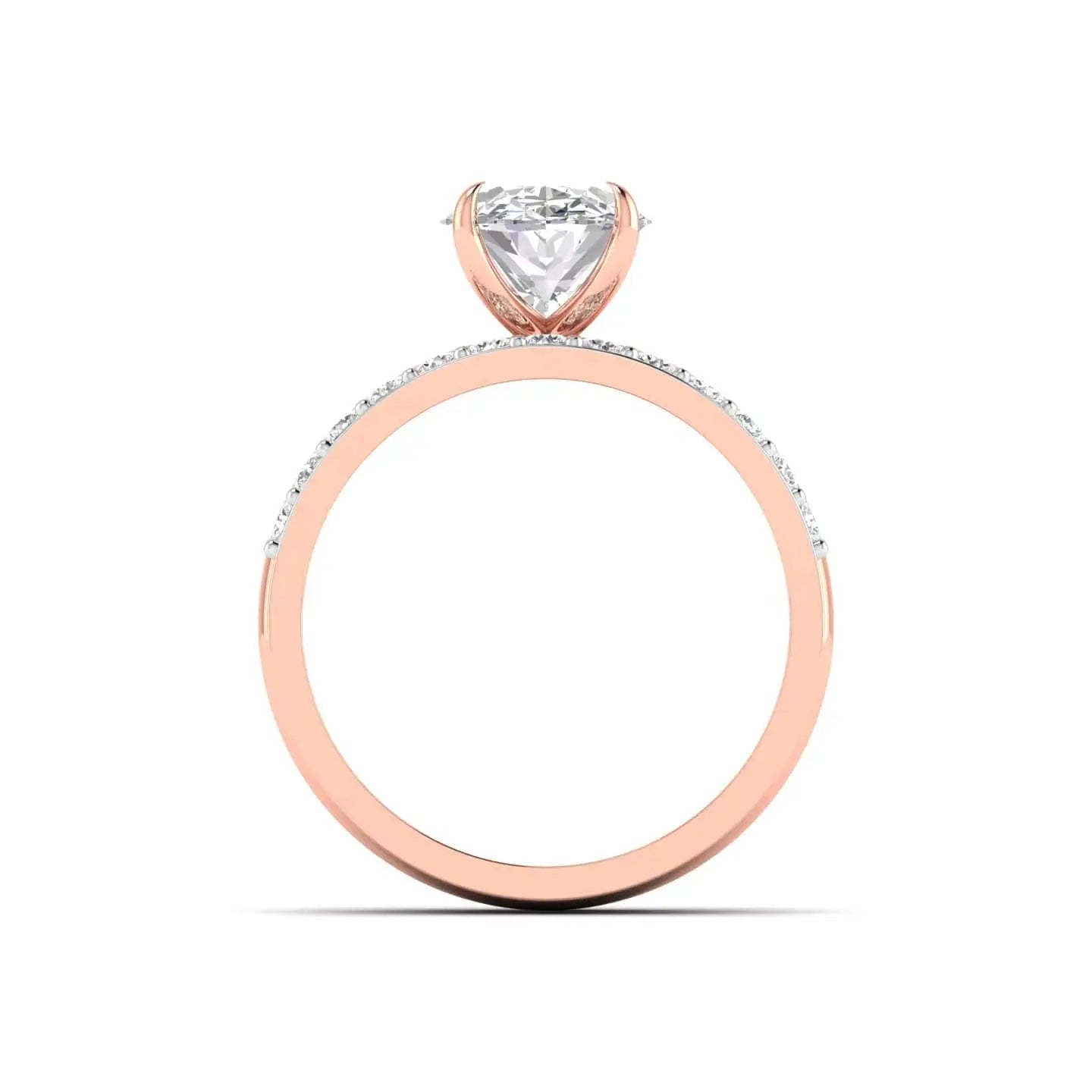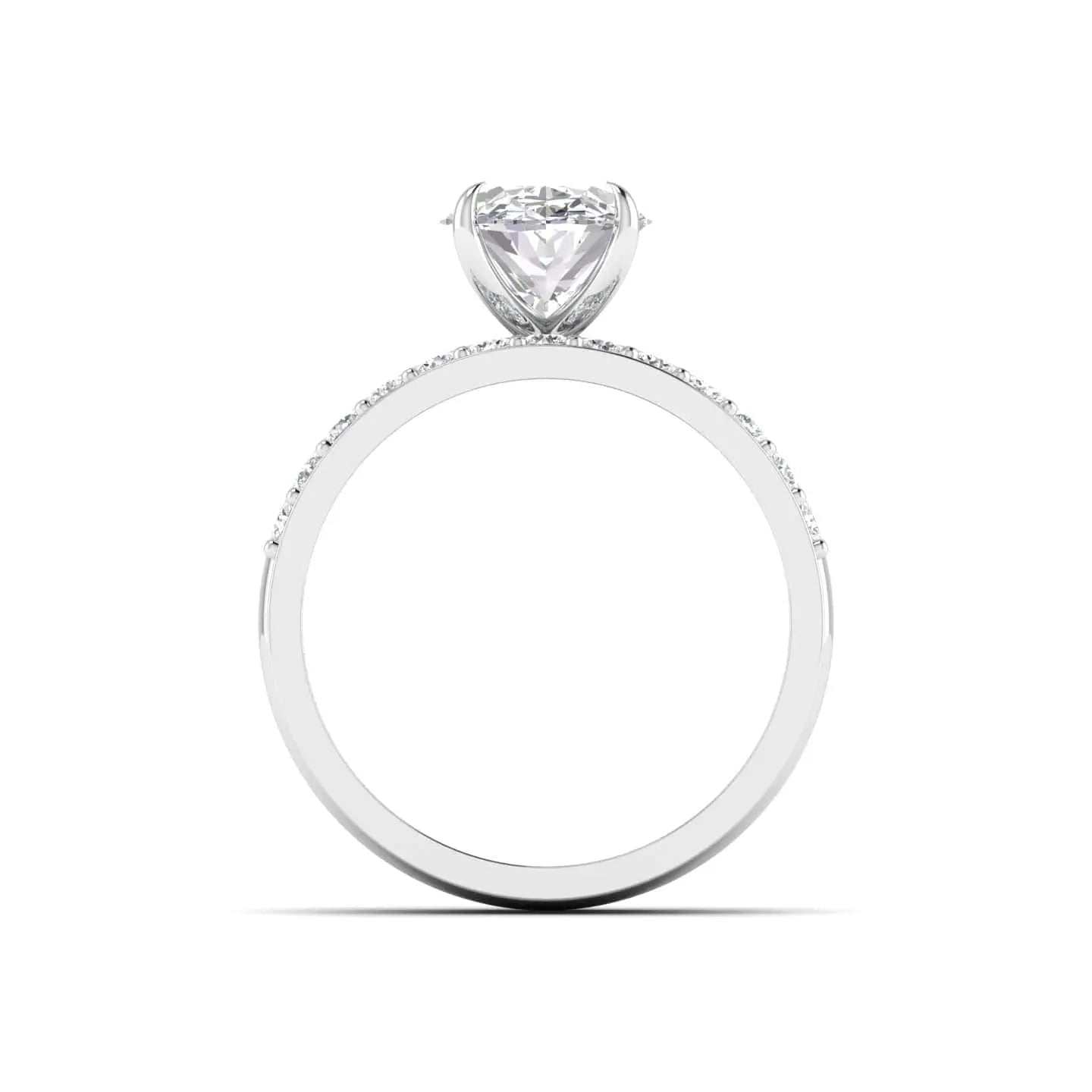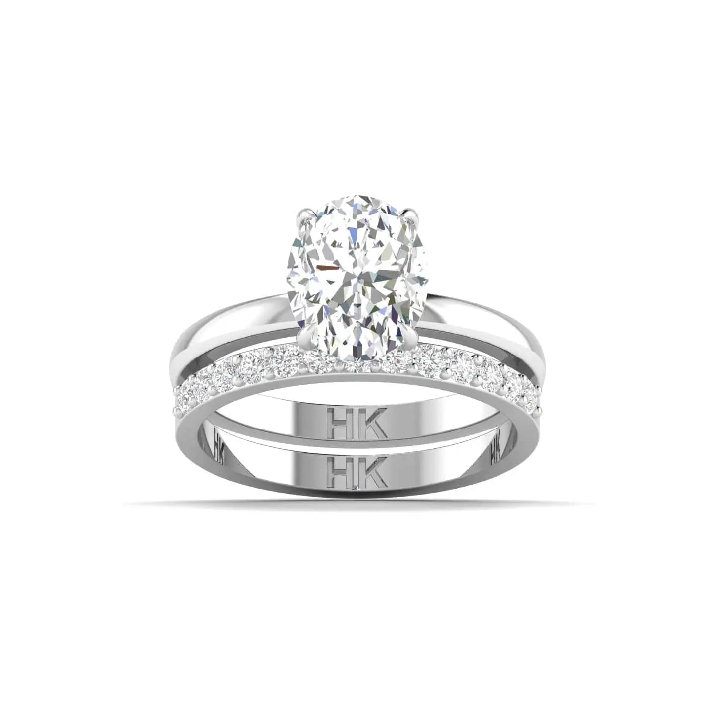 This 2.5 Carat Oval Solitaire ring showcases a brilliant lab grown diamond set on a refined stack band. Its elegant design combines classic sophistication with modern sustainability, offering a stunning statement piece that reflects both beauty and ethical values. Ideal for those seeking timeless luxury with a conscious touch.