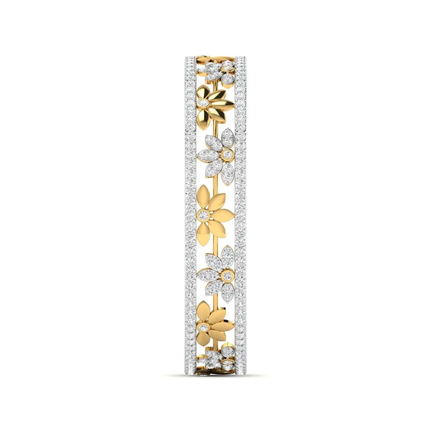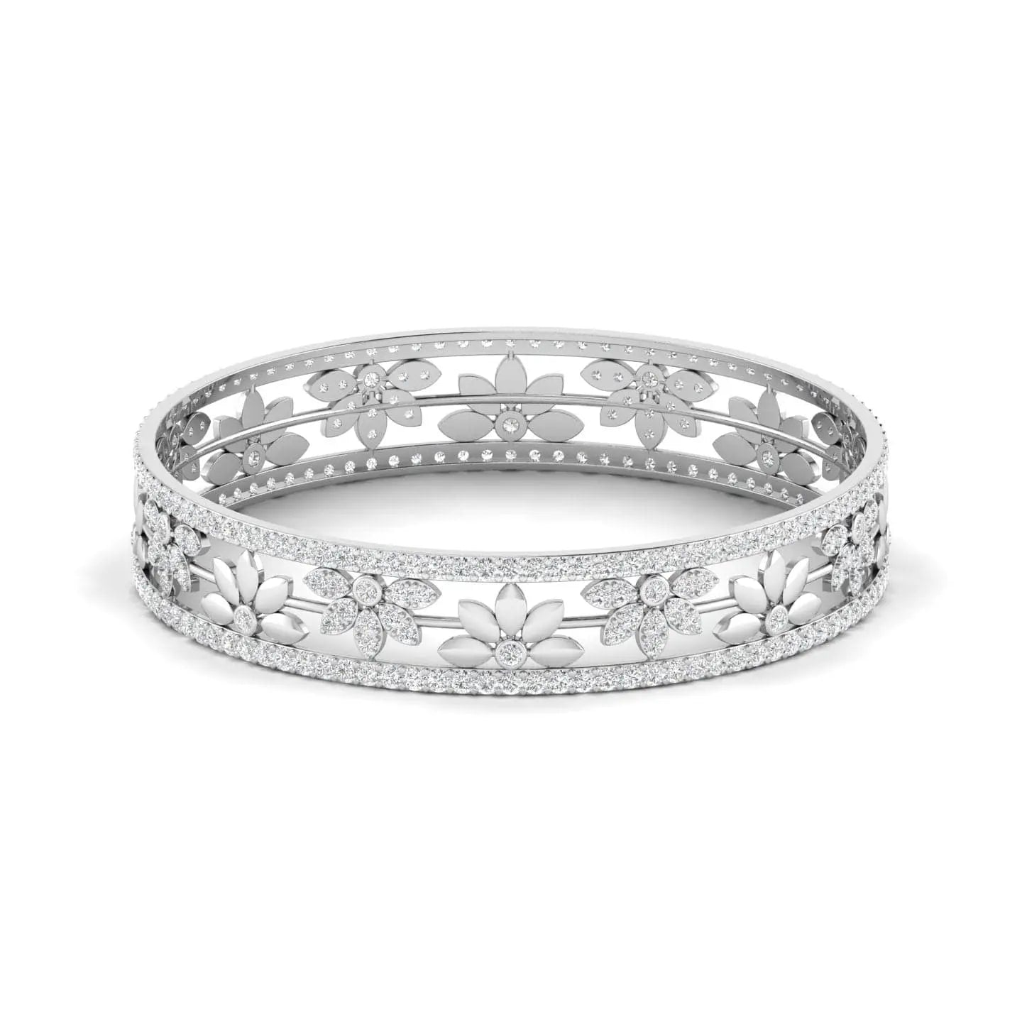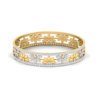 This Patterned Floral Diamond Bangle showcases the brilliance of lab grown diamonds set in an elegant floral design. Combining sustainable luxury with refined craftsmanship, it adds a touch of sophistication and ethical sparkle to any outfit. Ideal for those who value both beauty and responsibility.