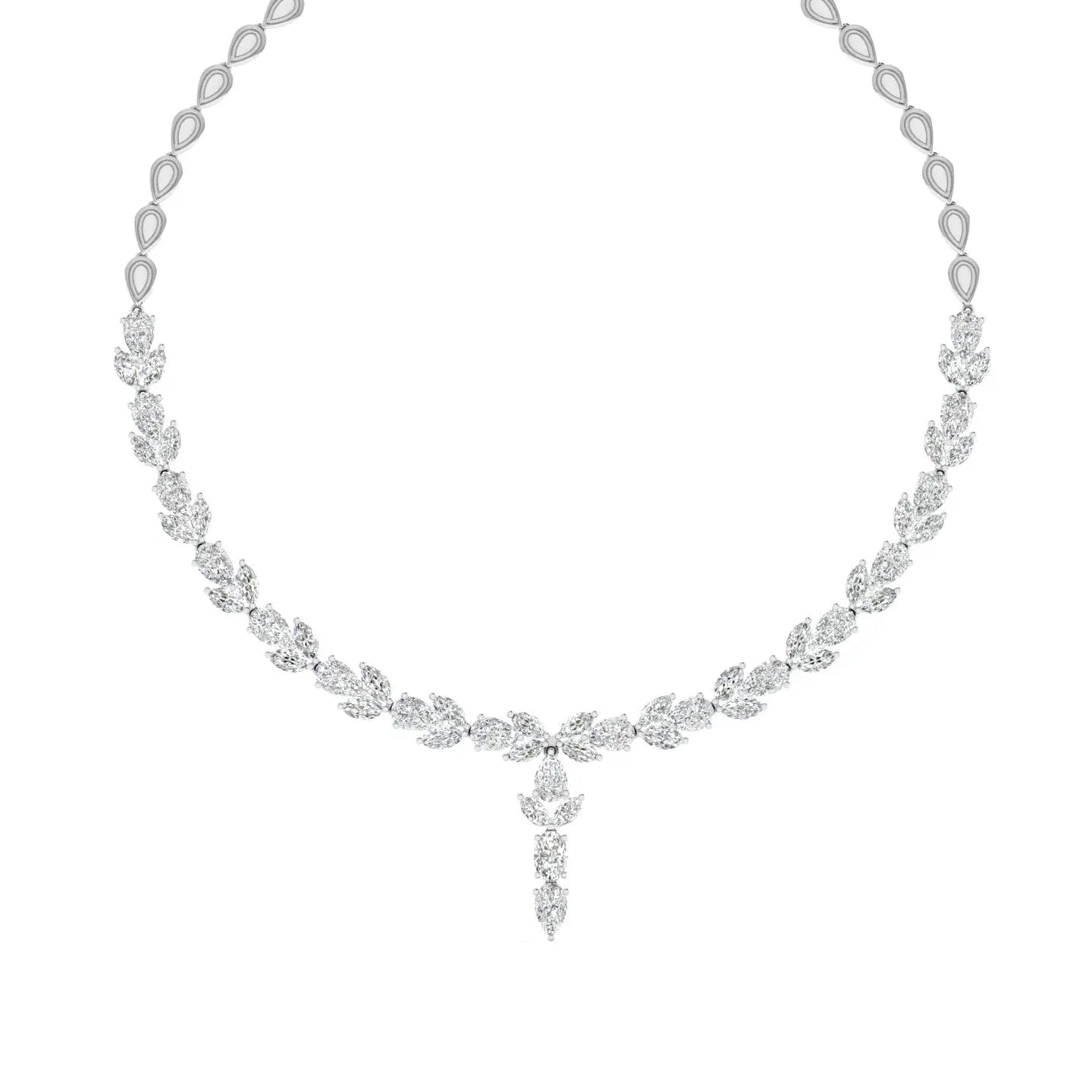 Elevate your elegance with this stunning statement necklace, featuring a harmonious blend of pear-shaped and marquise-cut diamonds. Each stone is carefully selected to create a sophisticated silhouette that catches light beautifully from every angle. Perfect for special occasions or adding a touch of luxury to your everyday style, this piece celebrates timeless glamour. The thoughtfully designed arrangement ensures comfort and confidence as you wear it, making it an investment in both beauty and quality craftsmanship.