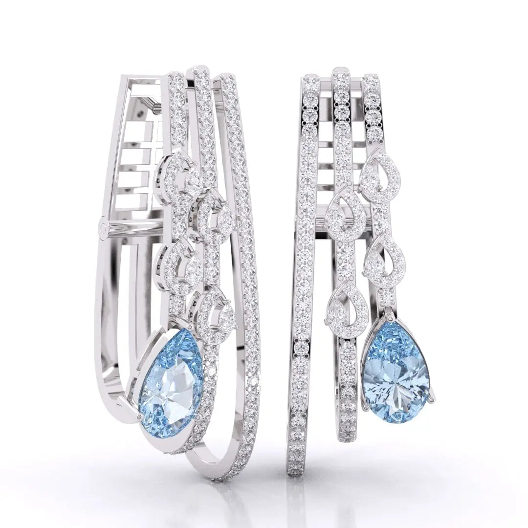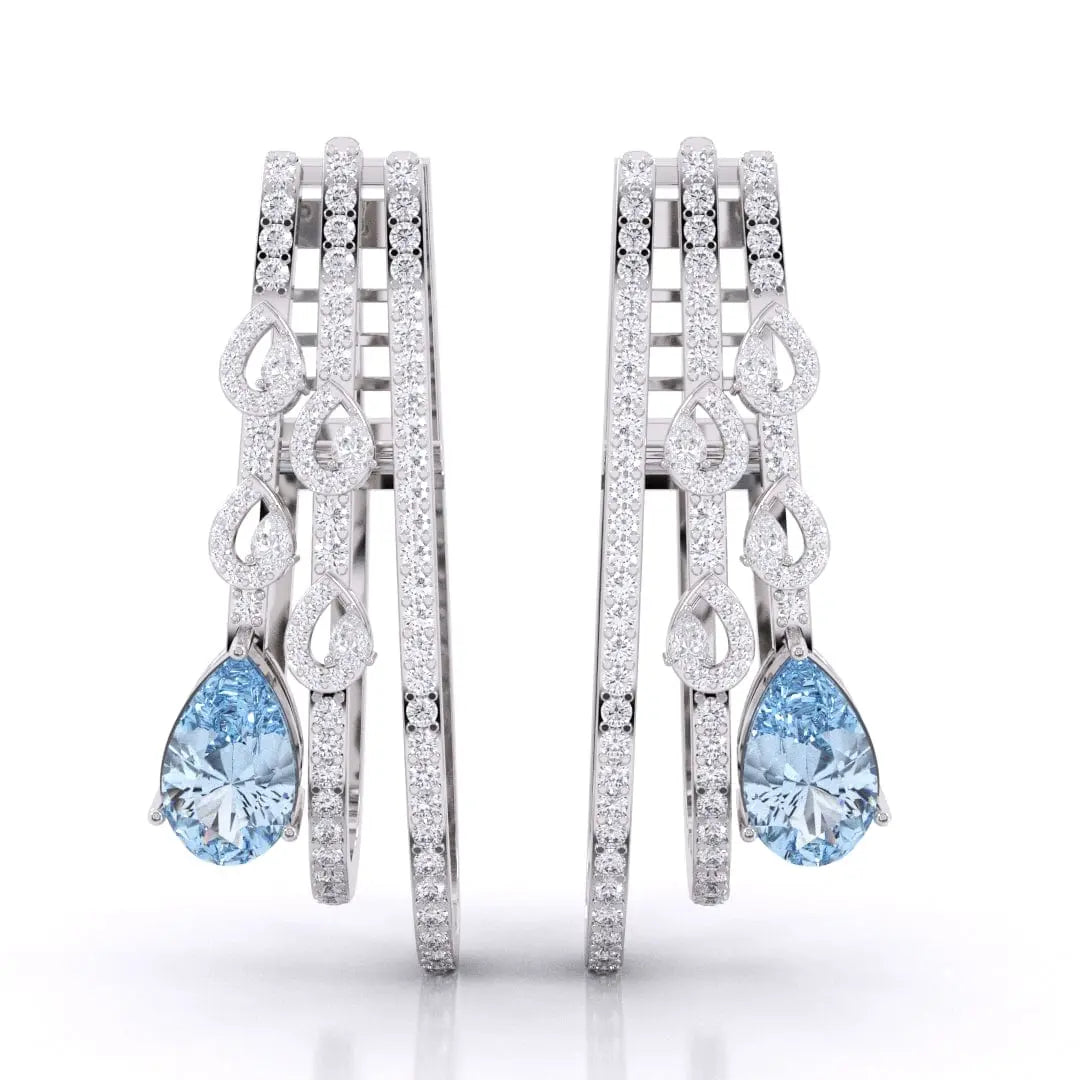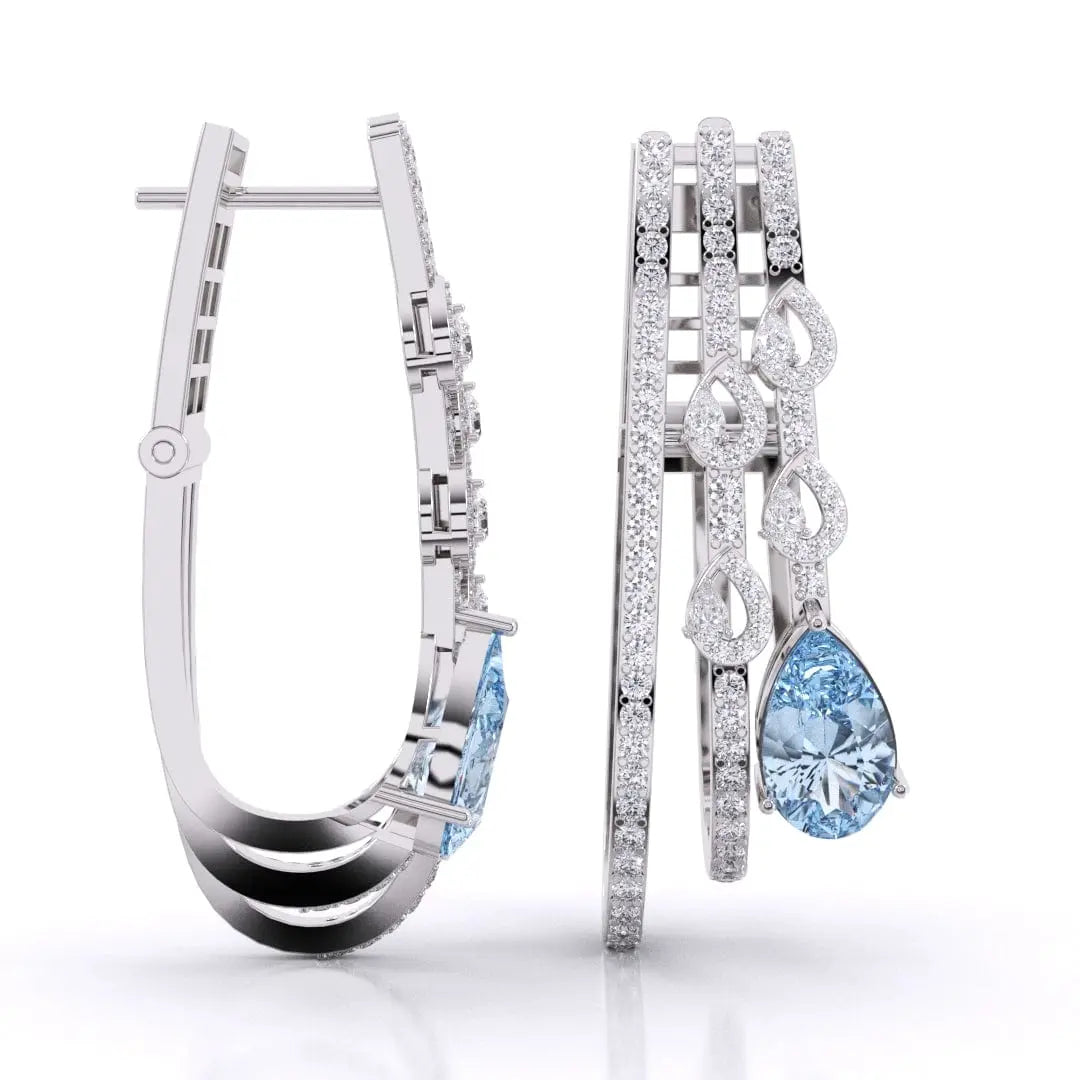 These pear-shaped aquamarine earrings feature lab grown diamonds that add a fresh burst of color and brilliance. Their bold design balances striking elegance with sustainable craftsmanship, making them a refined choice for those who appreciate both beauty and responsibility.