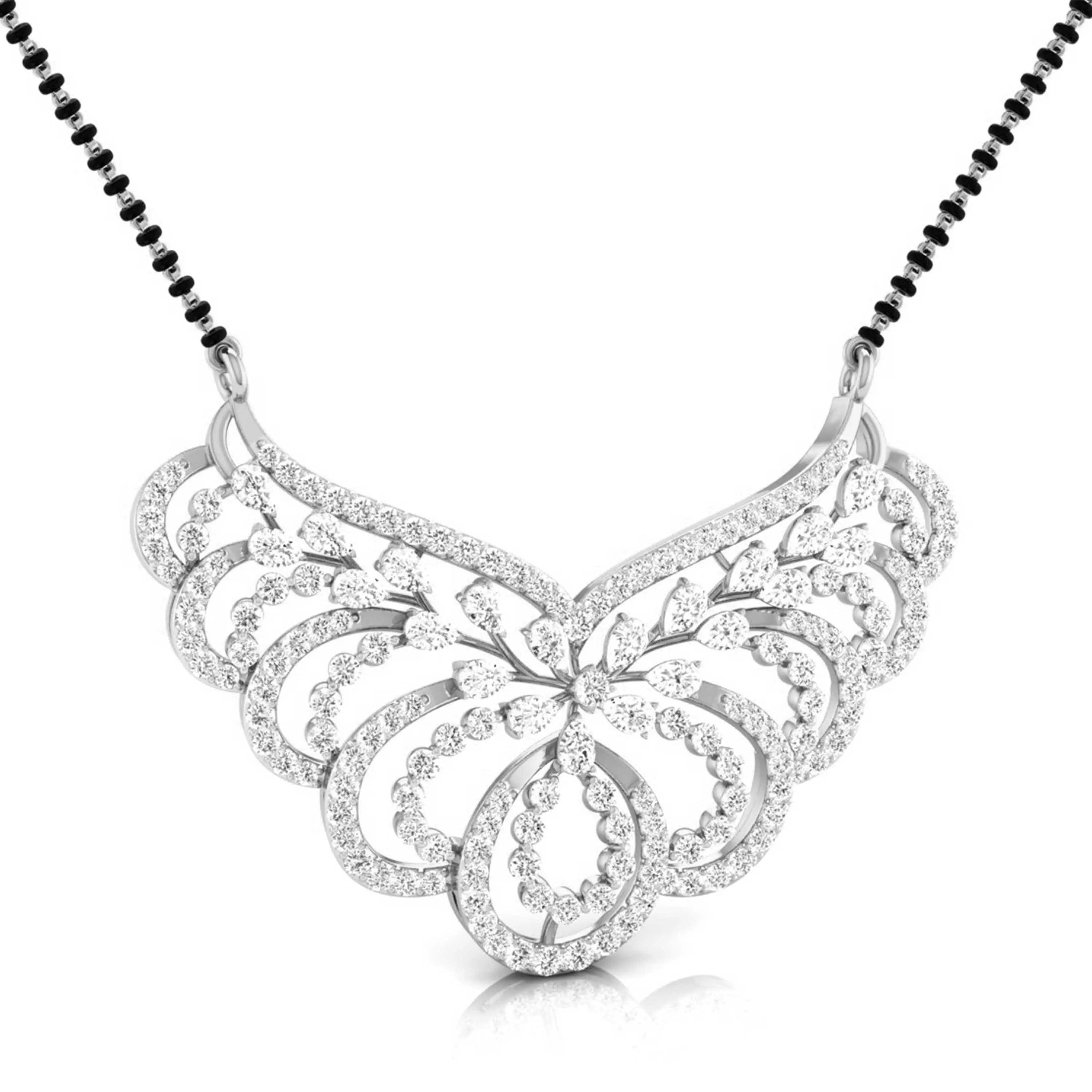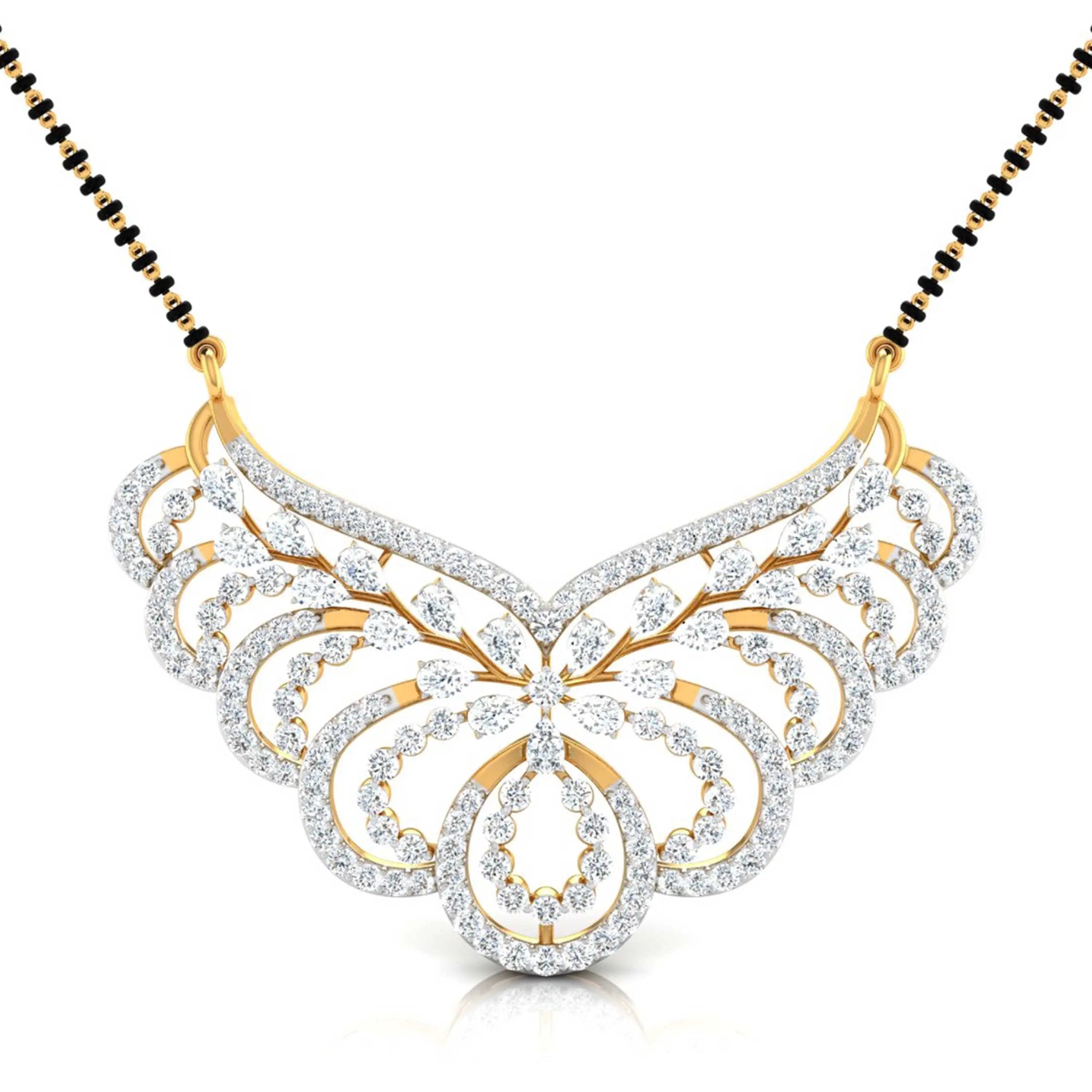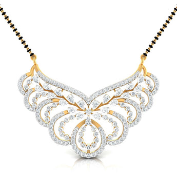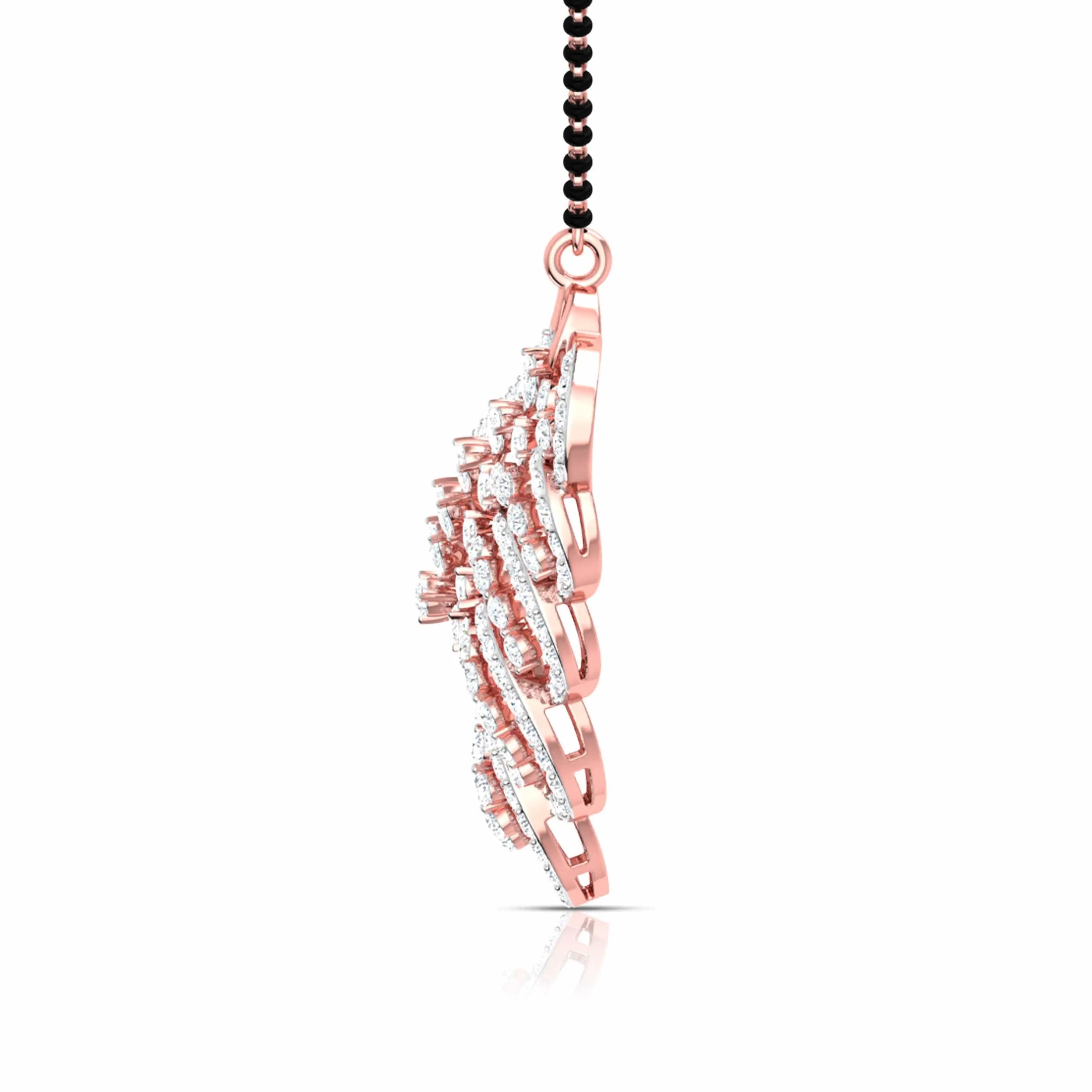This Pear & Round Cut Lab Grown Diamond Encrusted Floral Pendant is designed to enhance your lab grown diamond mangalsutra. Featuring a delicate floral motif, it merges timeless tradition with modern elegance—a sustainable and sophisticated choice for meaningful adornment.