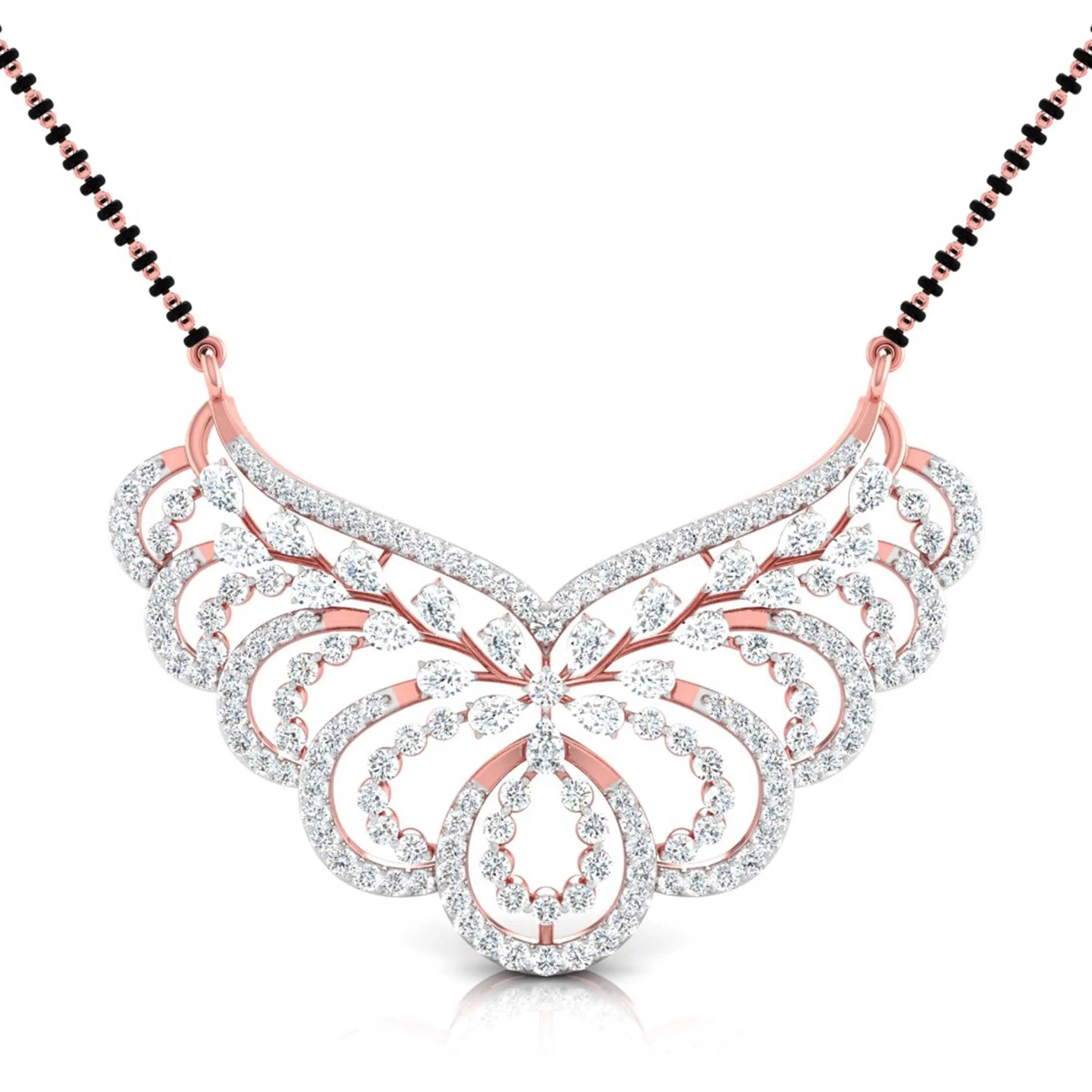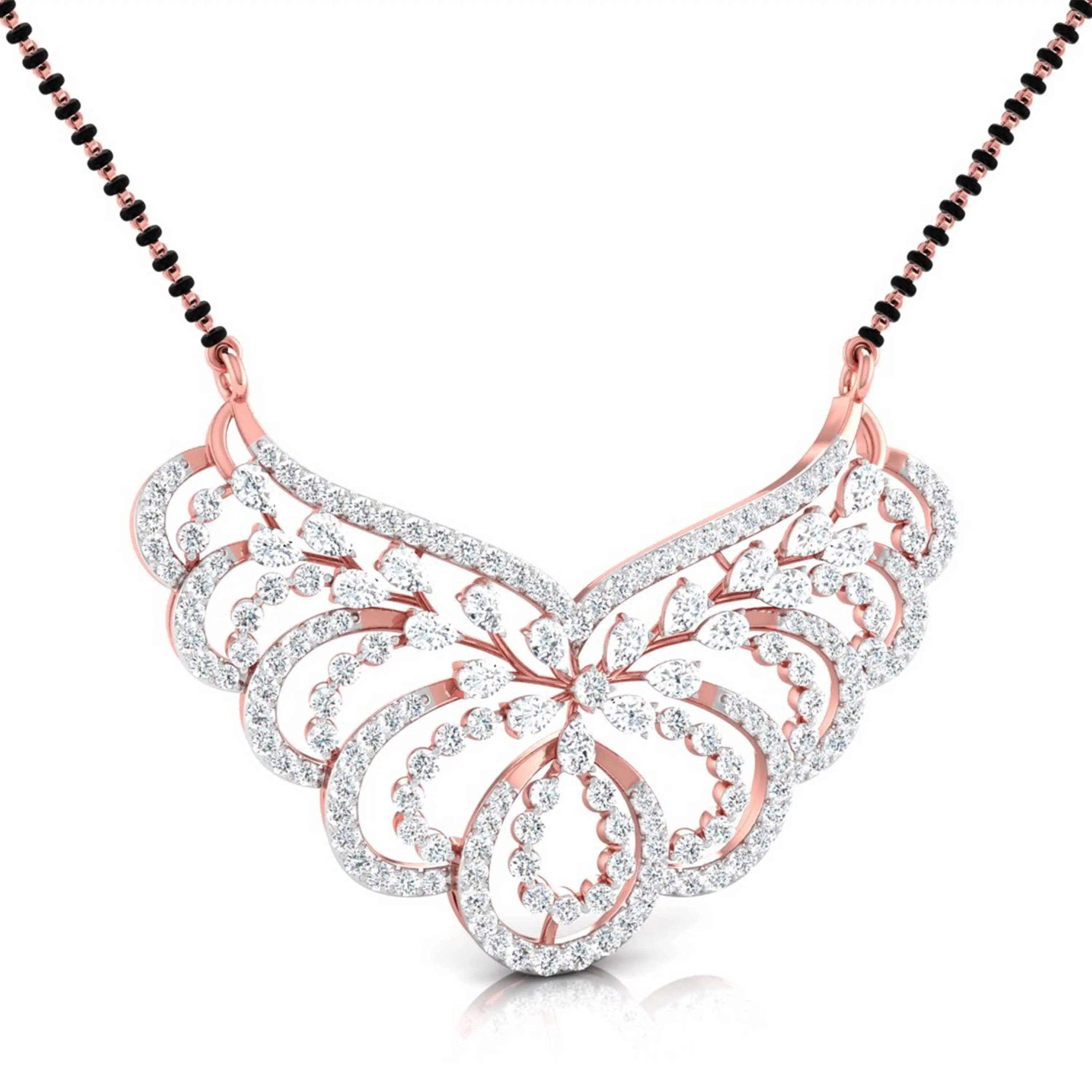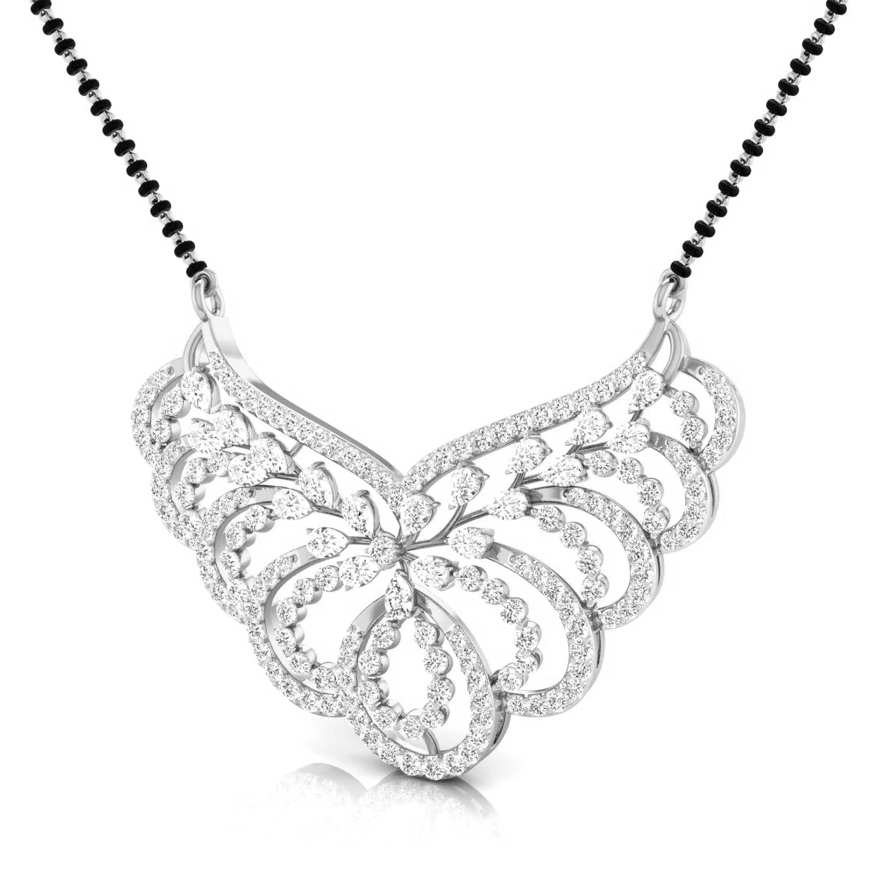 This Pear & Round Cut Lab Grown Diamond Encrusted Floral Pendant is designed to enhance your lab grown diamond mangalsutra. Featuring a delicate floral motif, it merges timeless tradition with modern elegance—a sustainable and sophisticated choice for meaningful adornment.