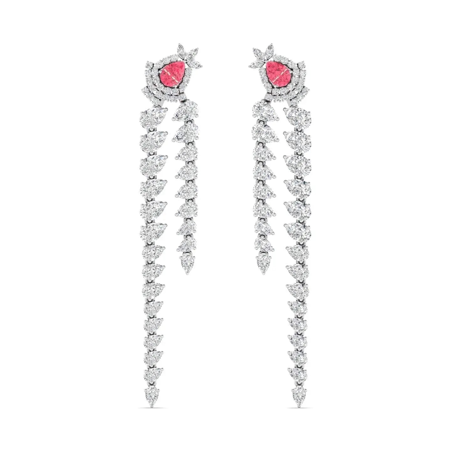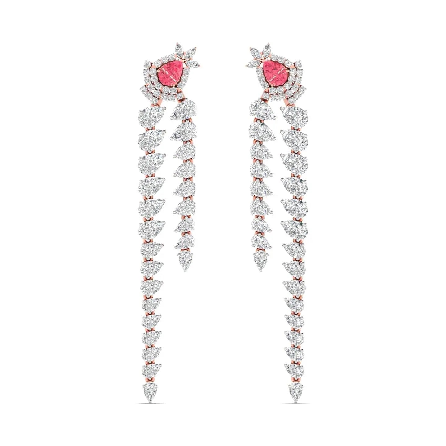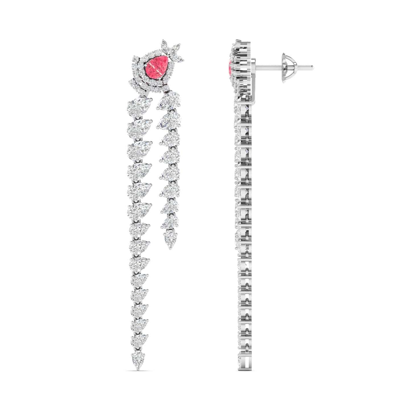 These Diamond Dangle Earrings showcase the brilliance of lab grown diamonds paired with subtle pink diamond accents. Meticulously crafted for a refined and sophisticated look, they bring a touch of sustainable luxury to your collection. Perfect for special occasions or elevating everyday style with elegant sparkle.