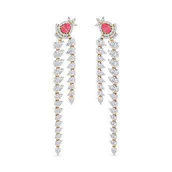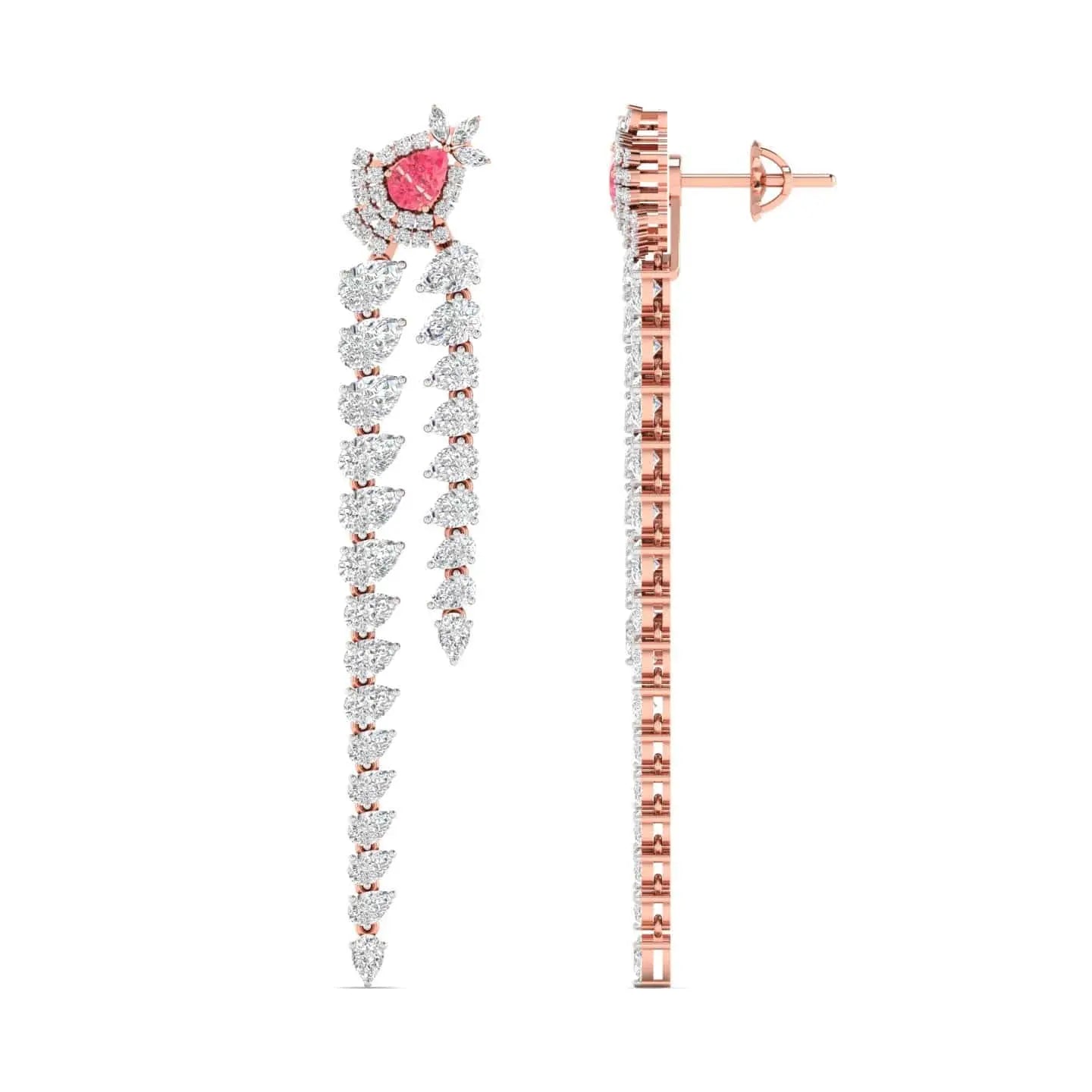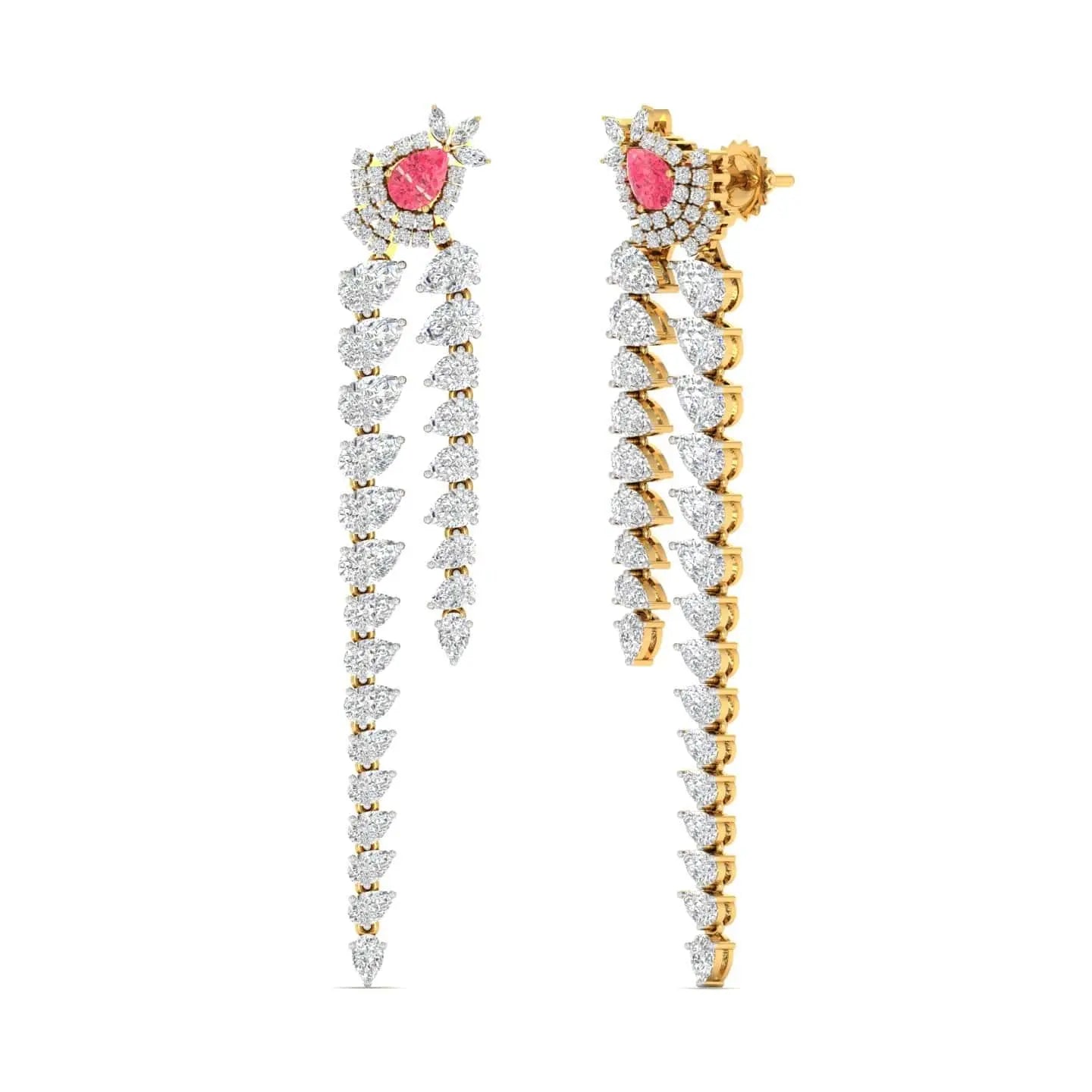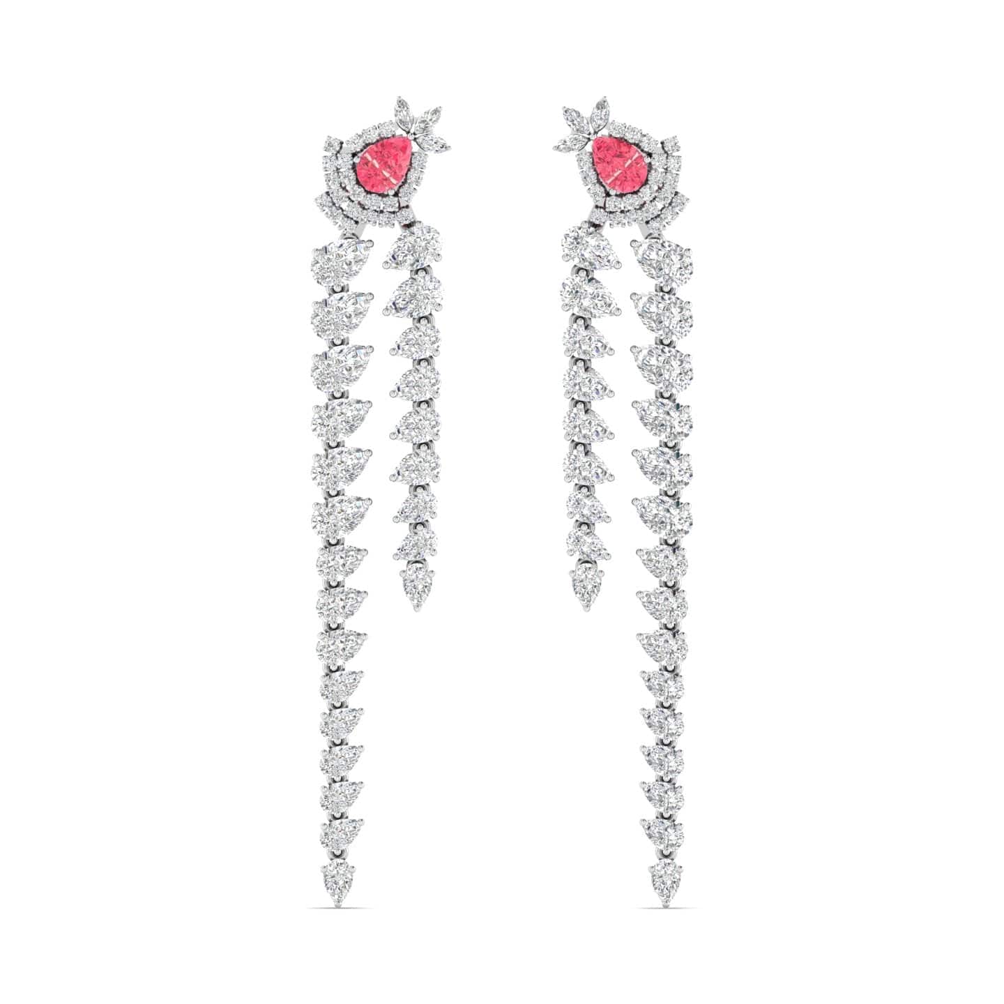 These Diamond Dangle Earrings showcase the brilliance of lab grown diamonds paired with subtle pink diamond accents. Meticulously crafted for a refined and sophisticated look, they bring a touch of sustainable luxury to your collection. Perfect for special occasions or elevating everyday style with elegant sparkle.