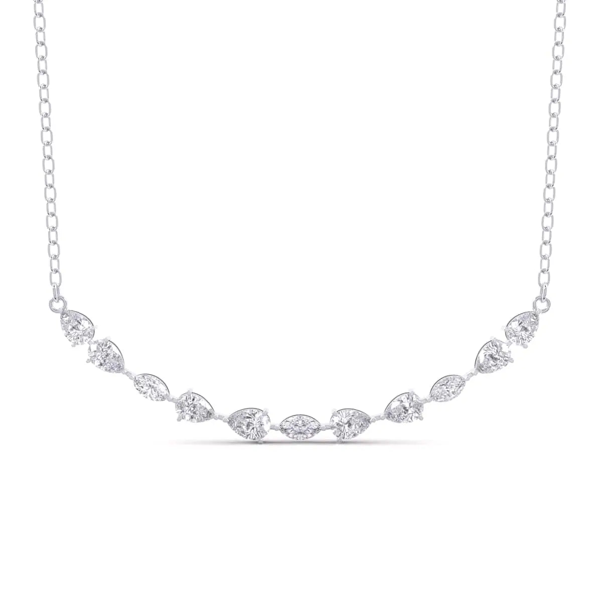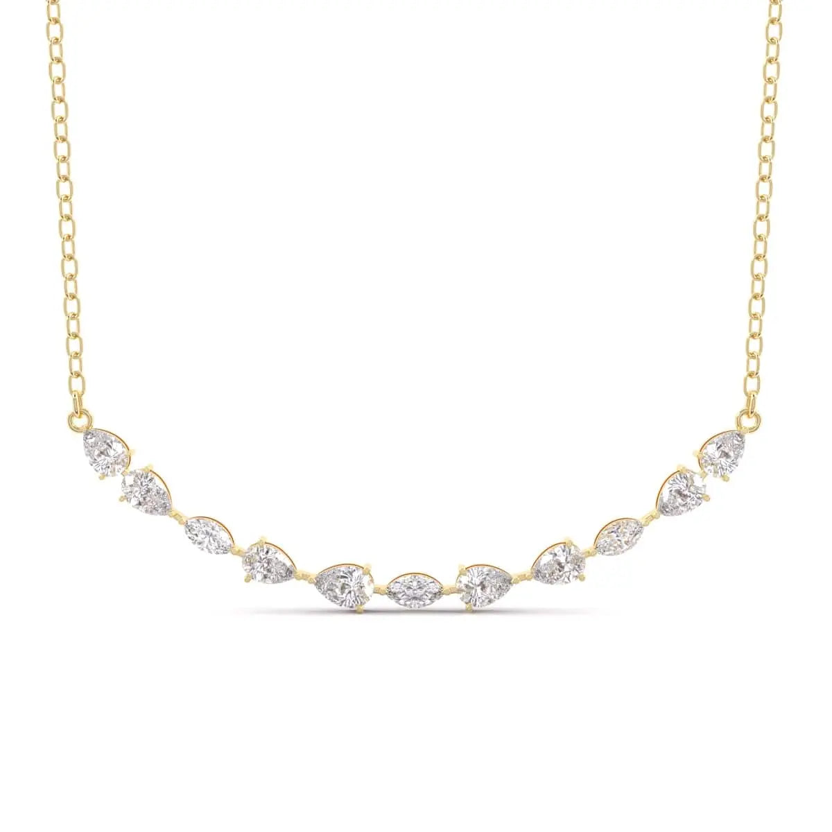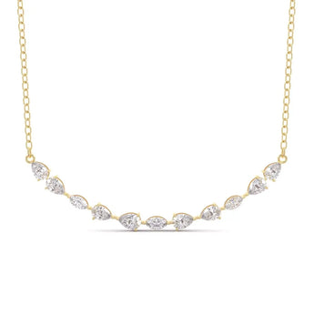 This Pear & Marquise Diamonds Pendant showcases the brilliance of lab grown diamonds in an elegant design. The combination of pear and marquise shapes creates a graceful, sophisticated look that enhances any outfit. Crafted with precision, this pendant offers a stunning sparkle while reflecting a commitment to sustainable luxury.