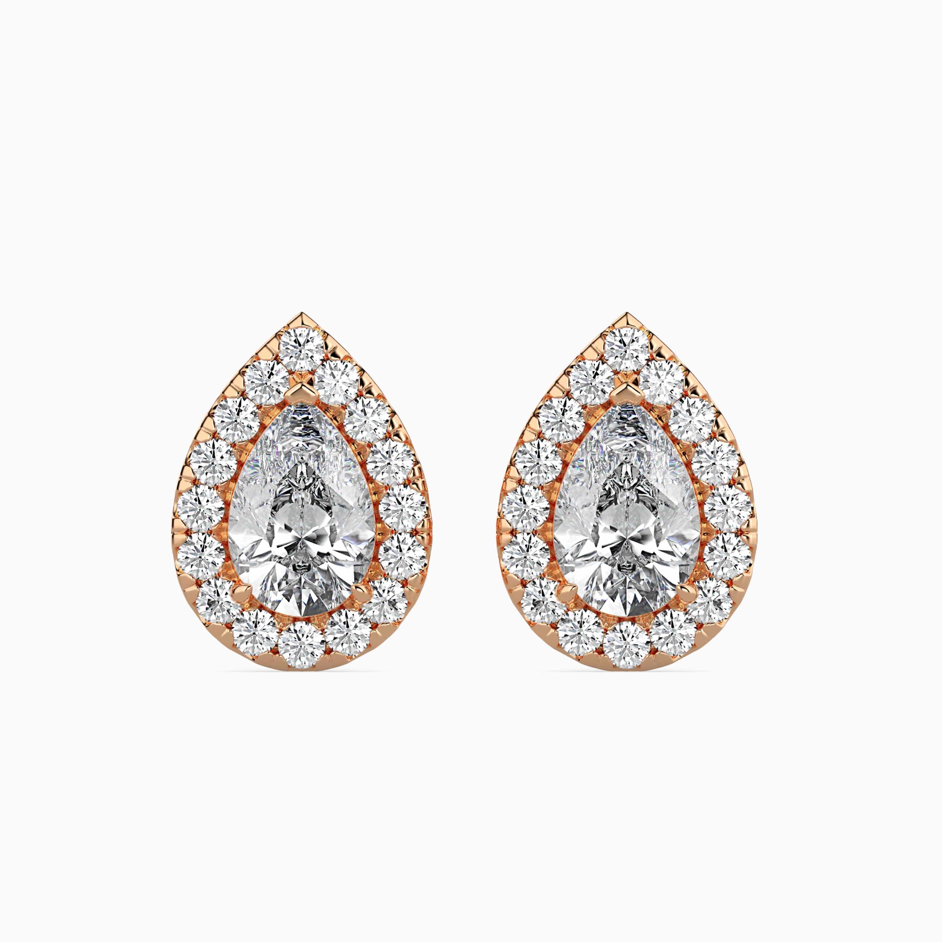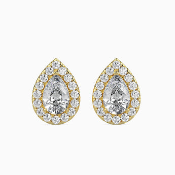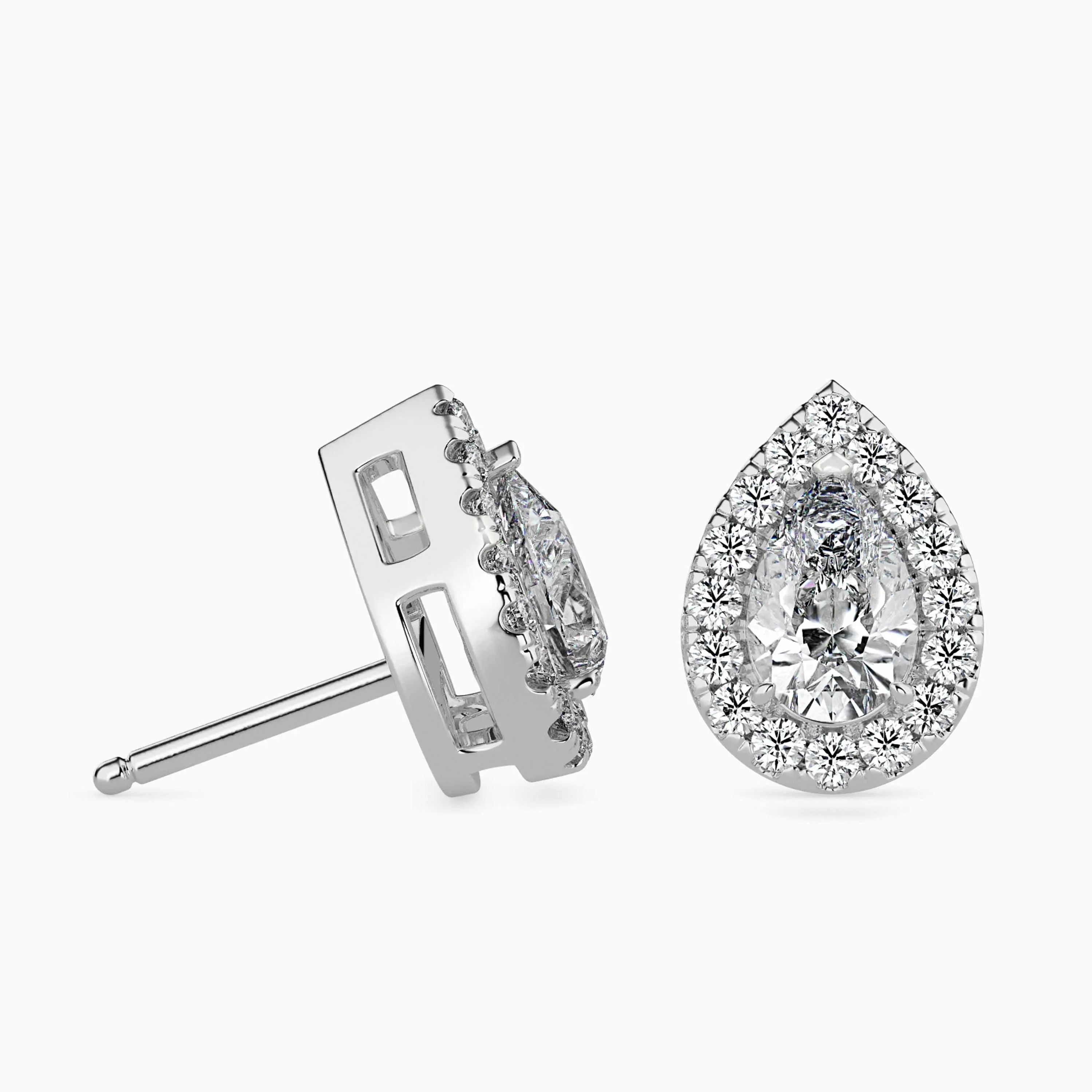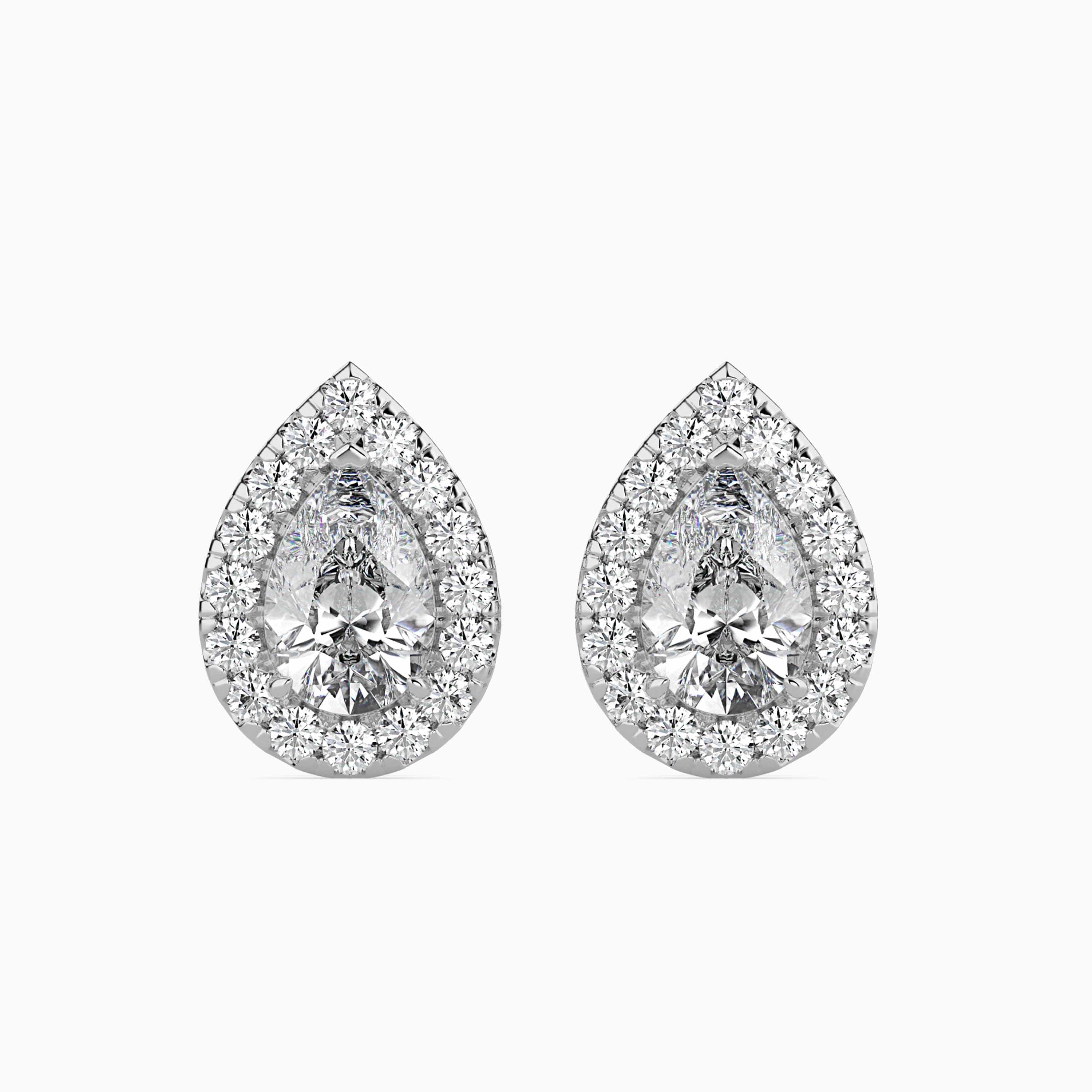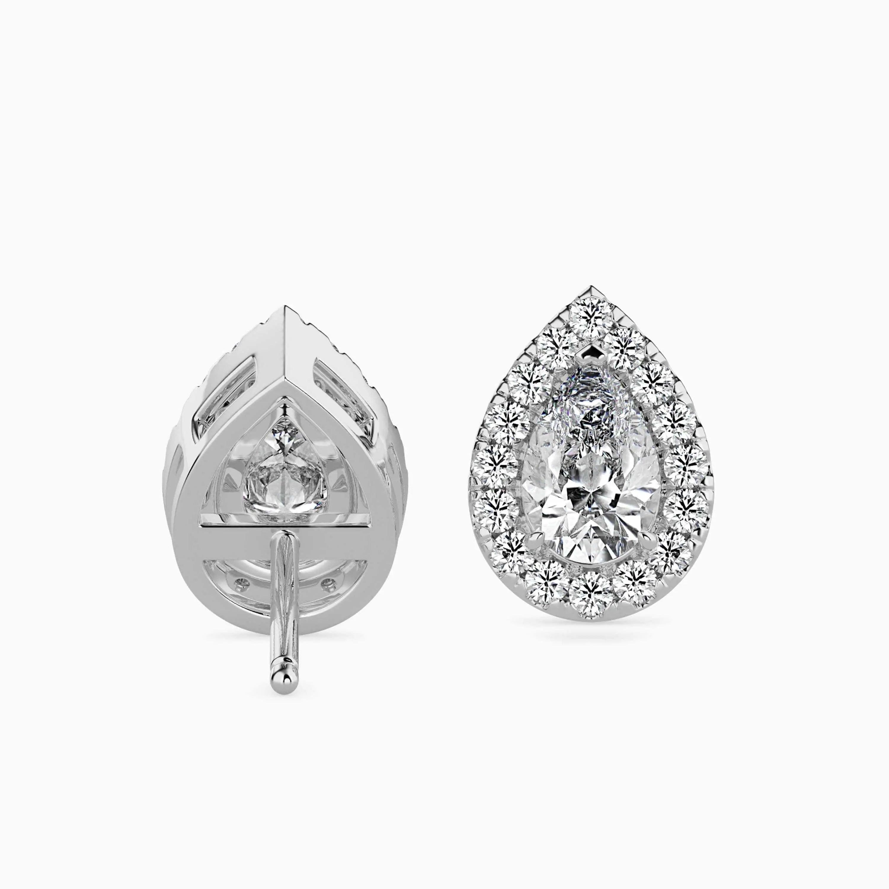 These Pear & Round Lab Grown Diamond Stud Earrings feature a captivating halo design, blending pear and round shapes for refined sparkle. An elegant, ethical choice for timeless sophistication, perfect for adding understated luxury to any look.