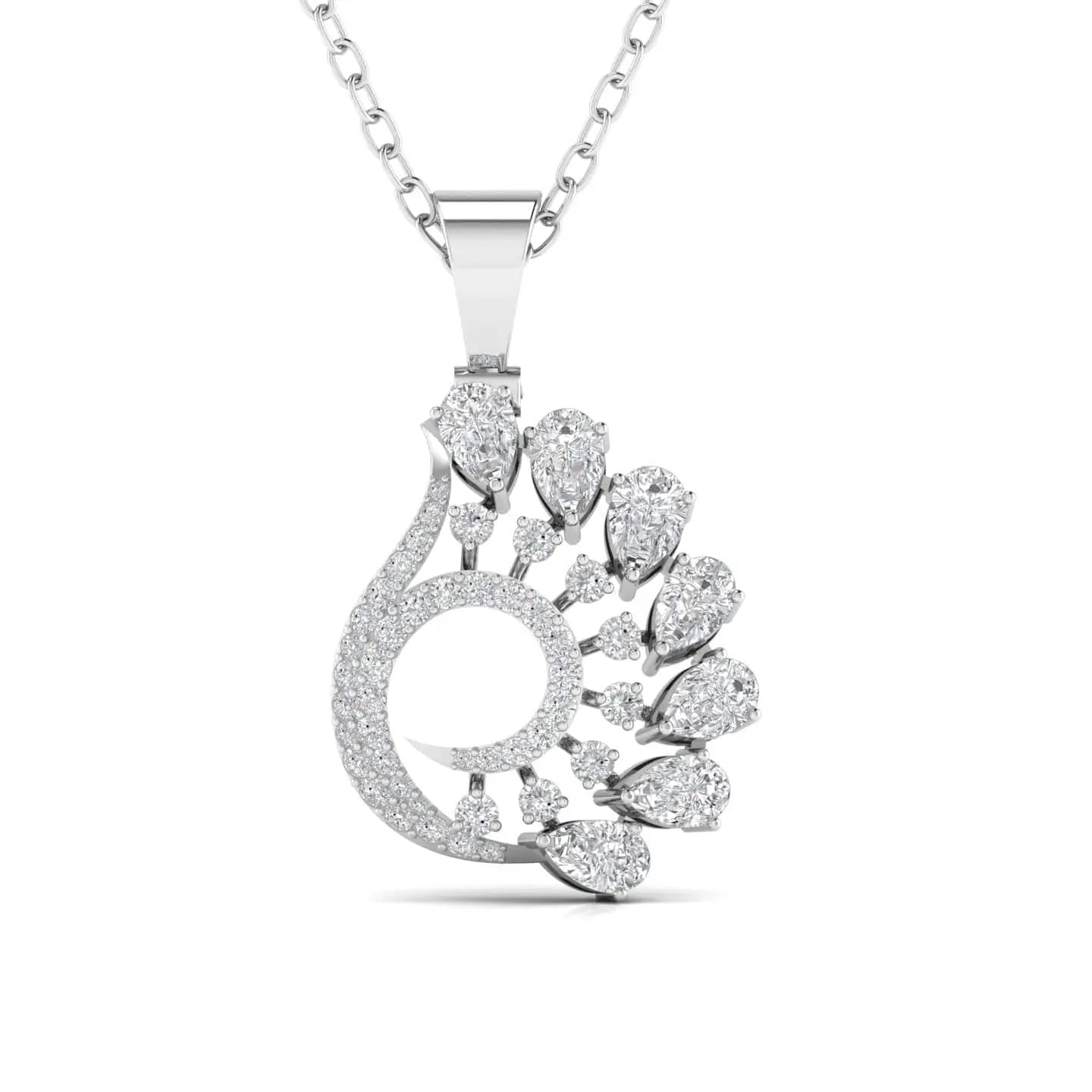 This exquisite pendant features a pear-shaped lab grown diamond set in a peacock-inspired design, blending artistry with sustainable brilliance. Its refined craftsmanship and ethical origin make it a perfect choice for those who appreciate both elegance and conscious luxury. Ideal for adding a sophisticated sparkle to her collection.