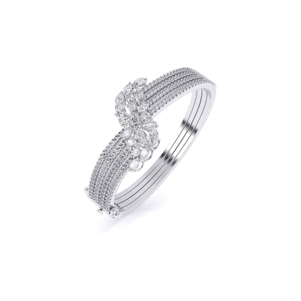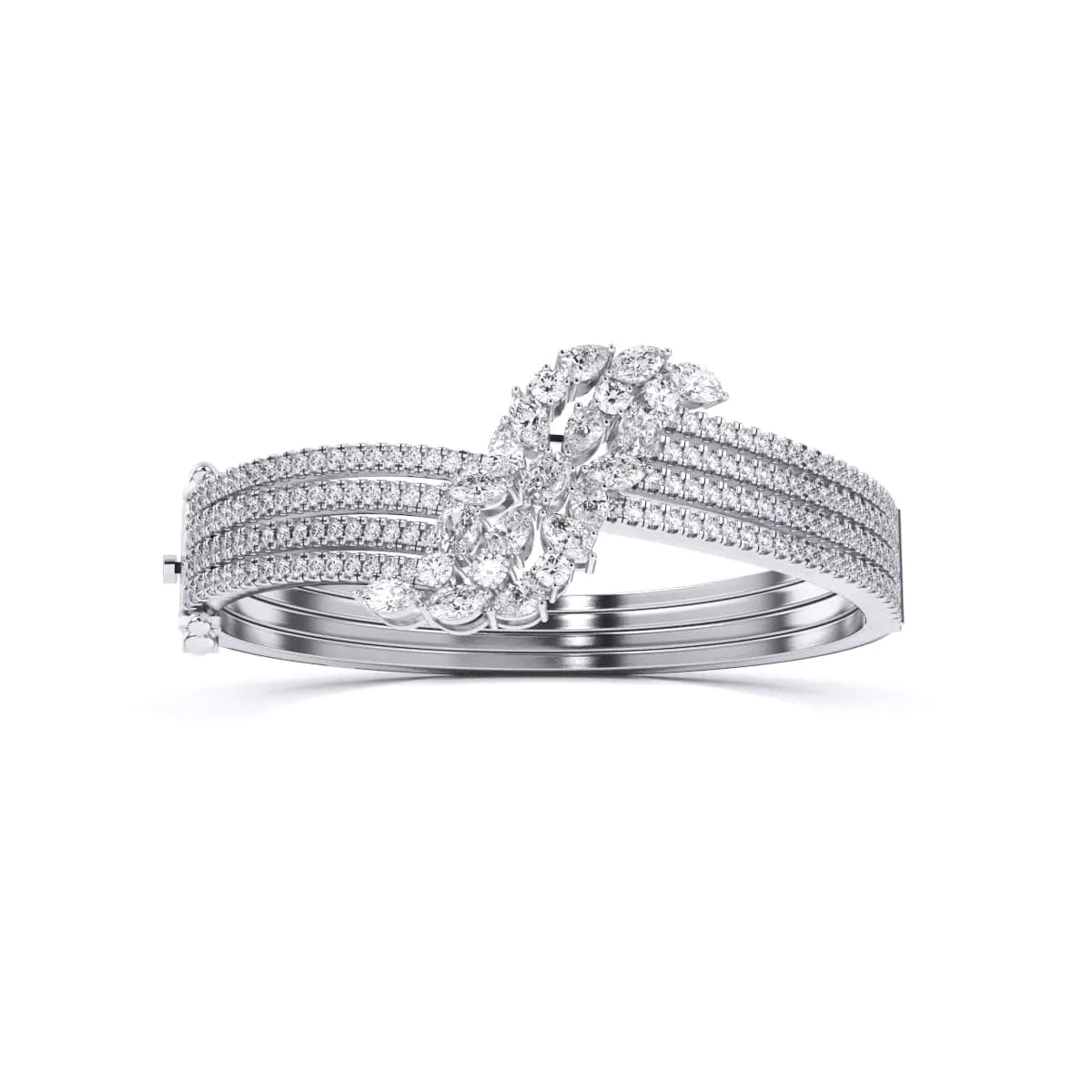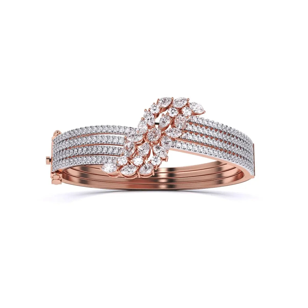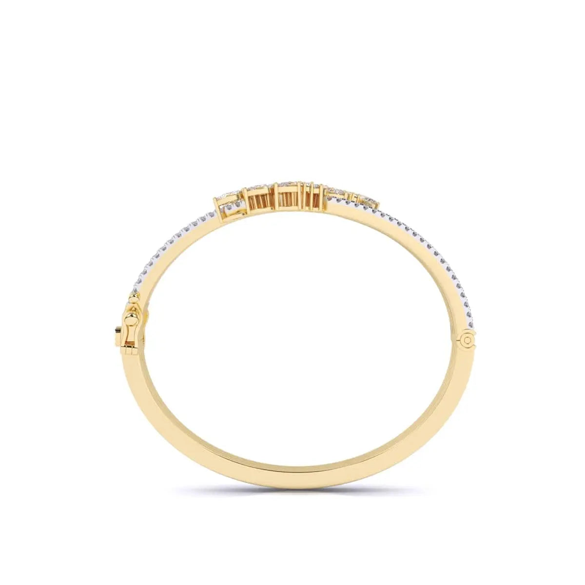The Petal Design Diamond Curved Bangle showcases the brilliance of lab grown diamonds set in an elegant curved design inspired by delicate petals. This sophisticated piece combines modern craftsmanship with ethical luxury, making it a perfect accessory to enhance your refined style with a touch of sustainable sparkle.