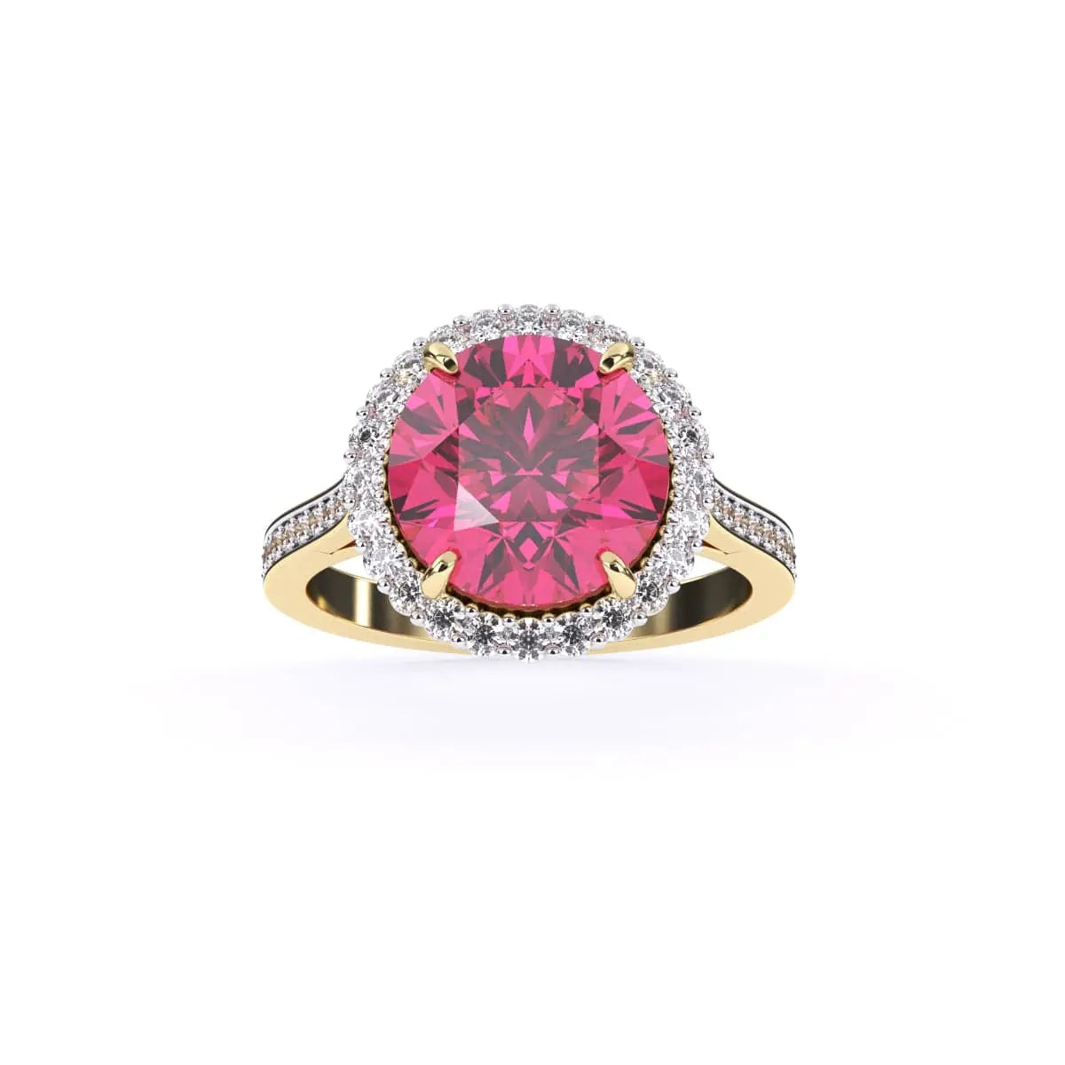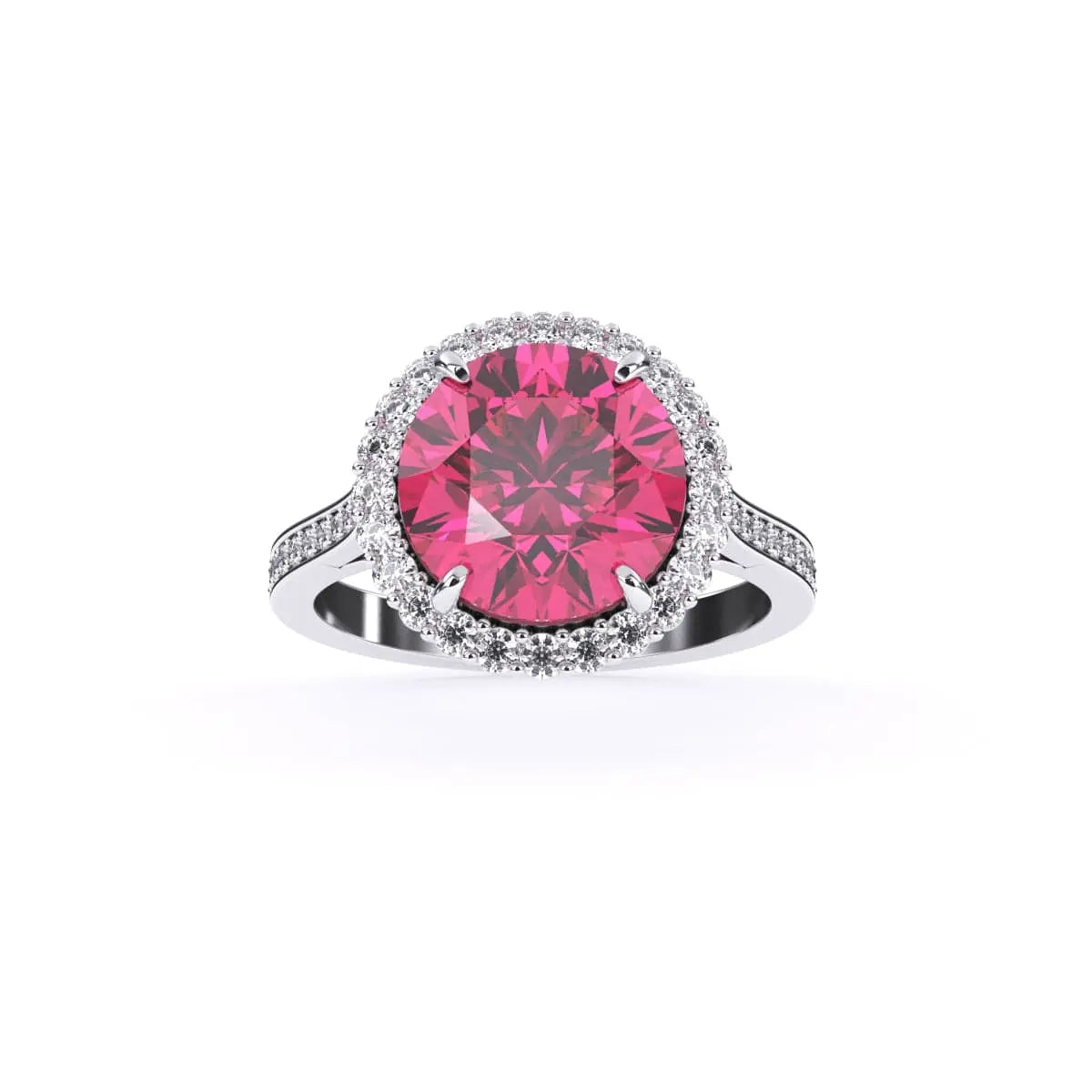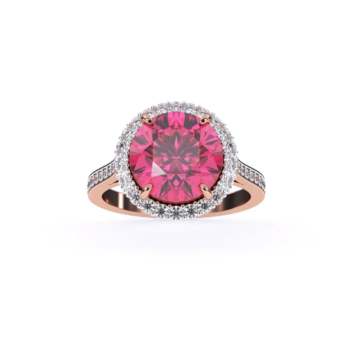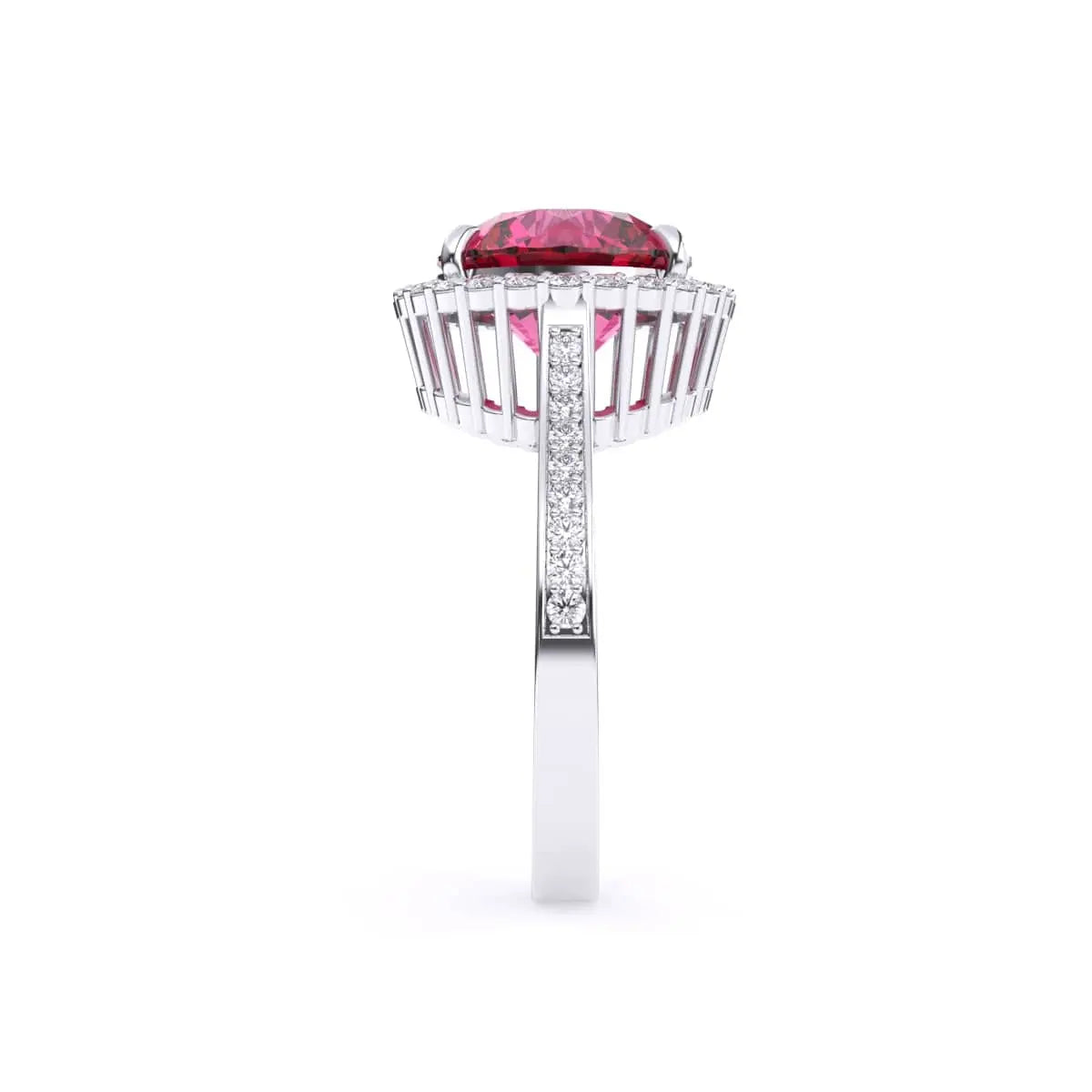 This exquisite Pink Tourmaline Ring features a stunning pink tourmaline centerpiece surrounded by brilliant round lab grown diamonds. Combining ethical craftsmanship with timeless design, it offers a sophisticated touch of color and sparkle, perfect for those who value elegance and sustainability.