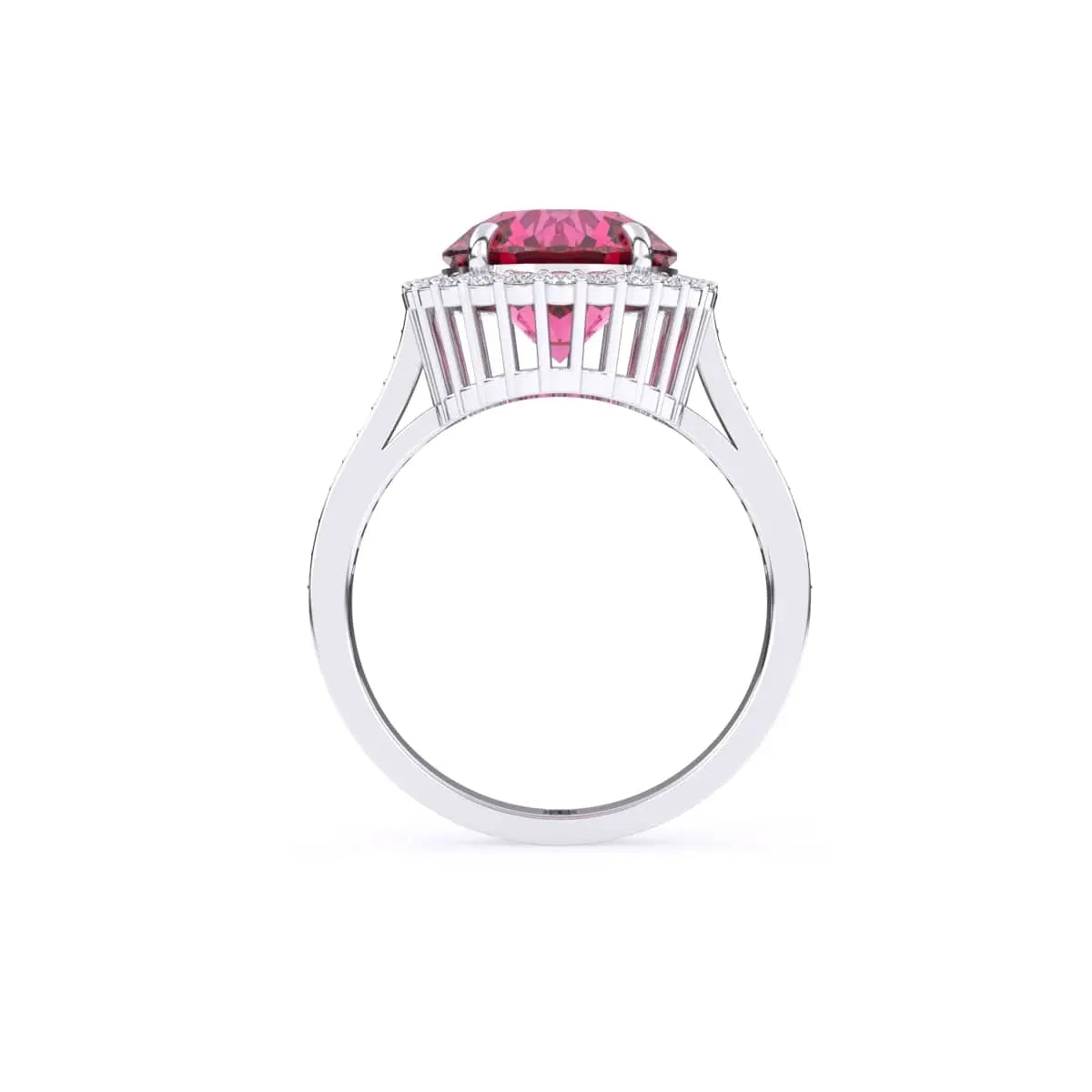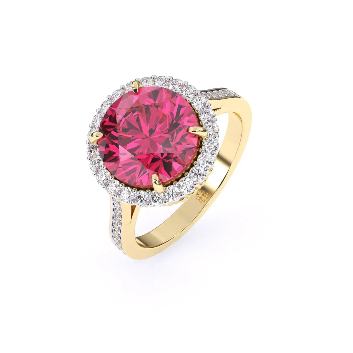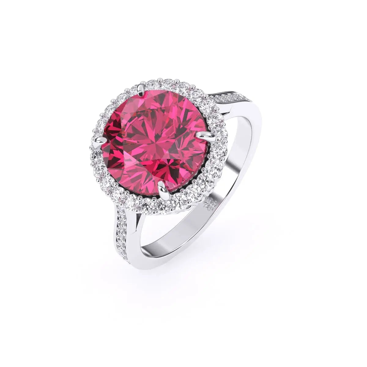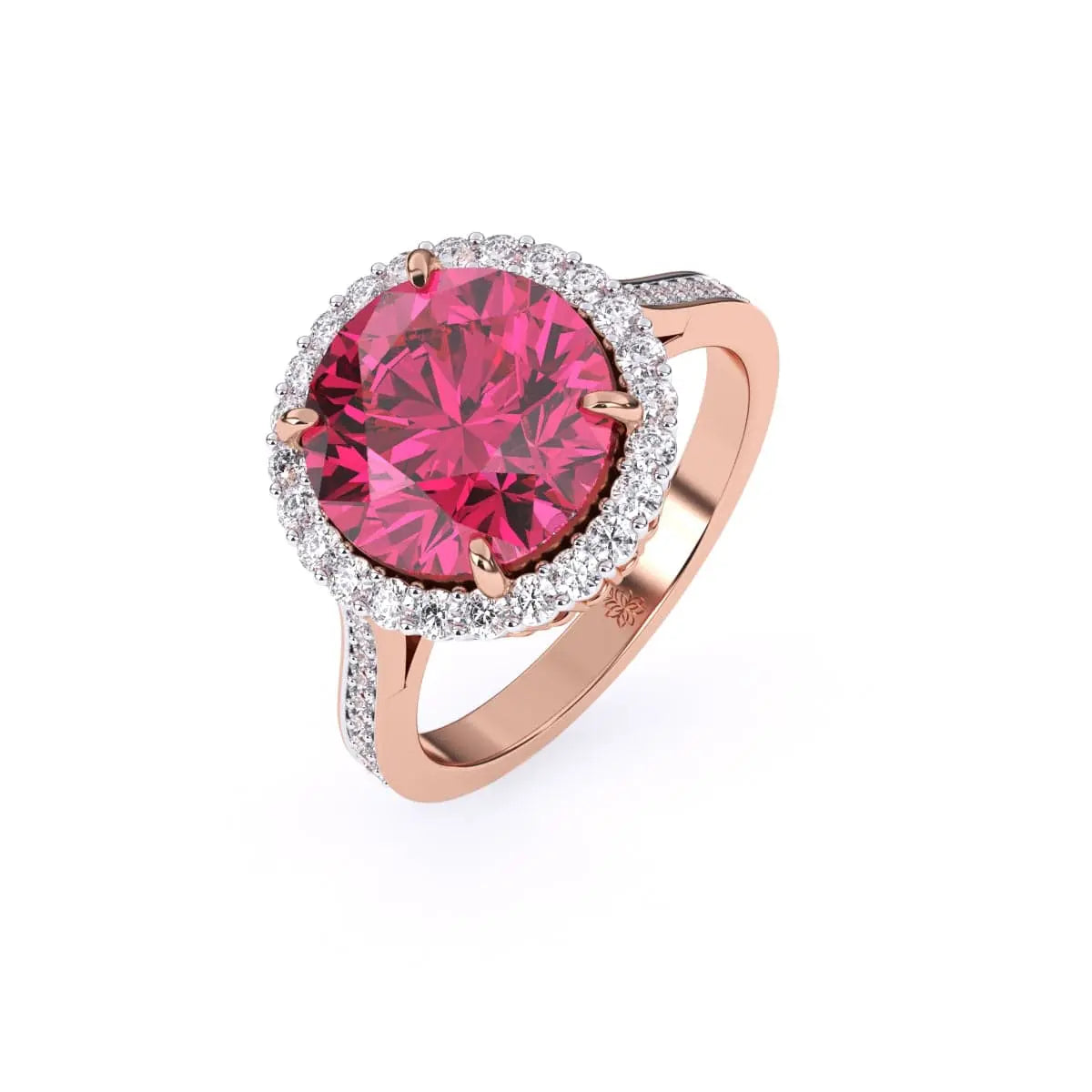 This exquisite Pink Tourmaline Ring features a stunning pink tourmaline centerpiece surrounded by brilliant round lab grown diamonds. Combining ethical craftsmanship with timeless design, it offers a sophisticated touch of color and sparkle, perfect for those who value elegance and sustainability.
