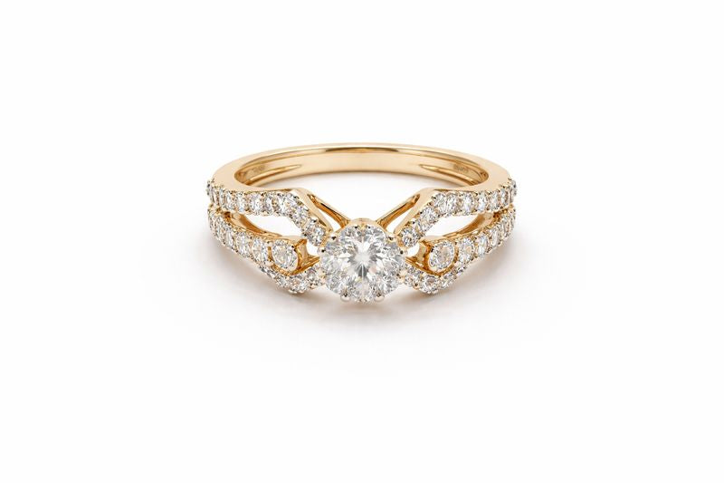 Premium Yellow Gold Diamond Ring with Round Solitaire Look