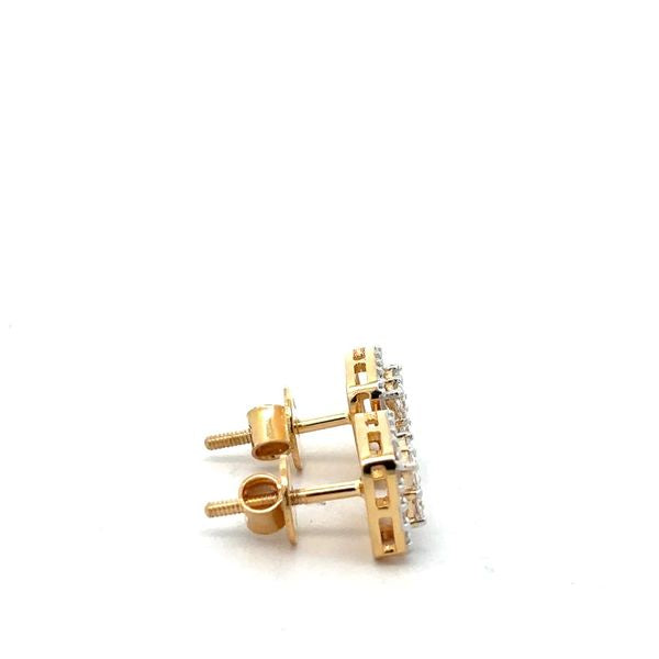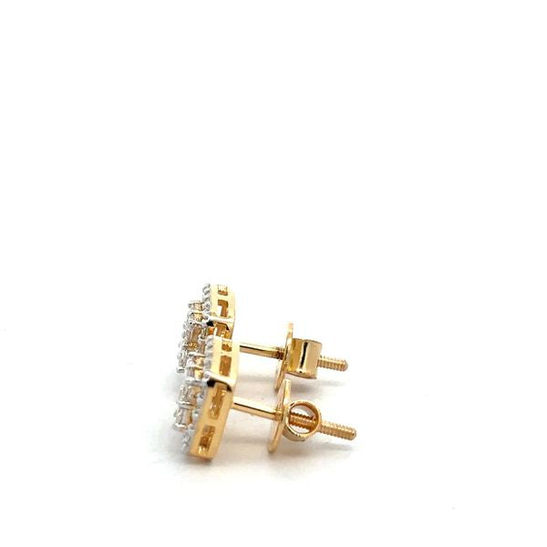 Princess Cut Diamond Illusion Set Stud Earrings with Halo in Yellow Gold