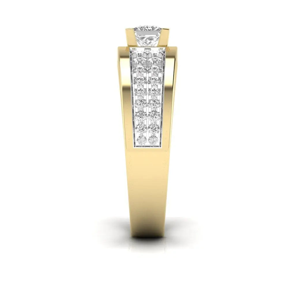 This Fancy Princess Cut Diamond Men's Ring showcases a stunning lab grown diamond, expertly crafted to deliver exceptional brilliance and clarity. Designed for the discerning gentleman, its sleek and sophisticated style combines modern elegance with ethical craftsmanship, making it a timeless addition to any collection.