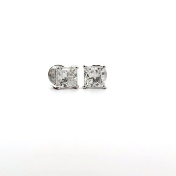 These 1 Carat Each Princess Solitaire Diamond Earrings showcase the brilliance of lab grown diamonds, offering a blend of ethical beauty and exquisite craftsmanship. Their precise princess cut enhances sparkle while providing a modern and sophisticated look, perfect for elevating any occasion with a touch of sustainable luxury.