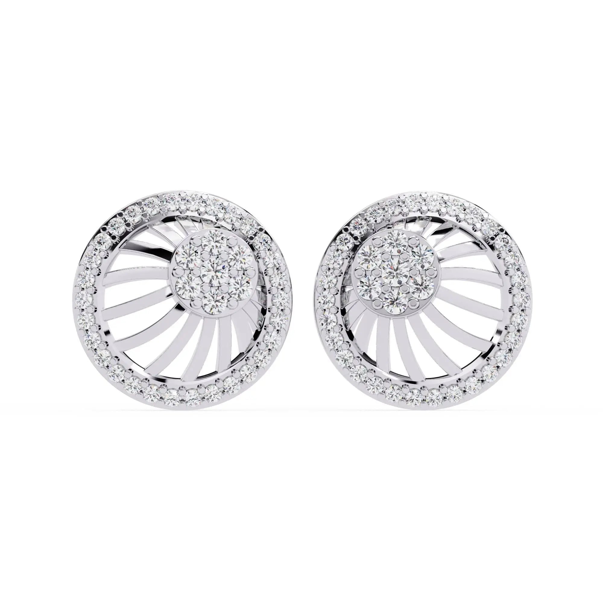 Discover the refined allure of the Radial Design Diamond Earrings, crafted with brilliant lab grown diamonds that offer exceptional clarity and sparkle. The intricately designed radial pattern enhances their luminous beauty, making them a perfect accessory for sophisticated, modern elegance with a commitment to sustainability.