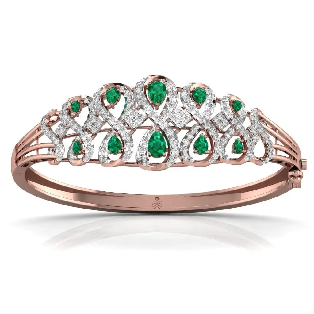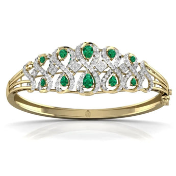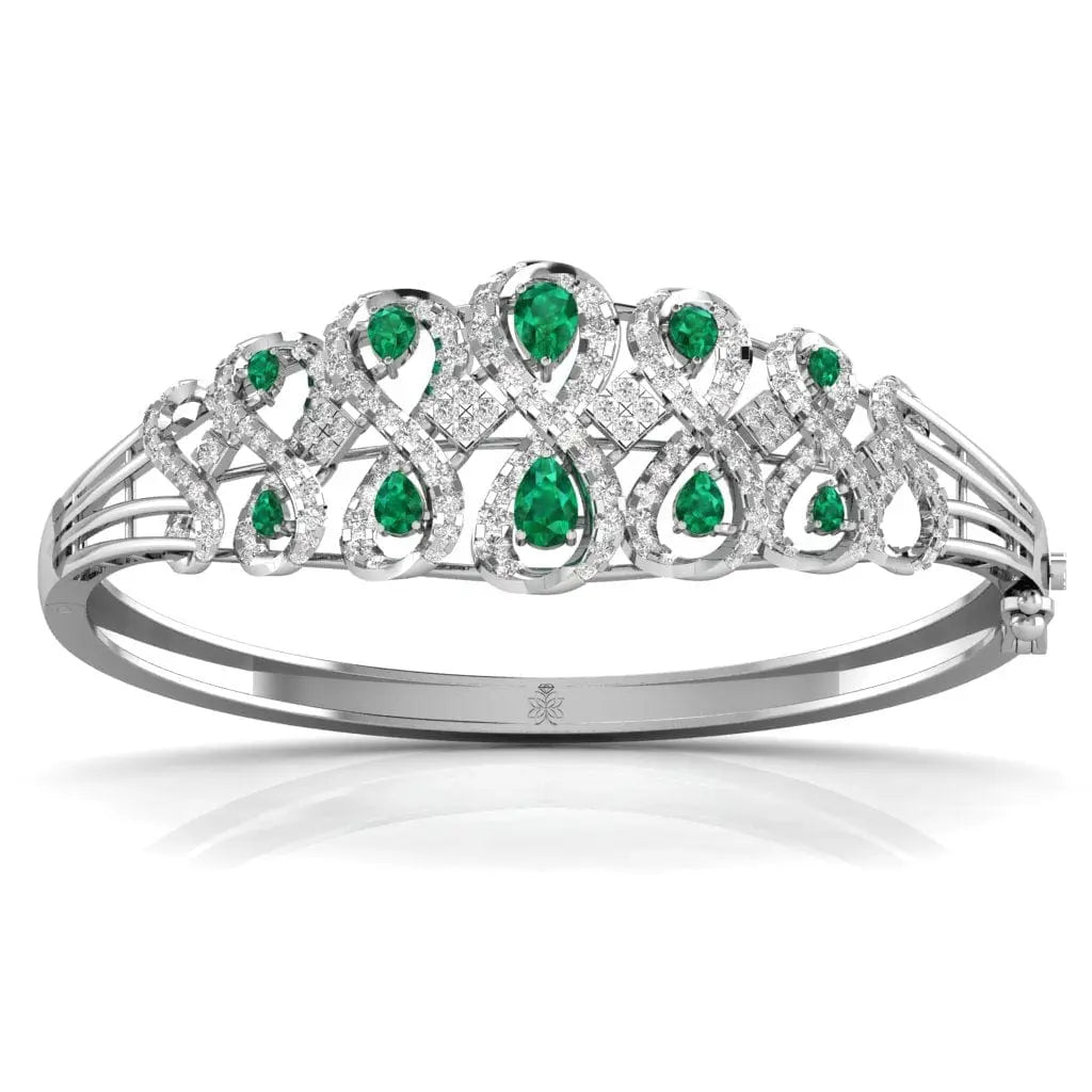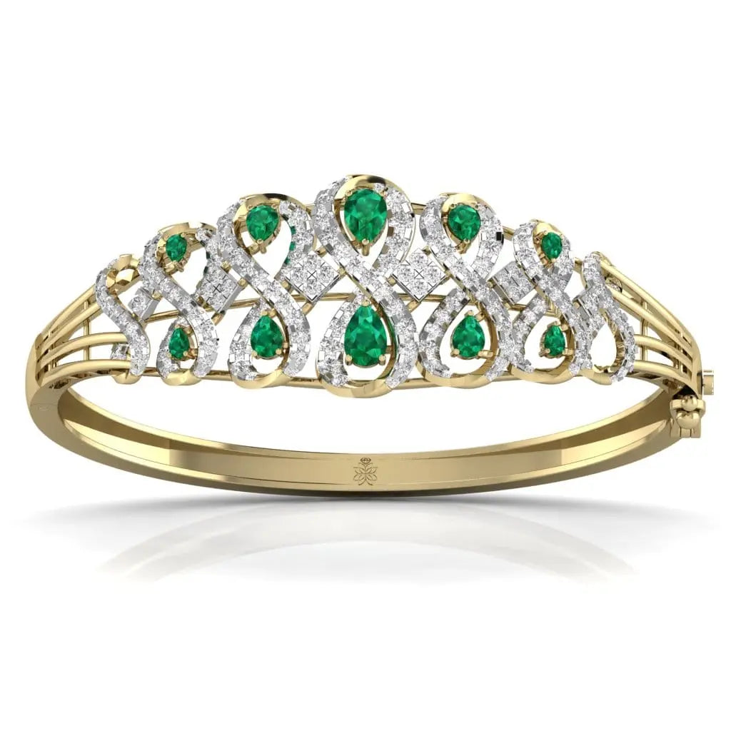 The Radiant Green Pear Diamond Bangle features a stunning lab grown green pear-shaped diamond, blending sustainable luxury with refined elegance. This sophisticated bangle offers a unique sparkle that enhances any outfit, making it an exquisite choice for those who value ethical beauty and timeless style.